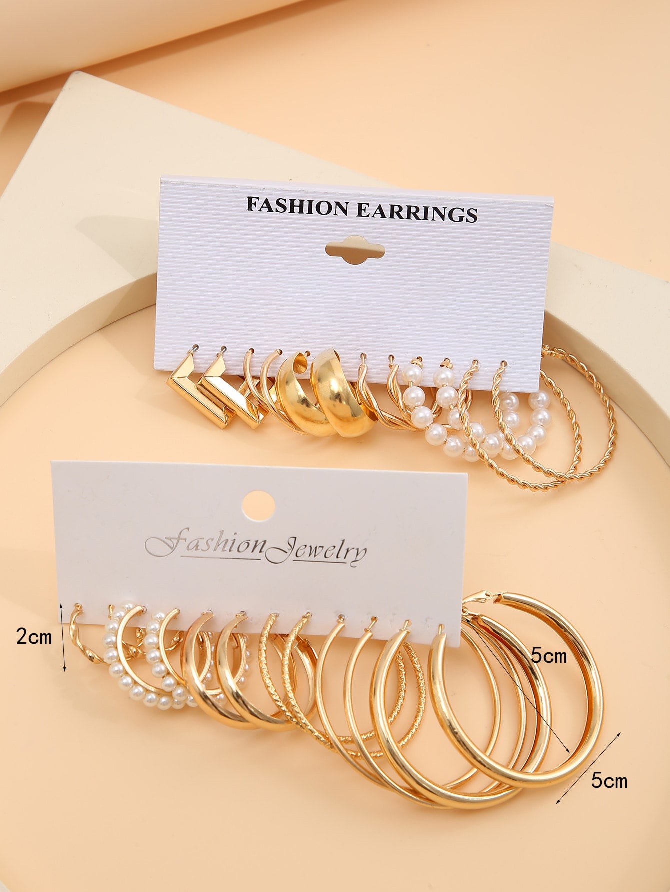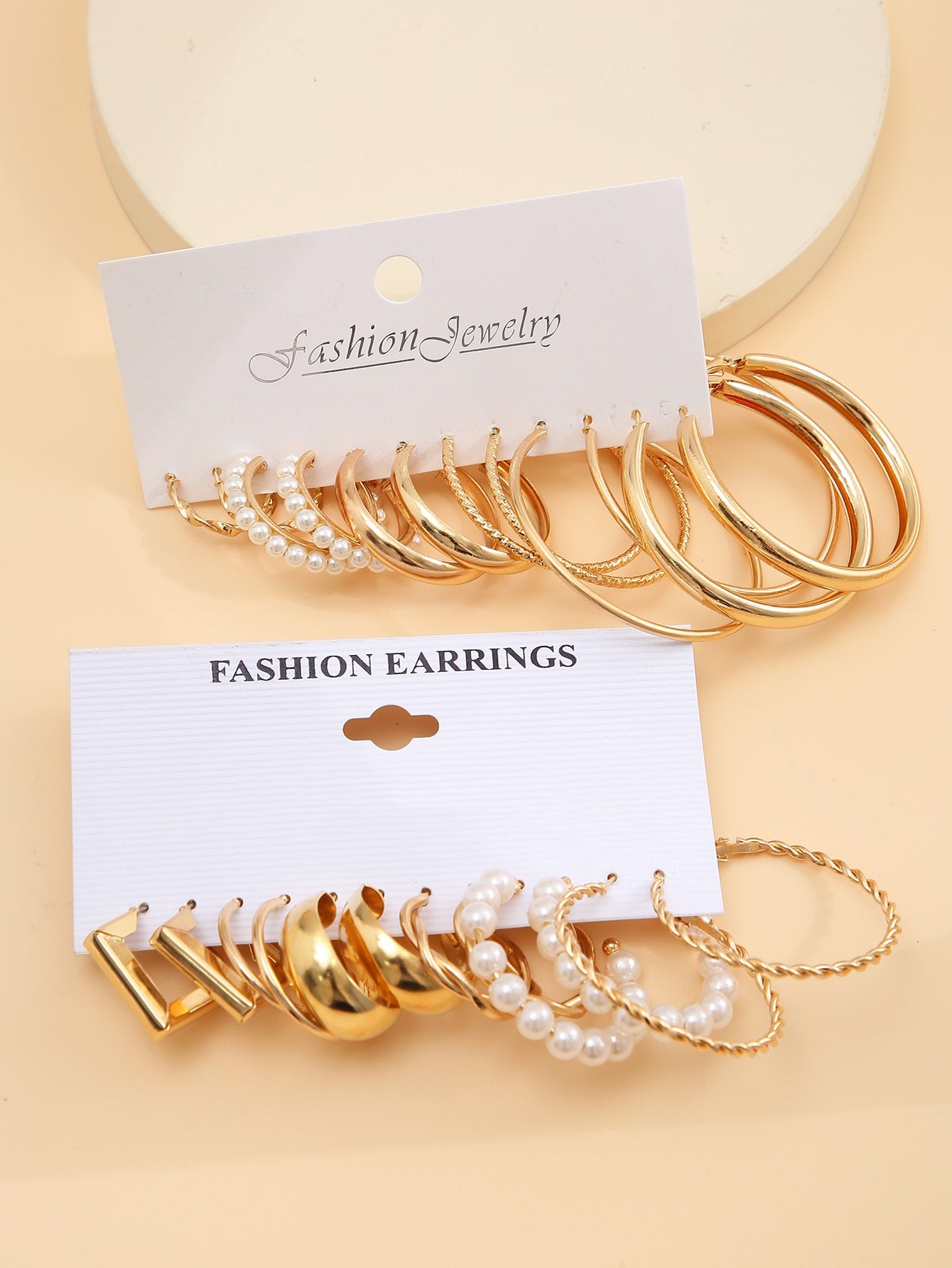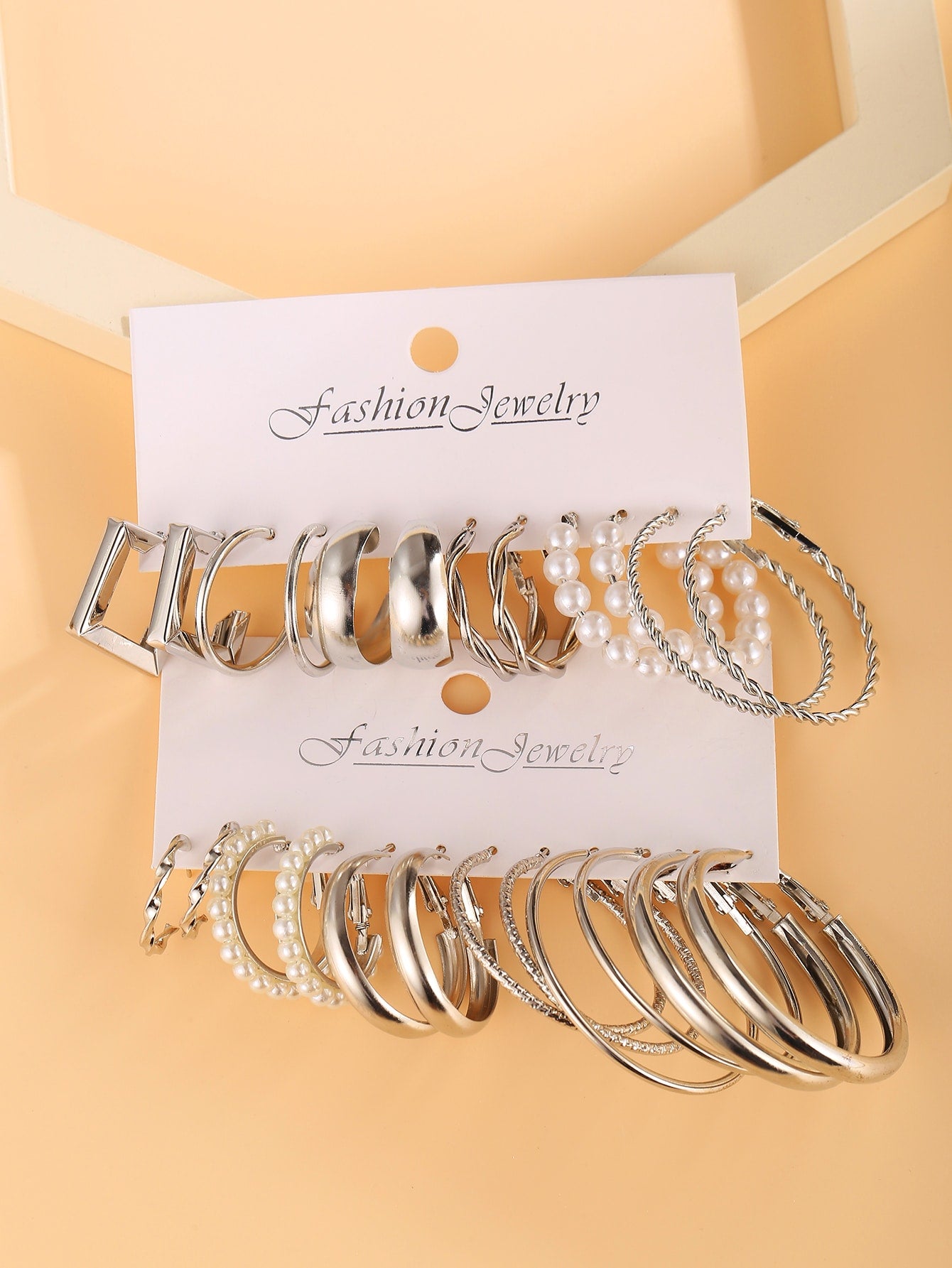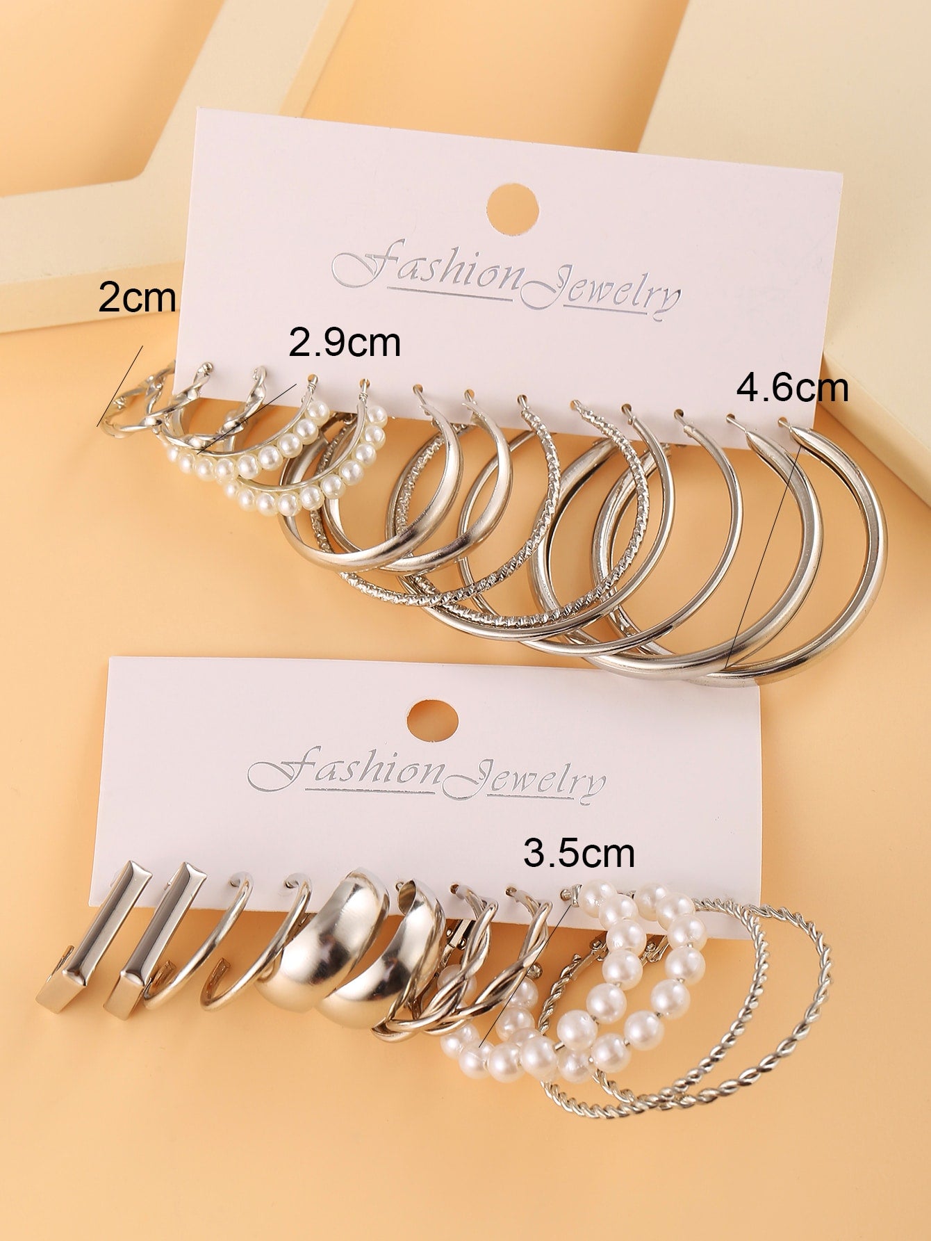 12 Paar Kreolen mit Kunstperle Dekor, Twist Design