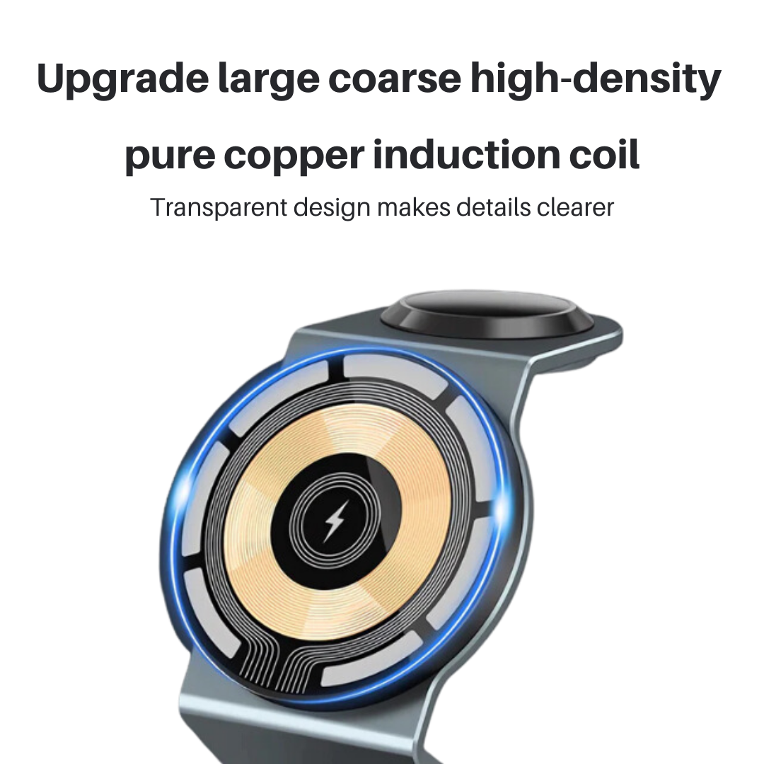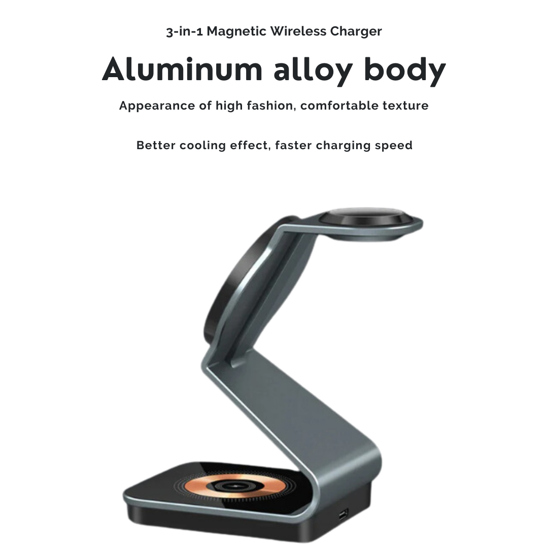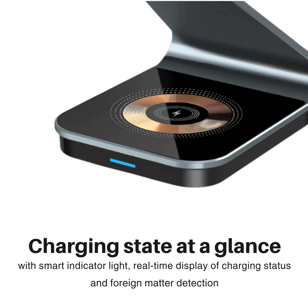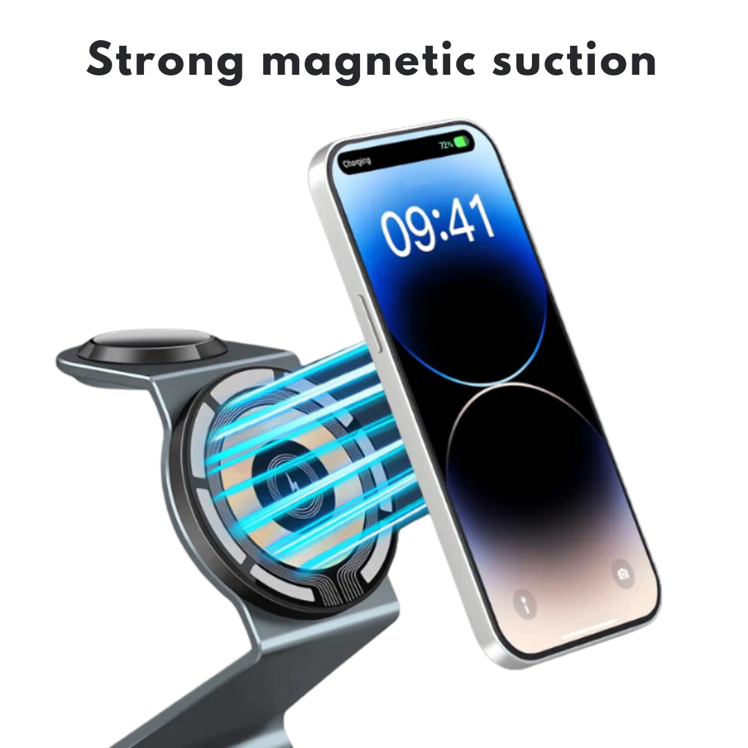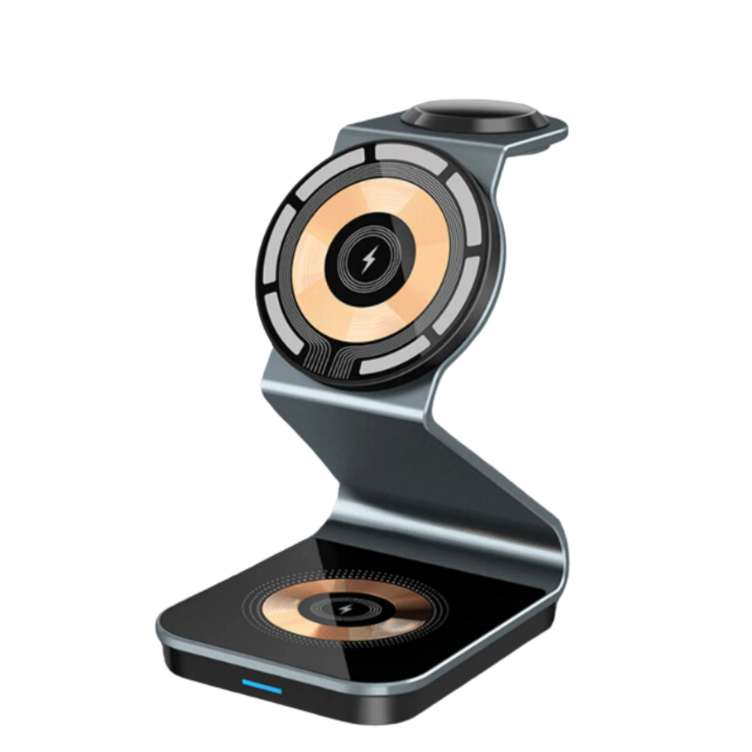 Effizienz und Eleganz mit dem PowerPlex™. Dieses hochmoderne Ladegerät macht Schluss mit Kabelsalat und der frustrierenden Suche nach separaten Ladegeräten für Ihre Geräte. Es bietet Platz für Ihr Telefon, Ihre Smartwatch und Ihre AirPods und ermöglicht so einen schnellen und effektiven Ladevorgang. Verwandeln Sie Ihre Ladestation in einen stilvollen und funktionalen Ort.
