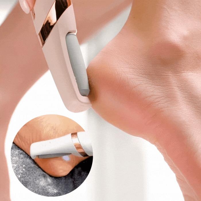 Der Qualites™ Fuß-Weichmacher hilft Ihnen, Ihre dicken und trockenen Schwielen zu Hause zu lösen und Geld zu sparen. Es handelt sich um eine bewährte und sichere Technologie zur Entfernung harter Haut an den Fersen oder Füßen. Fügen Sie diese tragbare und kompakte Schönheitsbehandlung hinzu, um eine gesunde und weiche Fußhaut zu erhalten, die wie im Salon behandelt wird.
