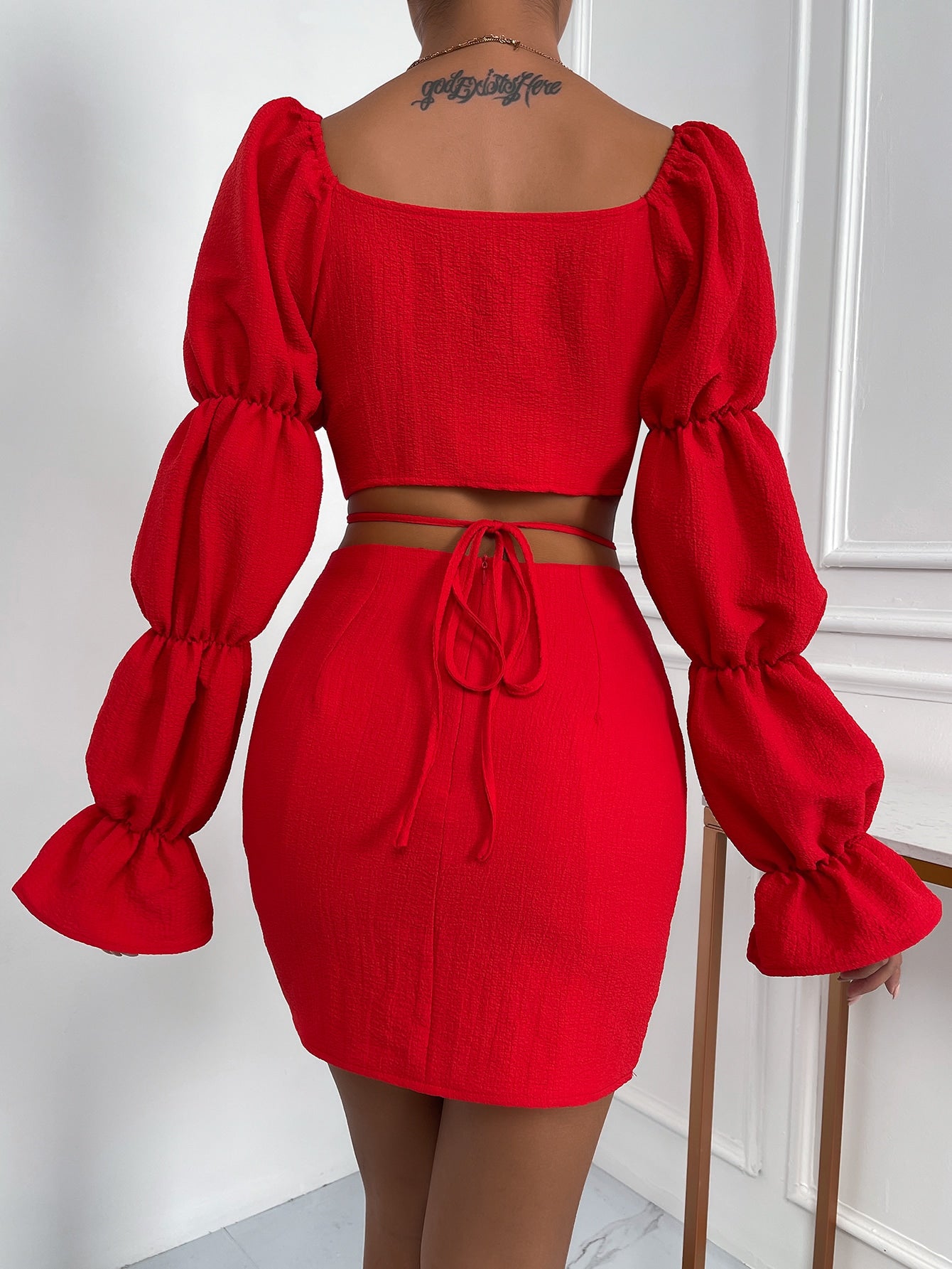 Ausschnitt, gesammelten Ärmeln, Crop Top & Figurbetonter Rock