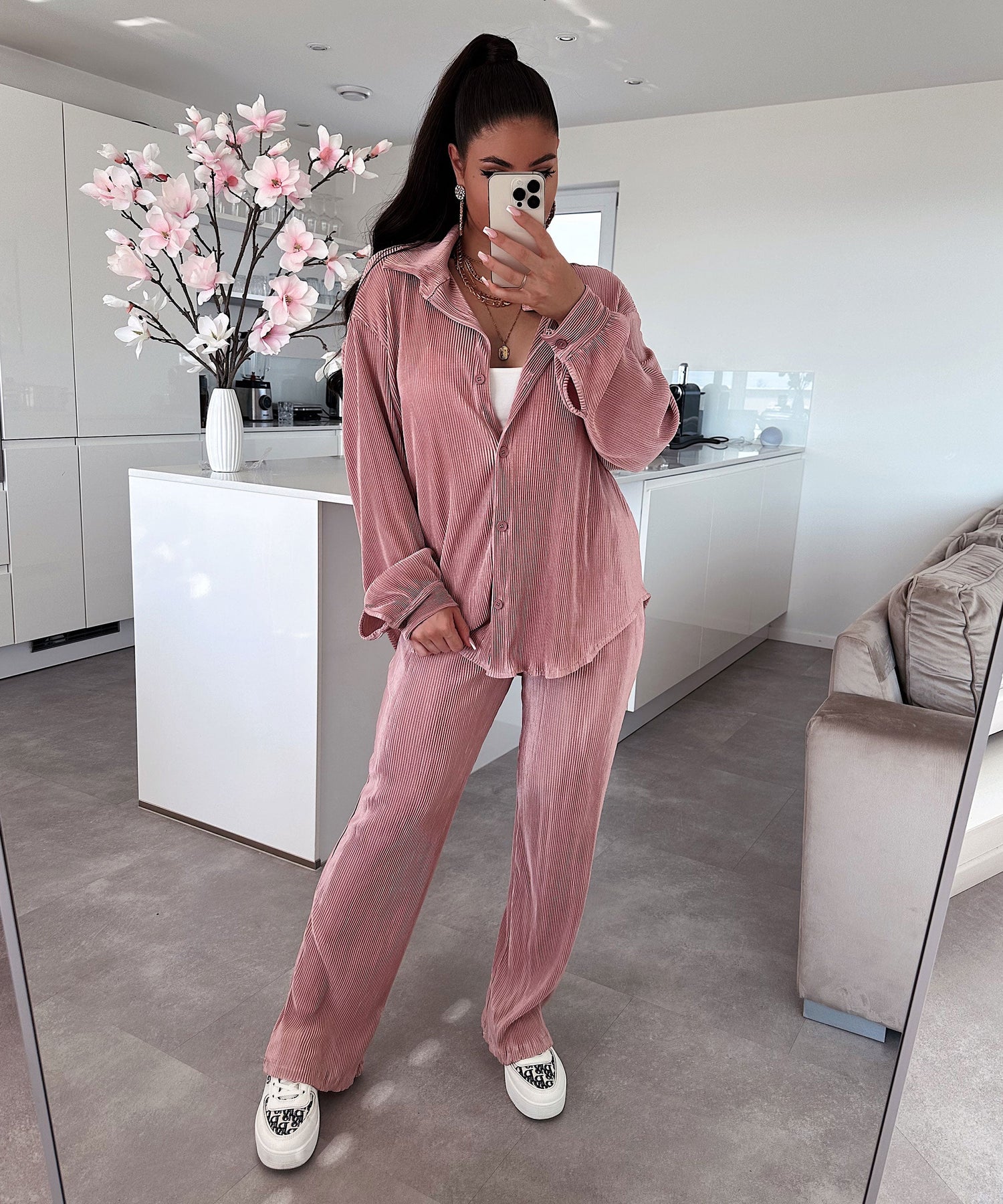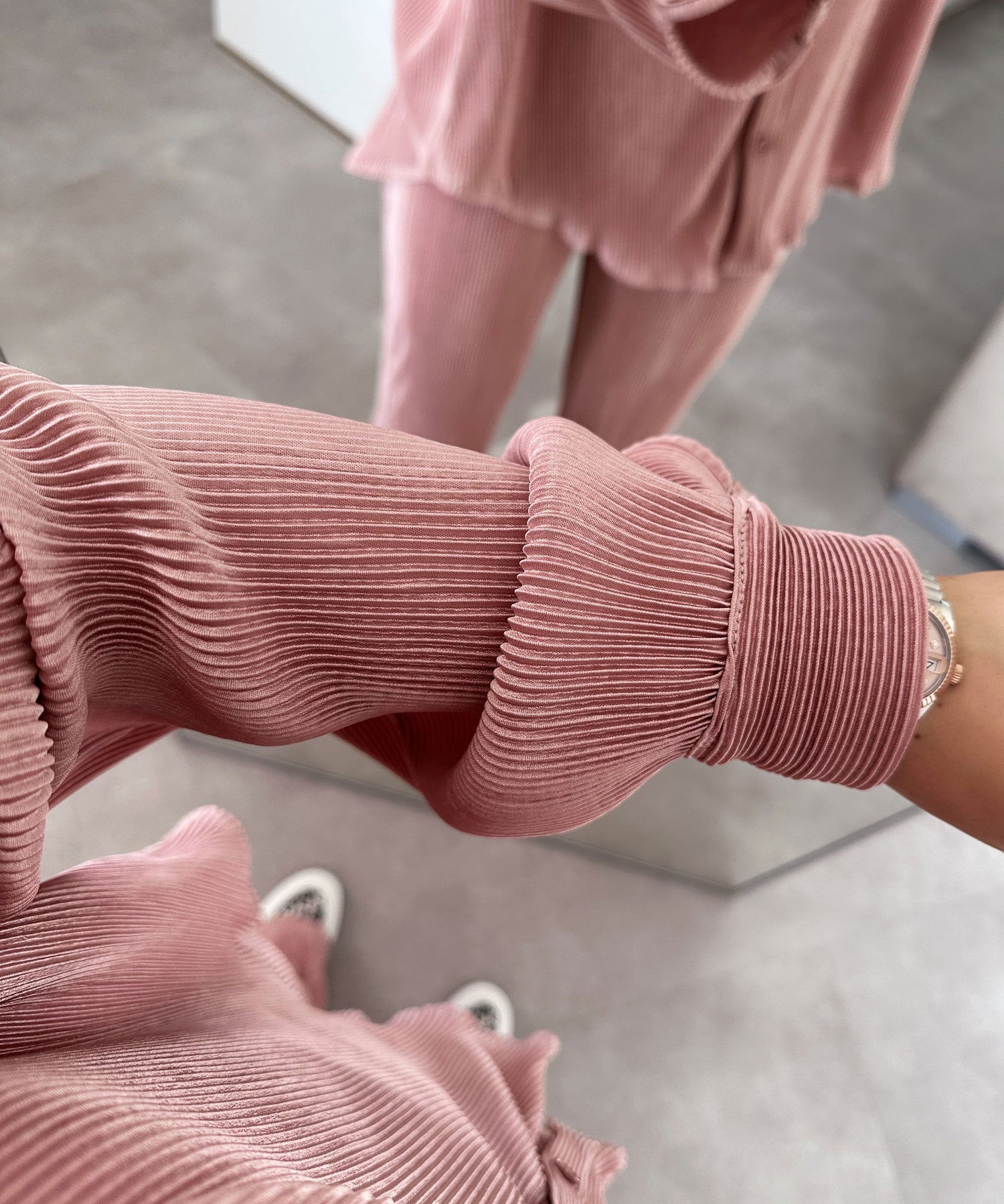 • Super bequemes Set mit einem dehnbaren Gummibund. Das Set ist in einer Einheitsgröße und passt den Größen XS-M. Der Stoff ist sehr leicht und angenehm auf der Haut. Model ist 1.65m.