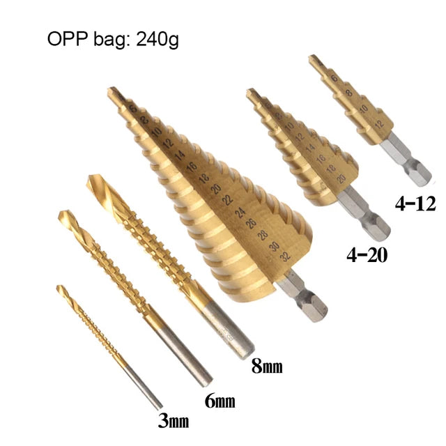 • Größe: Stufenbohrer: 4-12, 4-20, 4-32