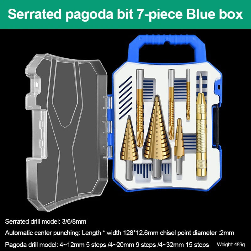 Mit neuester Technologie entwickelt, bieten diese Bohrer eine reibungslose Schneidleistung und verbessern die Perfektion Ihrer Industriegebäude. Das Set umfasst 3 Stufenbohrer und 3 gezahnte Bohrer, um verschiedene Anforderungen zu erfüllen und die Arbeitsleistung erheblich zu steigern. Die innovative Kombination aus Pagodenbohrer und gezahntem Bohrer erleichtert die Entfernung von Bohrabfällen, was zu schnellerem, präziserem und effizienterem Schneiden führt.