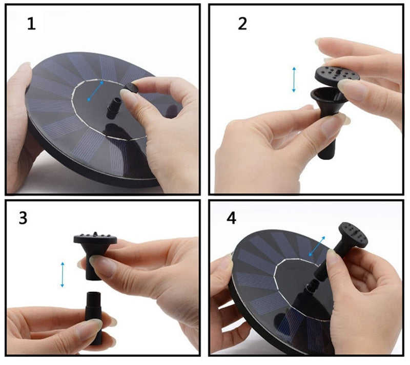 Der Springbrunnen wird mit Solarenergie betrieben und benötigt keinen Strom. Mit den 6 verschiedenen Fontänenköpfen kannst du das Wasser genießen, das wie Regen auf dich fällt oder mit großer Kraft in die Luft spritzt - genau so, wie du willst und wie du dich fühlst!