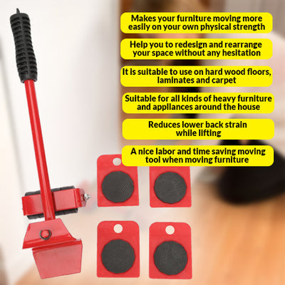 Er ist das ultimative Hilfsmittel für Mütter. Bewegen Sie Möbel ganz einfach mit Hilfe des Hebewerkzeugs und der Antriebsräder.