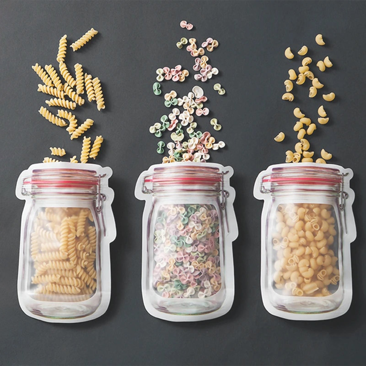 Suchen Sie nach einer einfachen und bequemen Methode, um Lebensmittel aufzubewahren und frisch zu halten? Mit diesen Topf-förmigen Beuteln können Sie Snacks, Nüsse, Gewürze und andere Lebensmittel sicher aufbewahren und Ihre Küche organisiert halten.