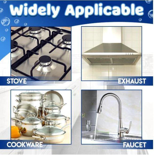 Blasenreiniger ohne Abspülen entfernt mit der Schaumexpansionstechnologie in 2 Schritten hartnäckiges Fett und Flecken von allen Küchenartikeln. Einfach aufsprühen und abspülen, damit die Gegenstände frisch und wie neu aussehen. Außerdem poliert es Ihre Gegenstände und schützt sie bis zu 1 Monat lang vor Verfärbung und Rissbildung durch Hitzeeinwirkung. Zeit, die sauberste Küche mühelos zu haben!