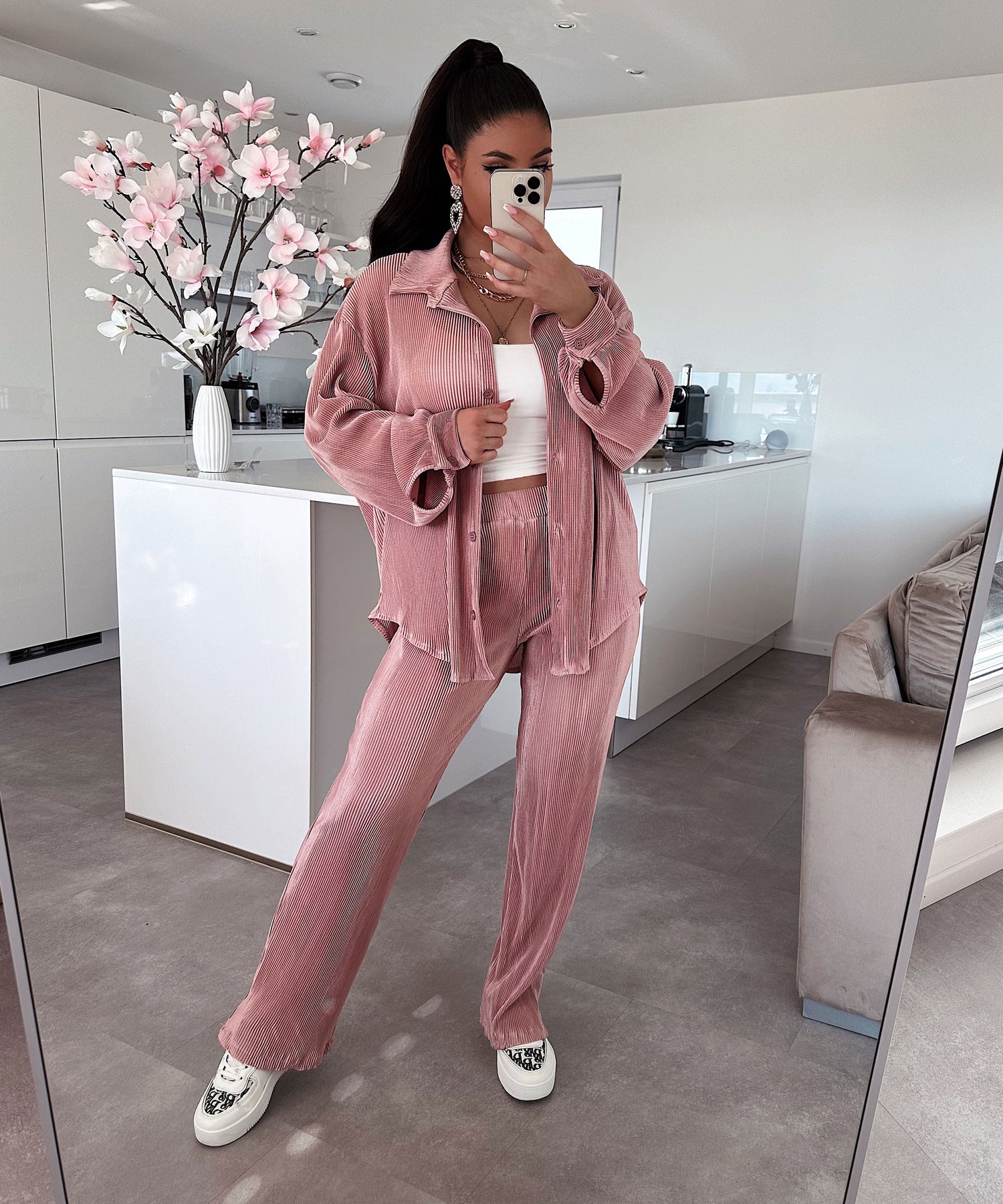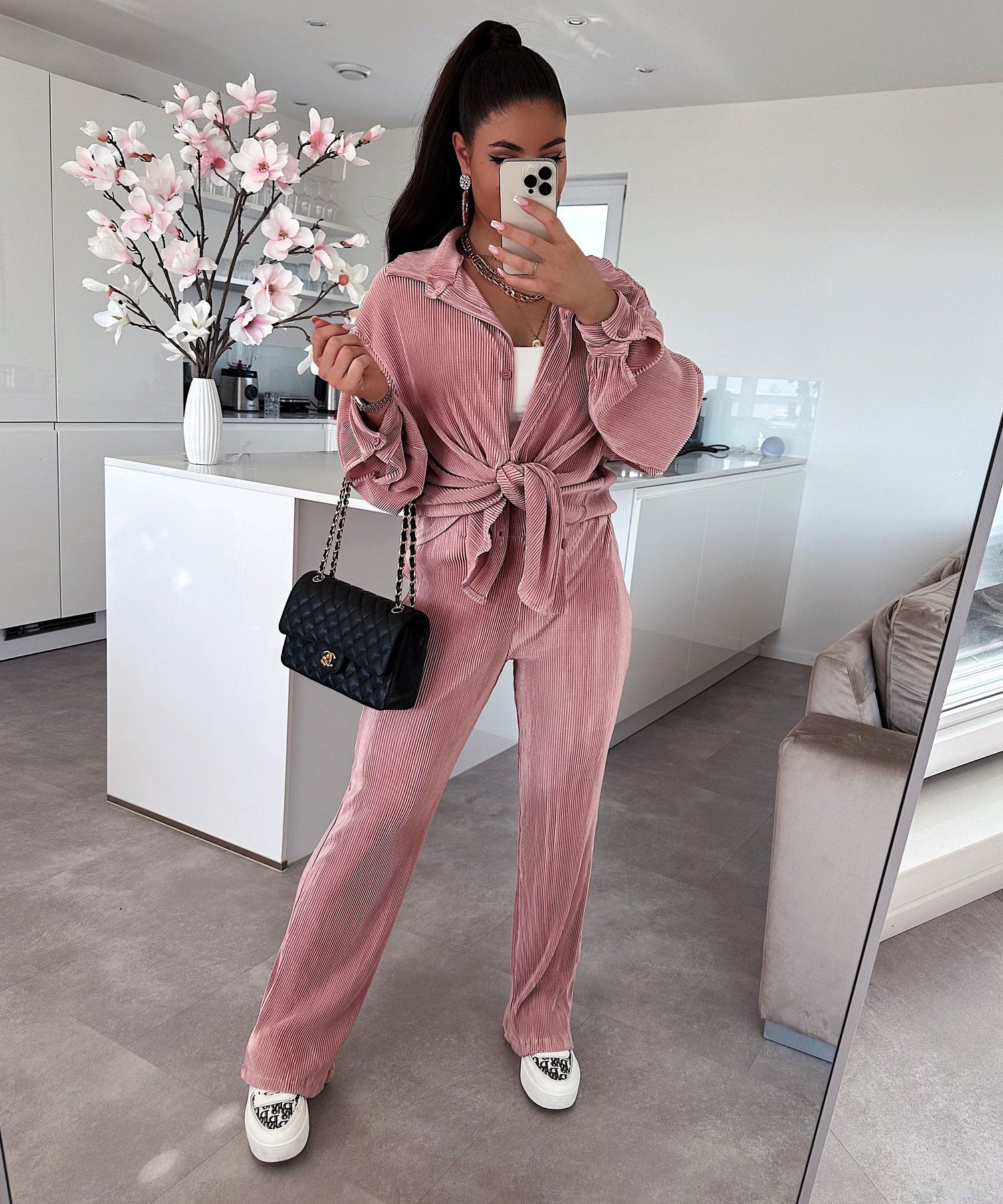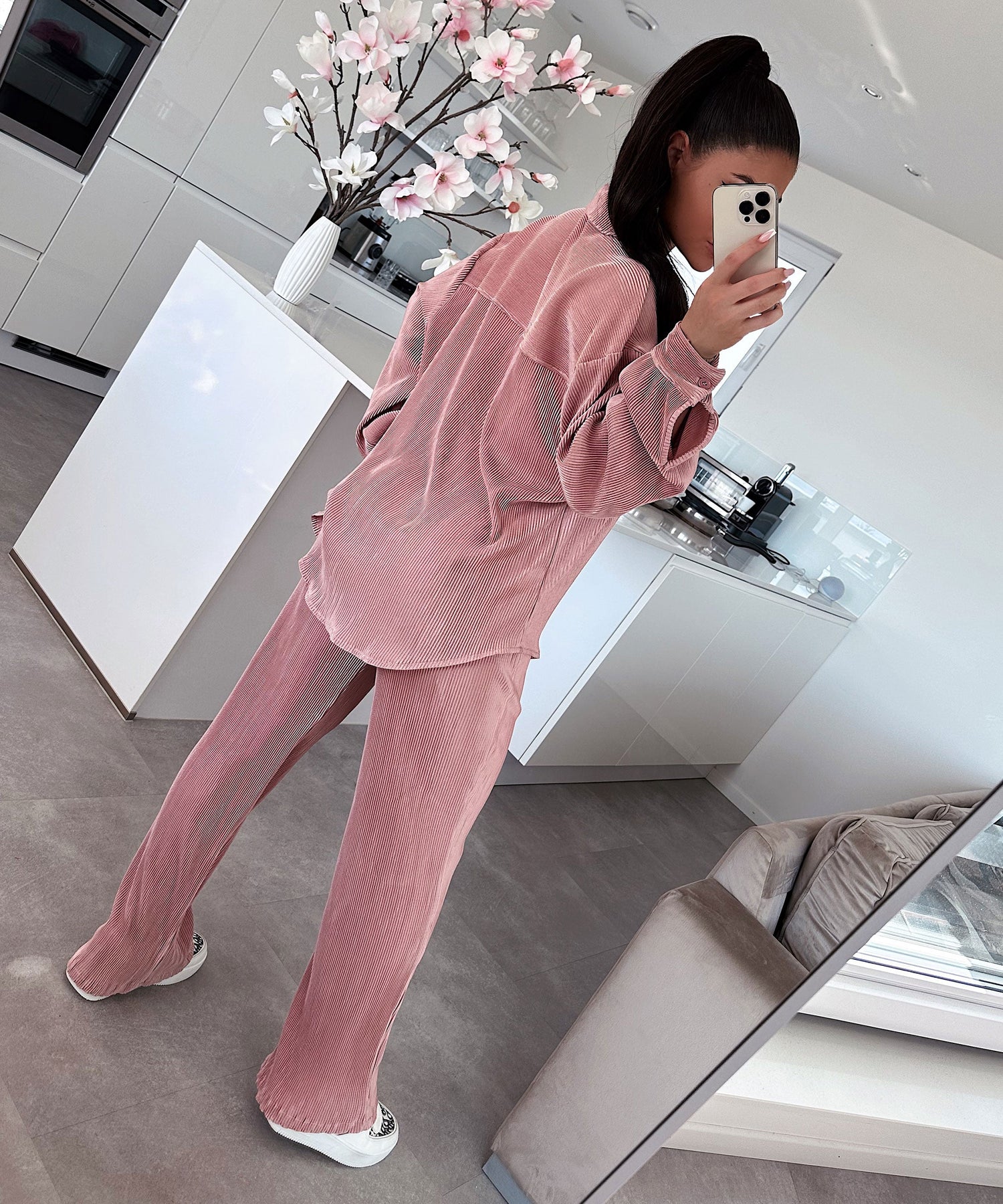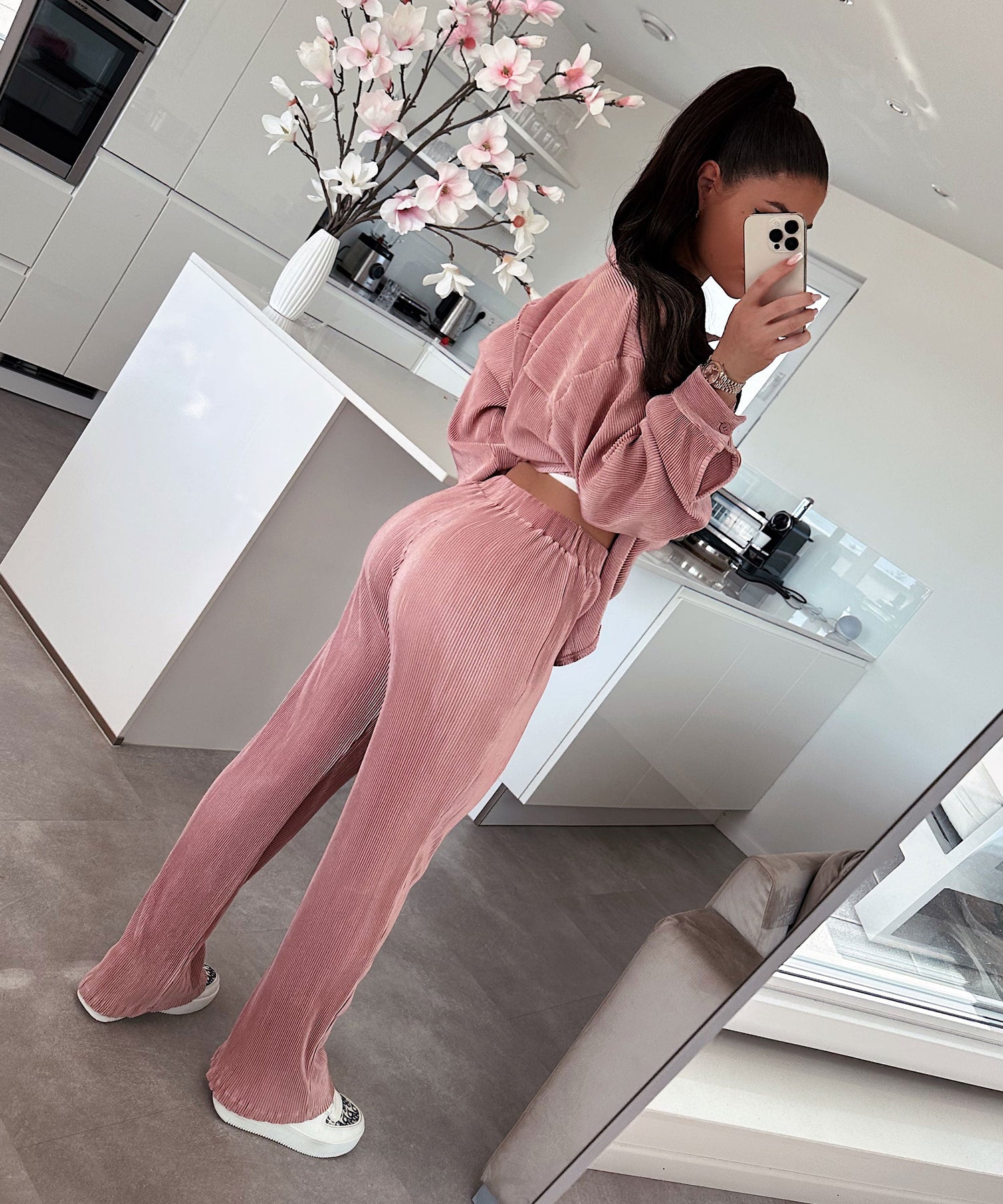 • Super bequemes Set mit einem dehnbaren Gummibund. Das Set ist in einer Einheitsgröße und passt den Größen XS-M. Der Stoff ist sehr leicht und angenehm auf der Haut. Model ist 1.65m.