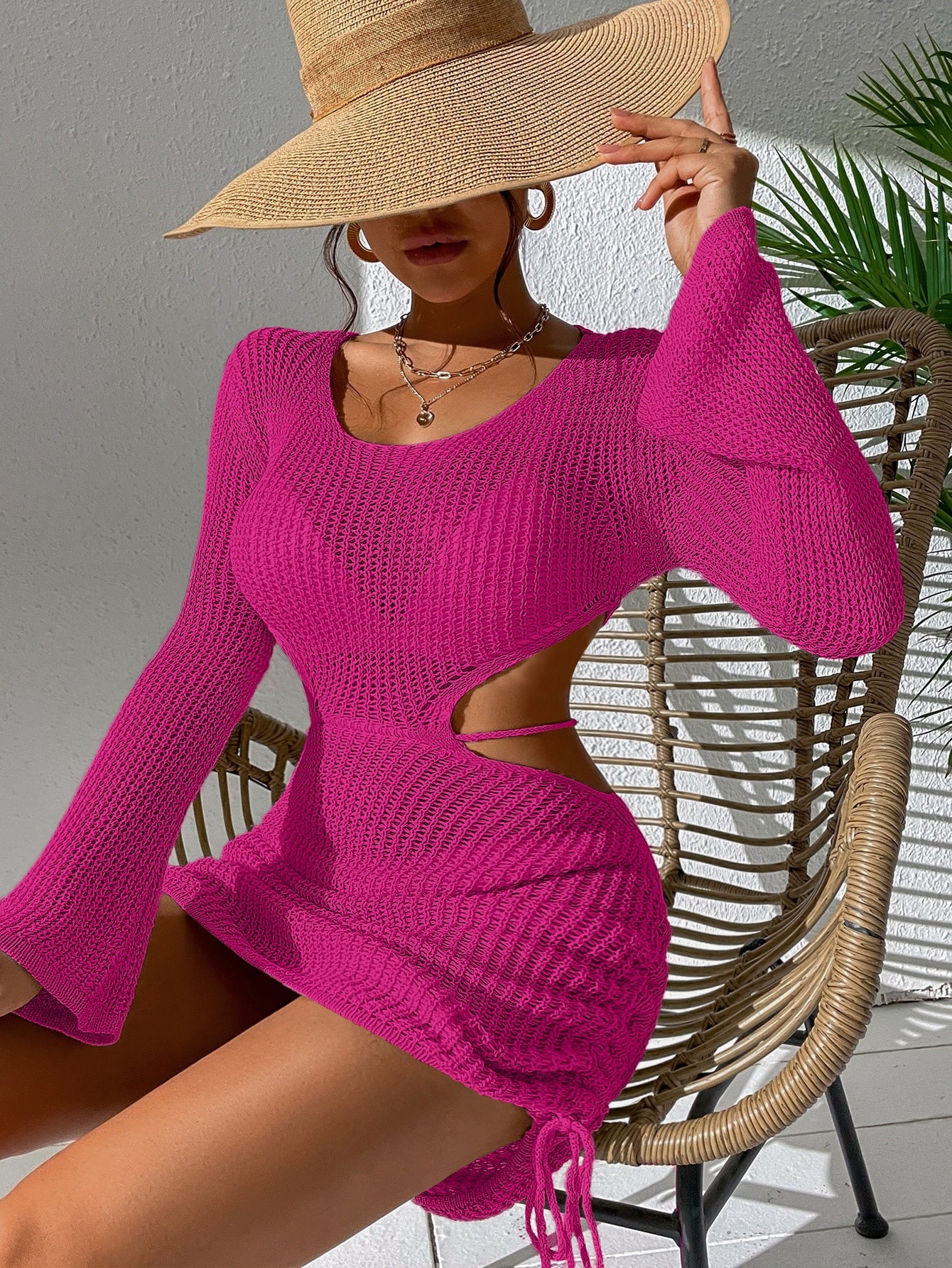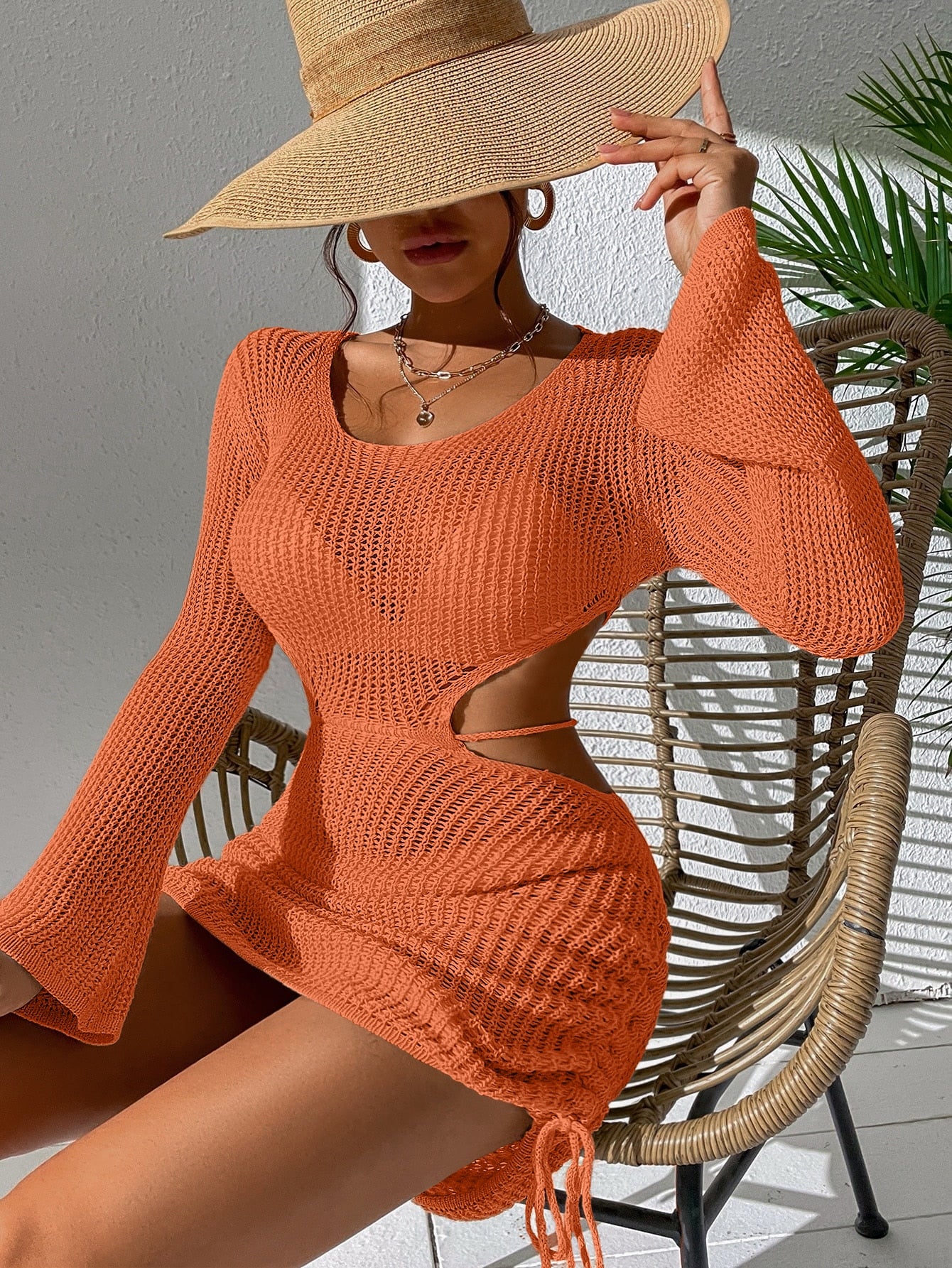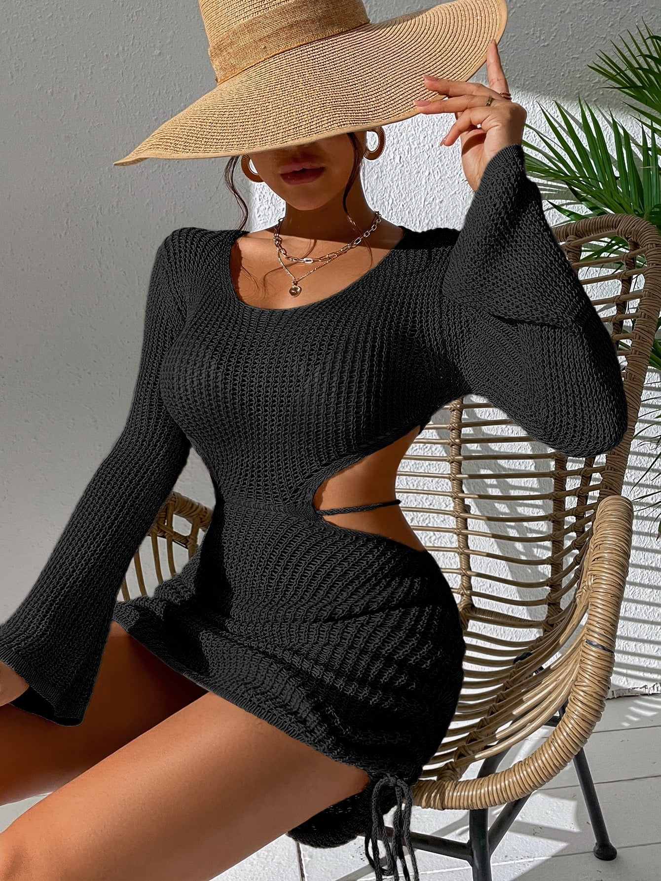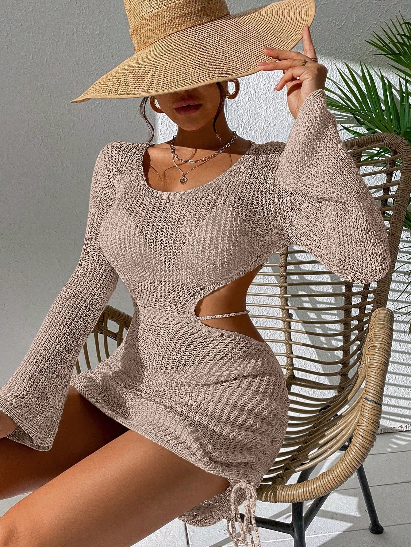 Cover-Up Kleid mit Ausschnitt, seitlichem Schnürzug, ohne Bikini