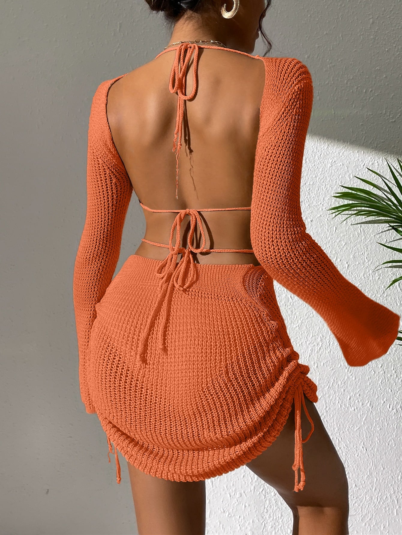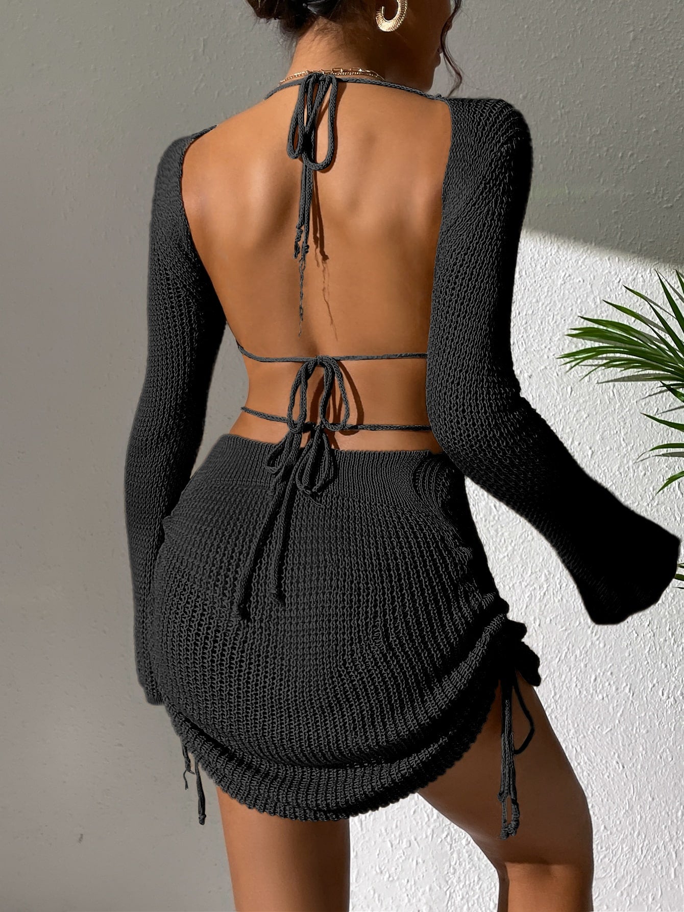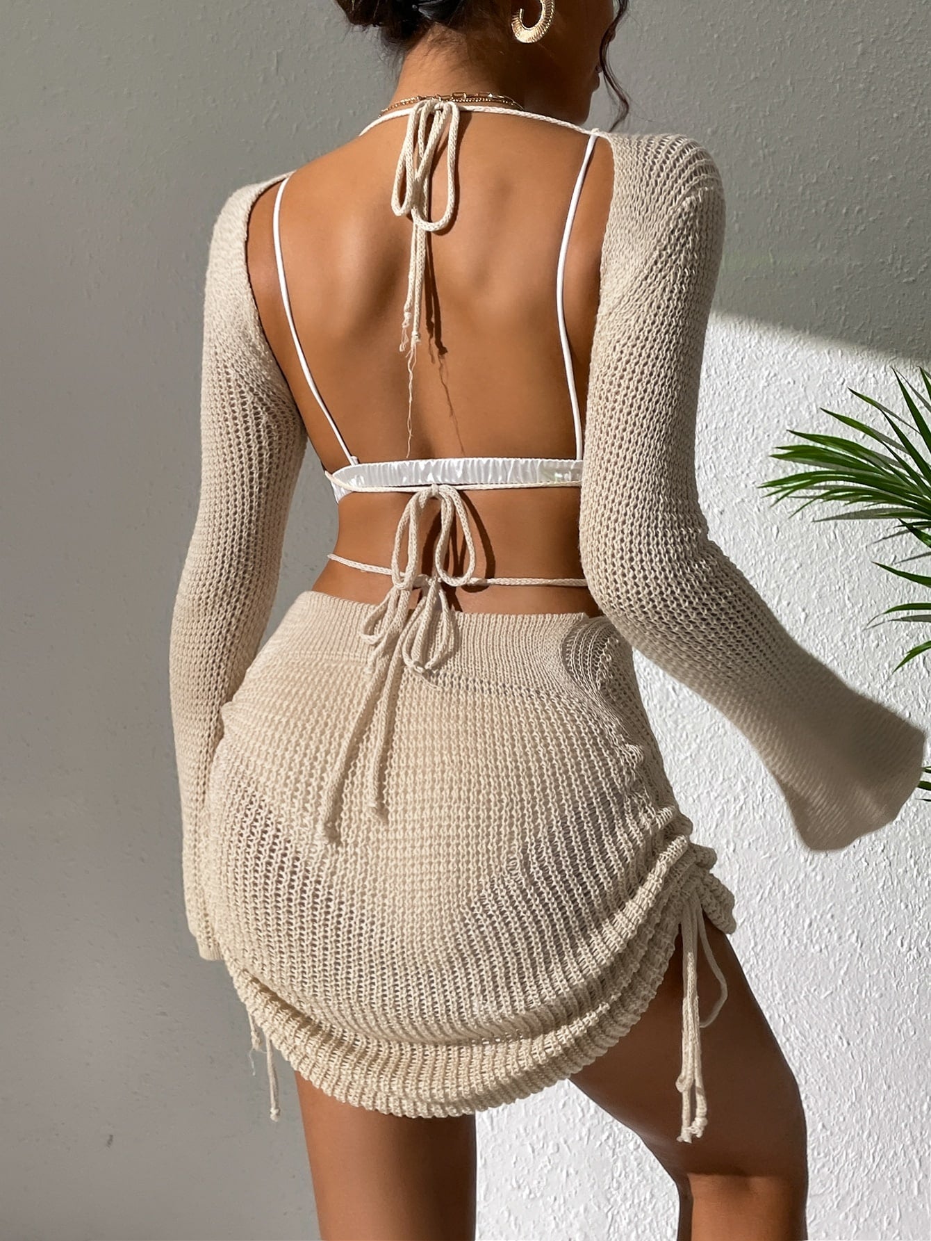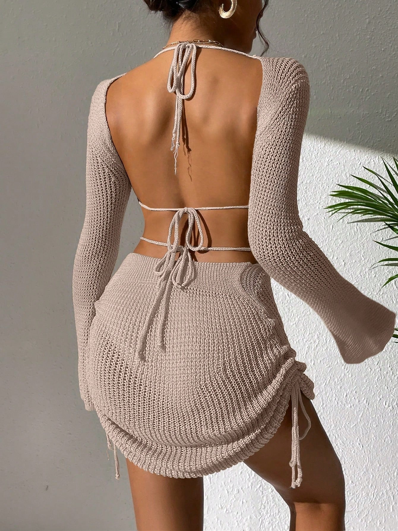 Cover-Up Kleid mit Ausschnitt, seitlichem Schnürzug, ohne Bikini