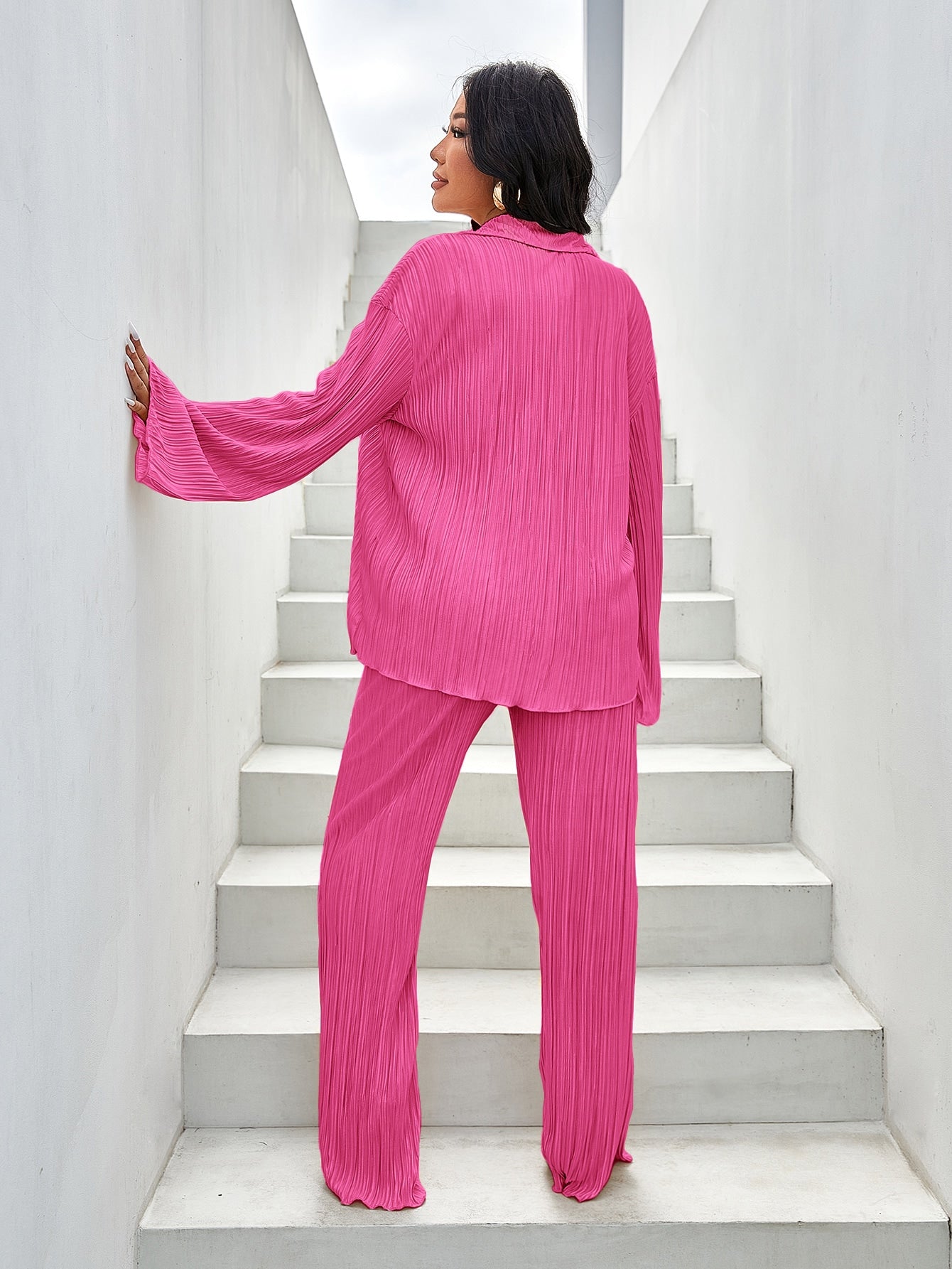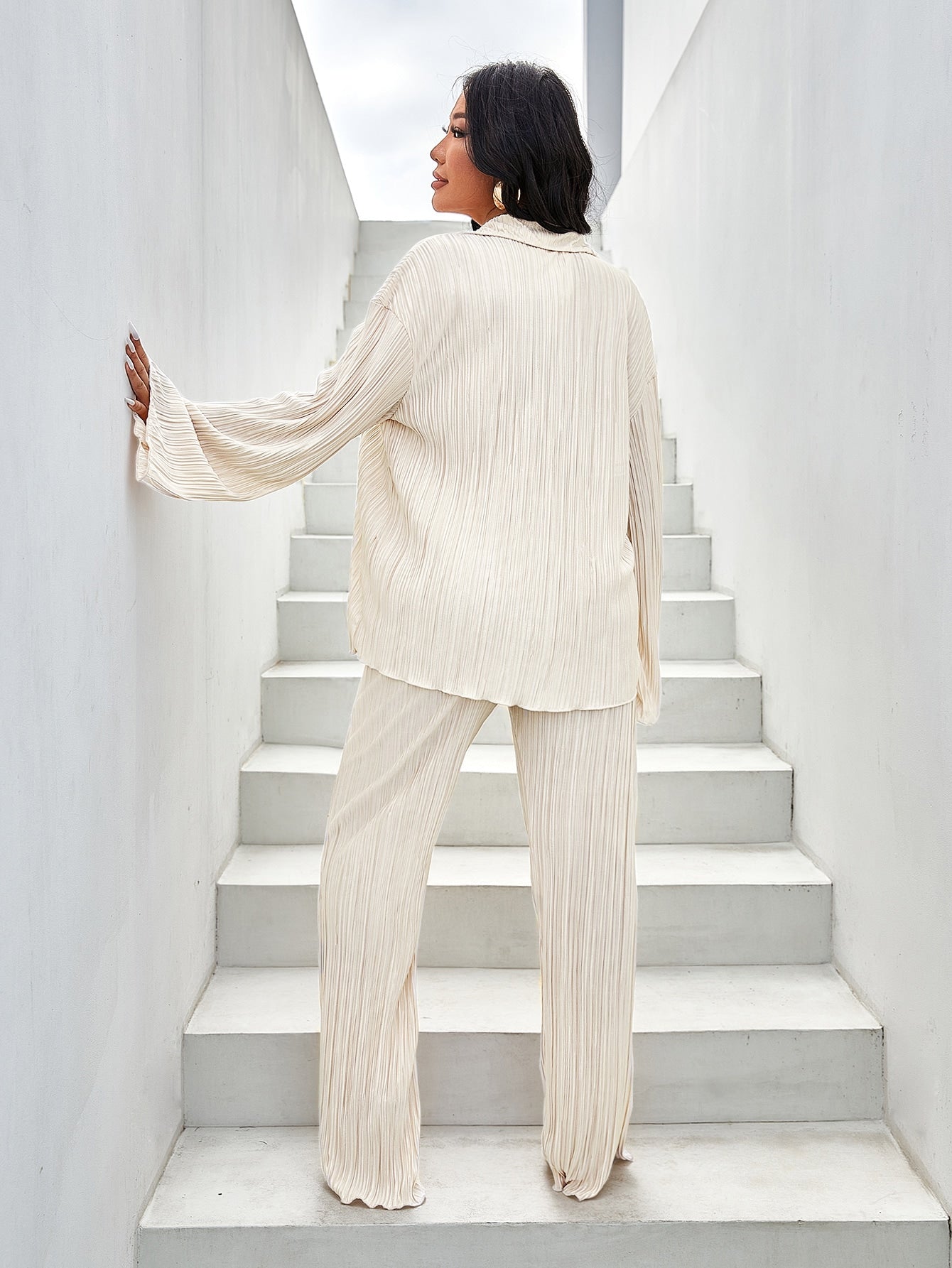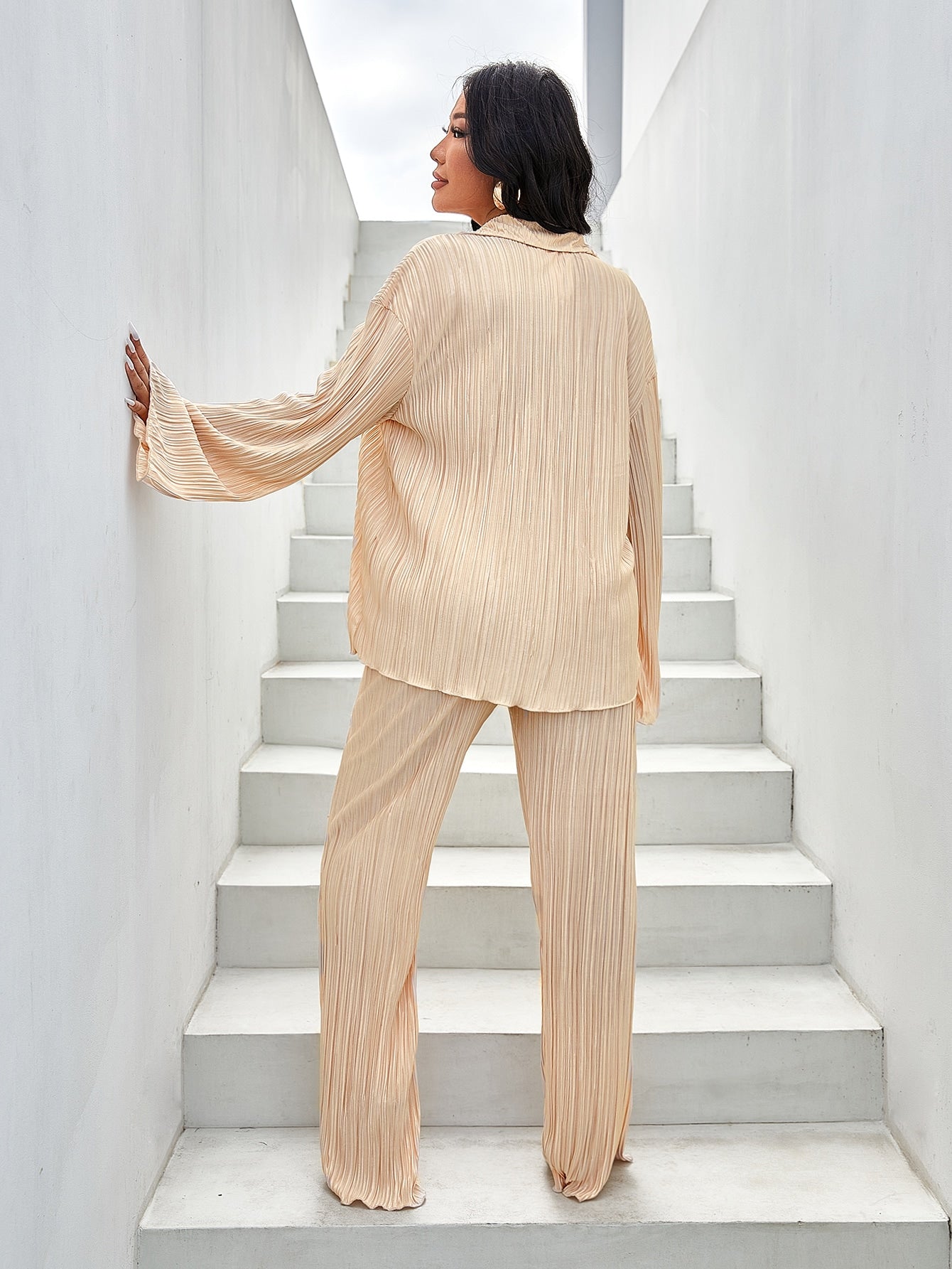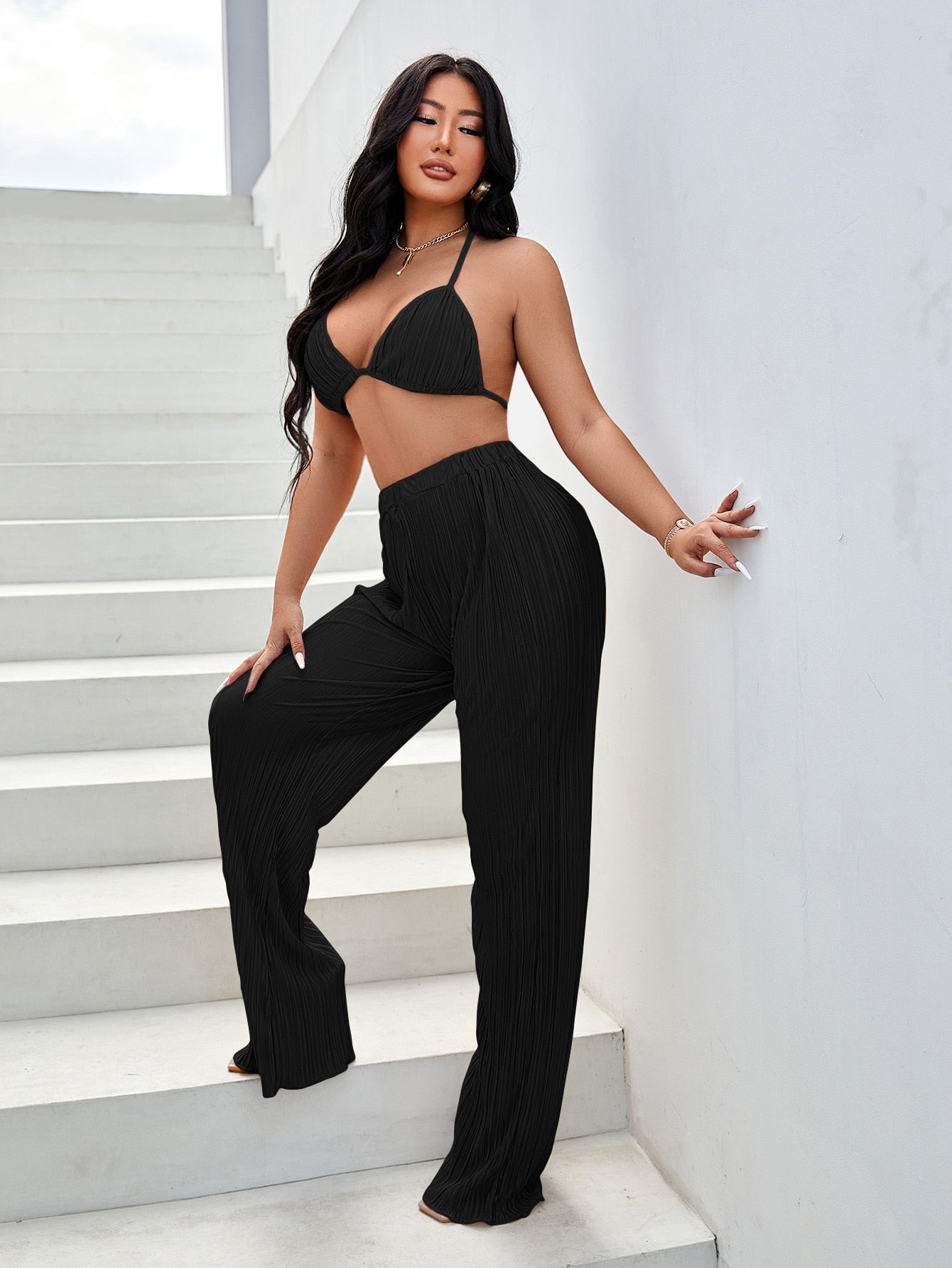 Knopf vorne, Wellensaum, Shirt & Schlaghose & BH