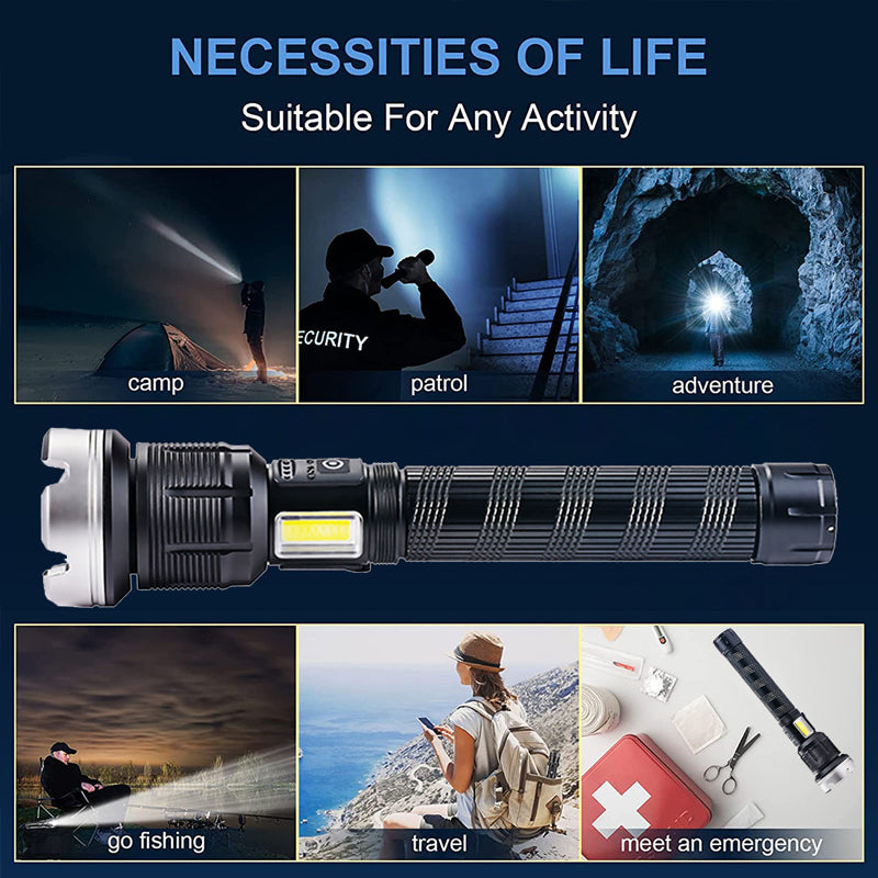 Spüren Sie das Vertrauen, ein Kraftpaket in Ihren Händen zu halten. Die Vielseitigkeit dieser Taschenlampe geht über die Beleuchtung hinaus; sie ist ein Rettungsanker in Notfällen. Laden Sie Ihre Geräte unterwegs auf und bleiben Sie in Verbindung, egal wo Sie sind. Sie ist nicht nur eine Taschenlampe, sondern auch Ihre Notstromquelle.