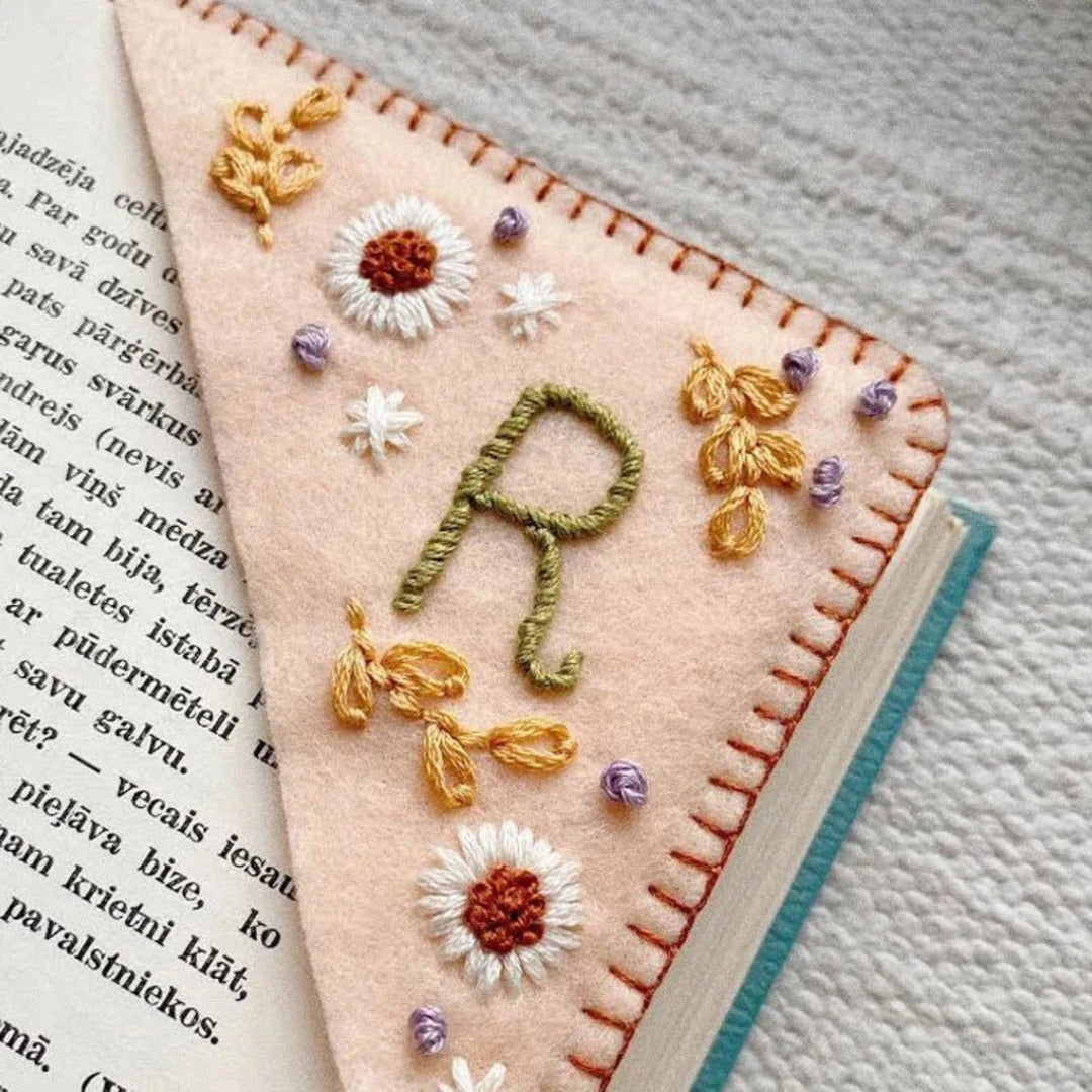 40% RABATT | Personalisiertes handbesticktes Eck-Lesezeichen
