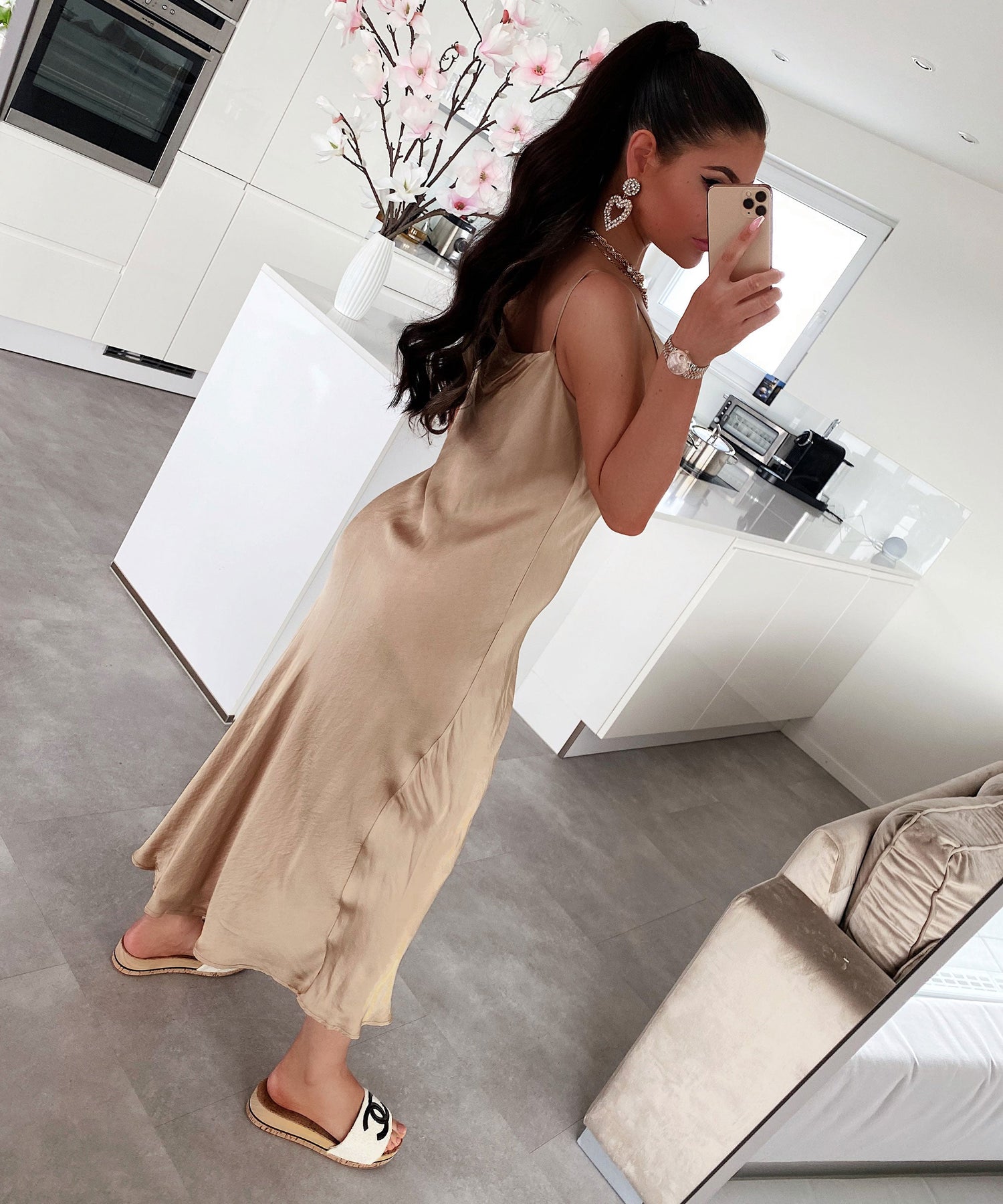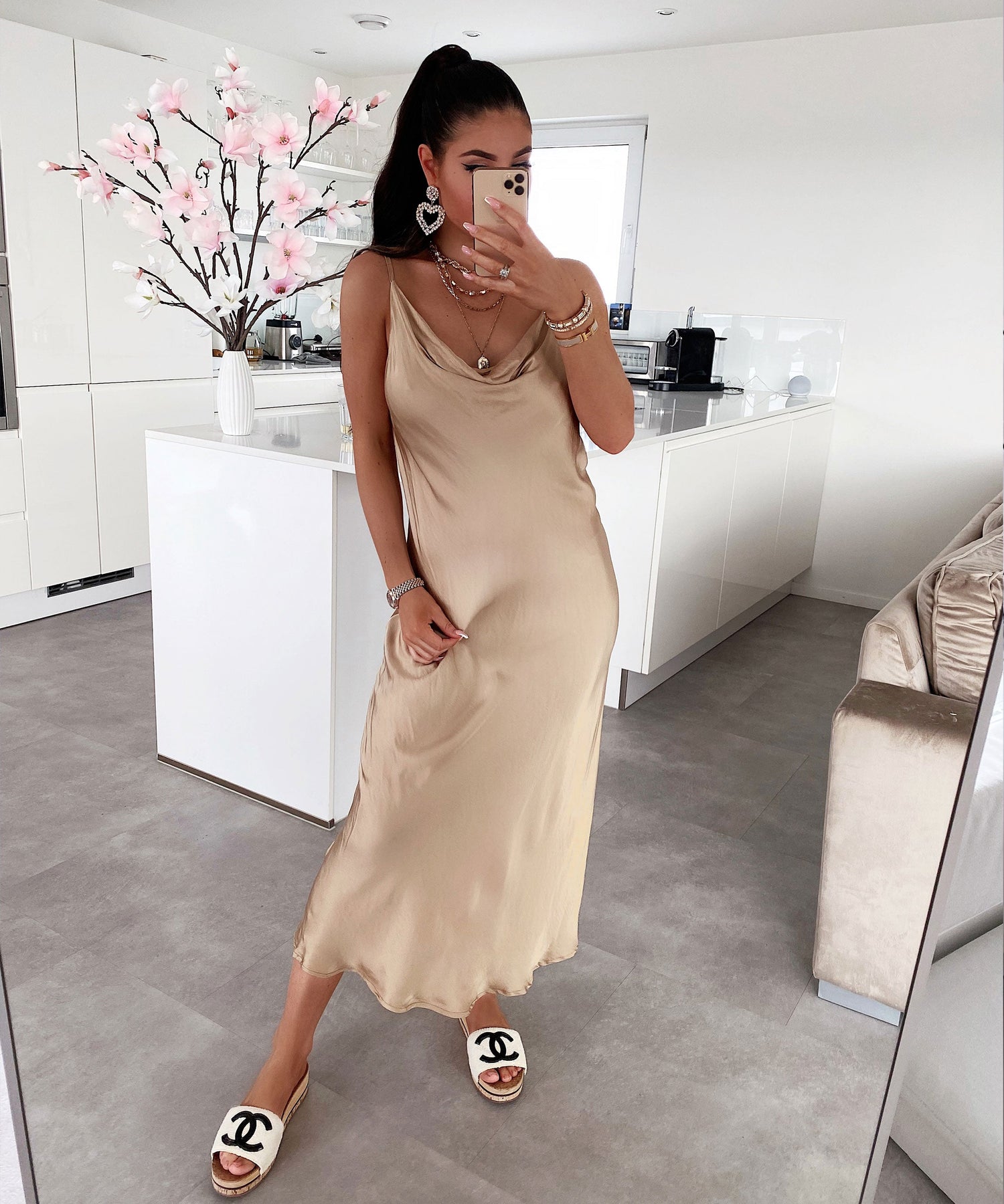 Satin Kleid Casha Camel