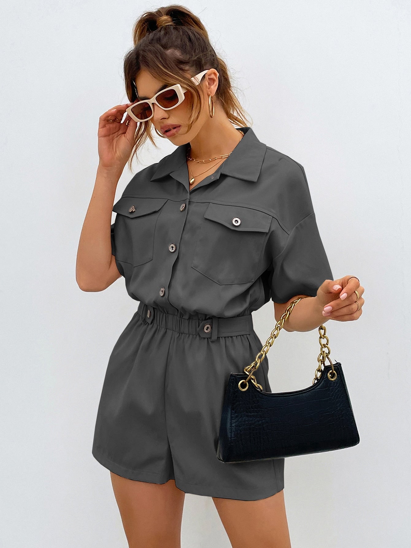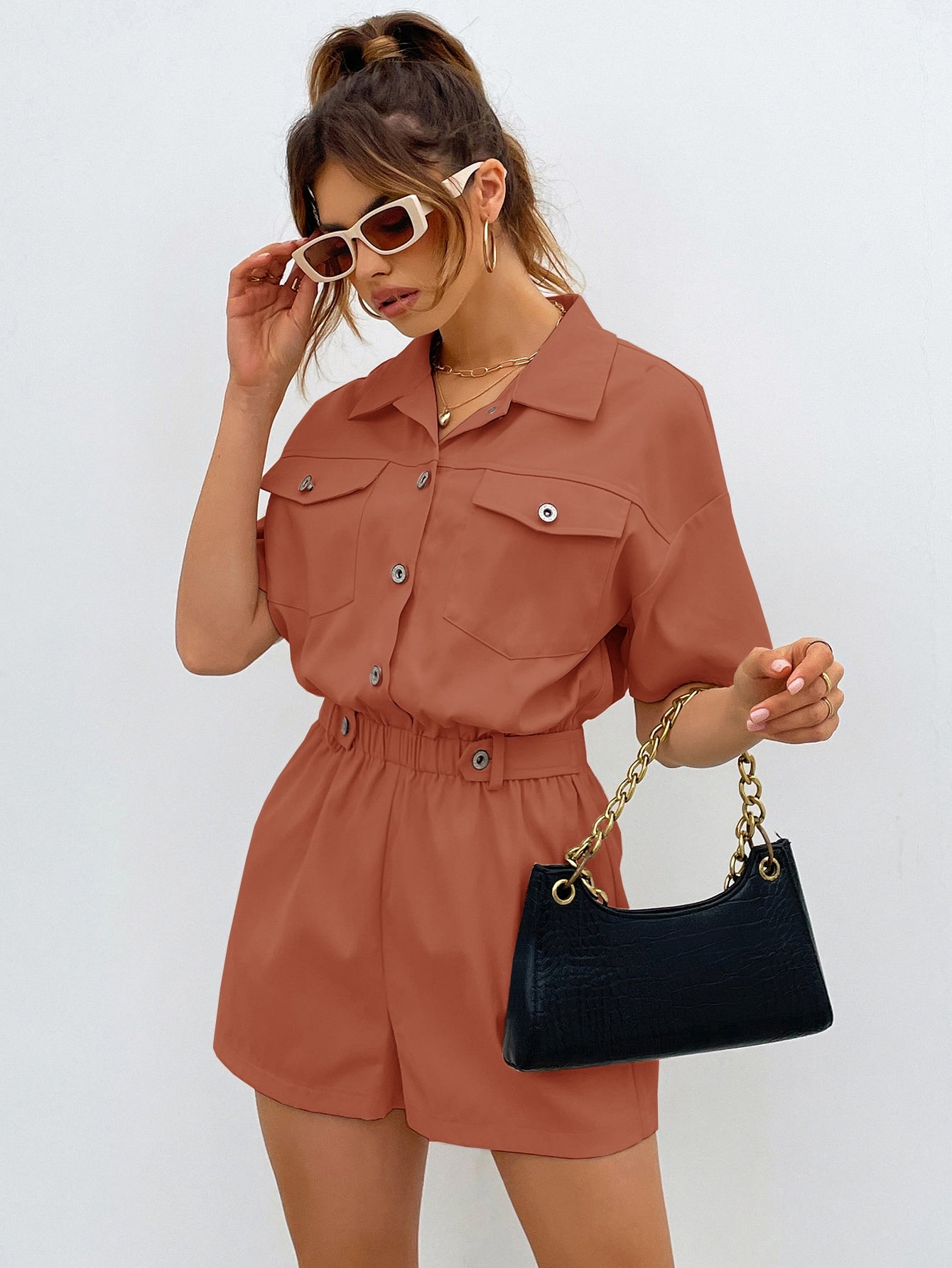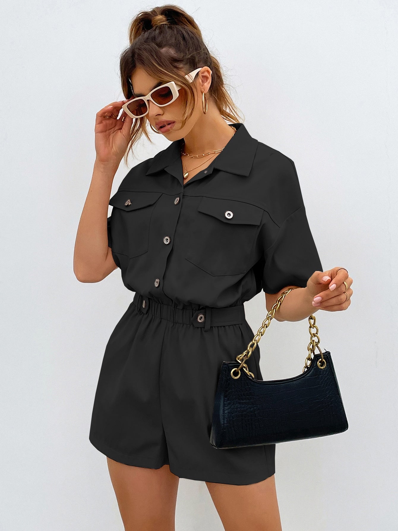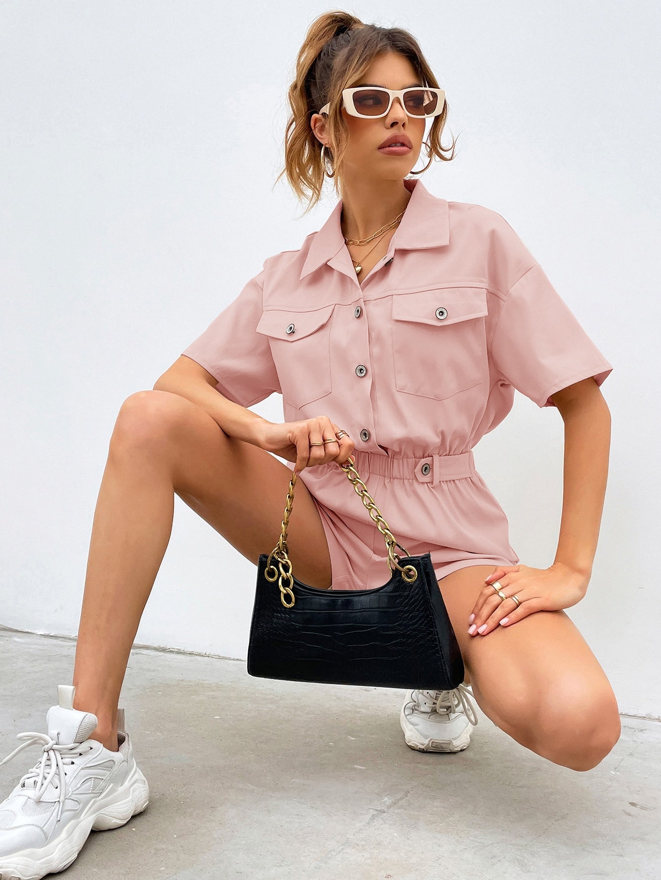 Shirt Romper mit Knopf vorne, Tasche Flicken