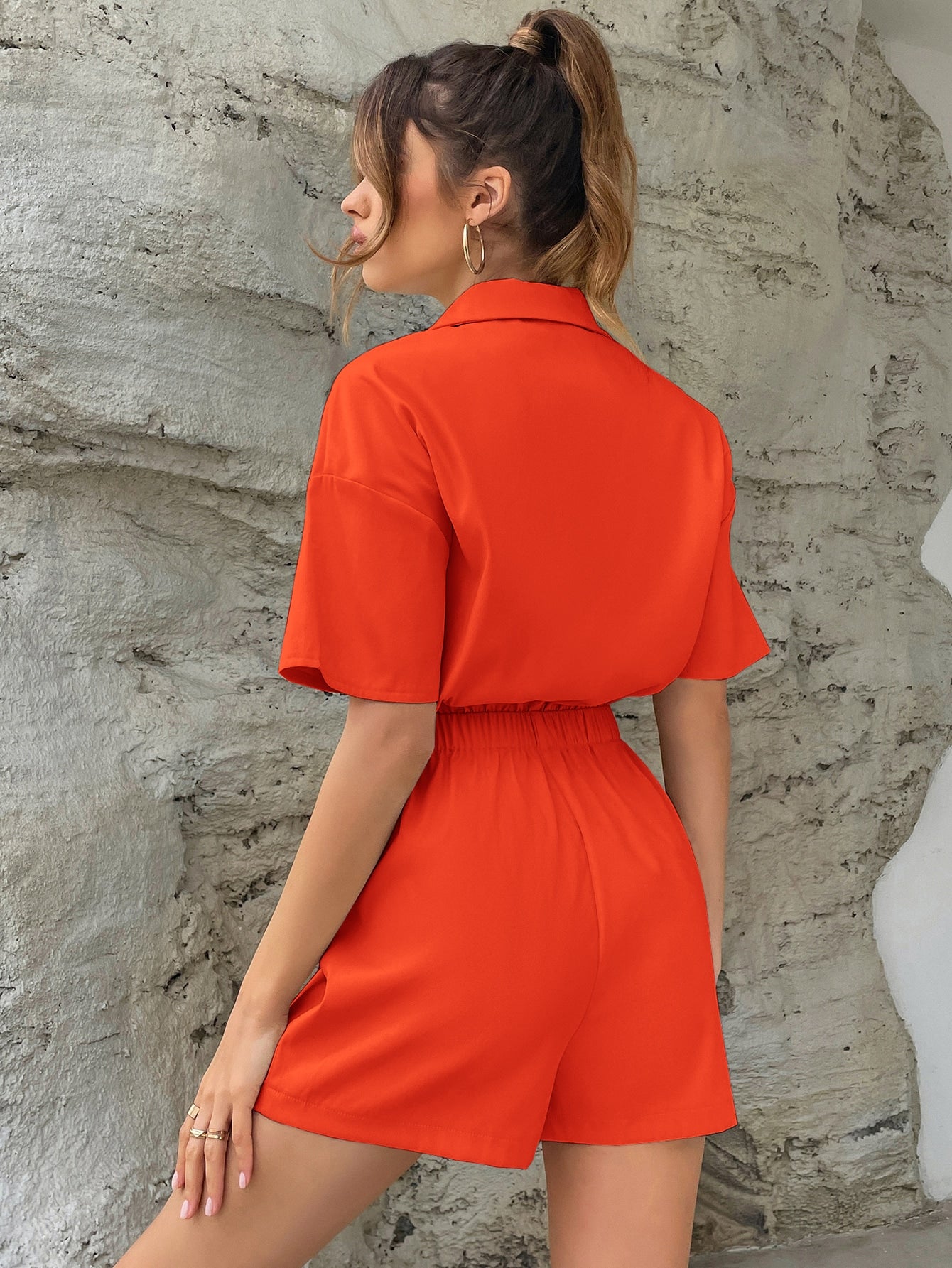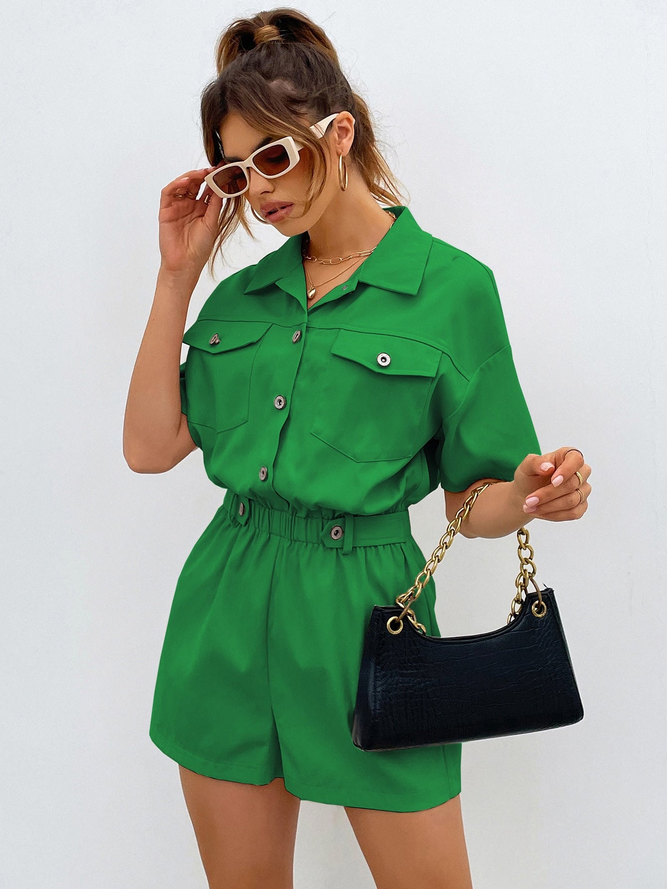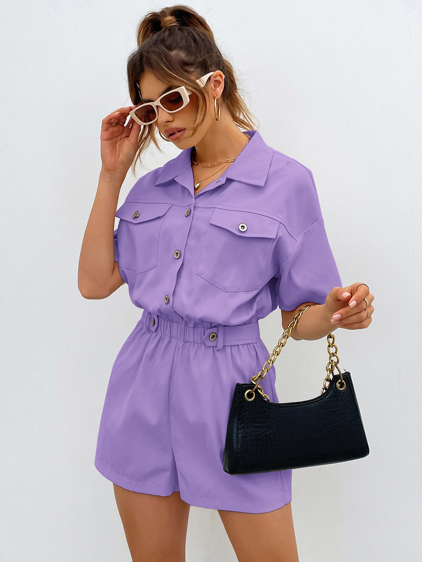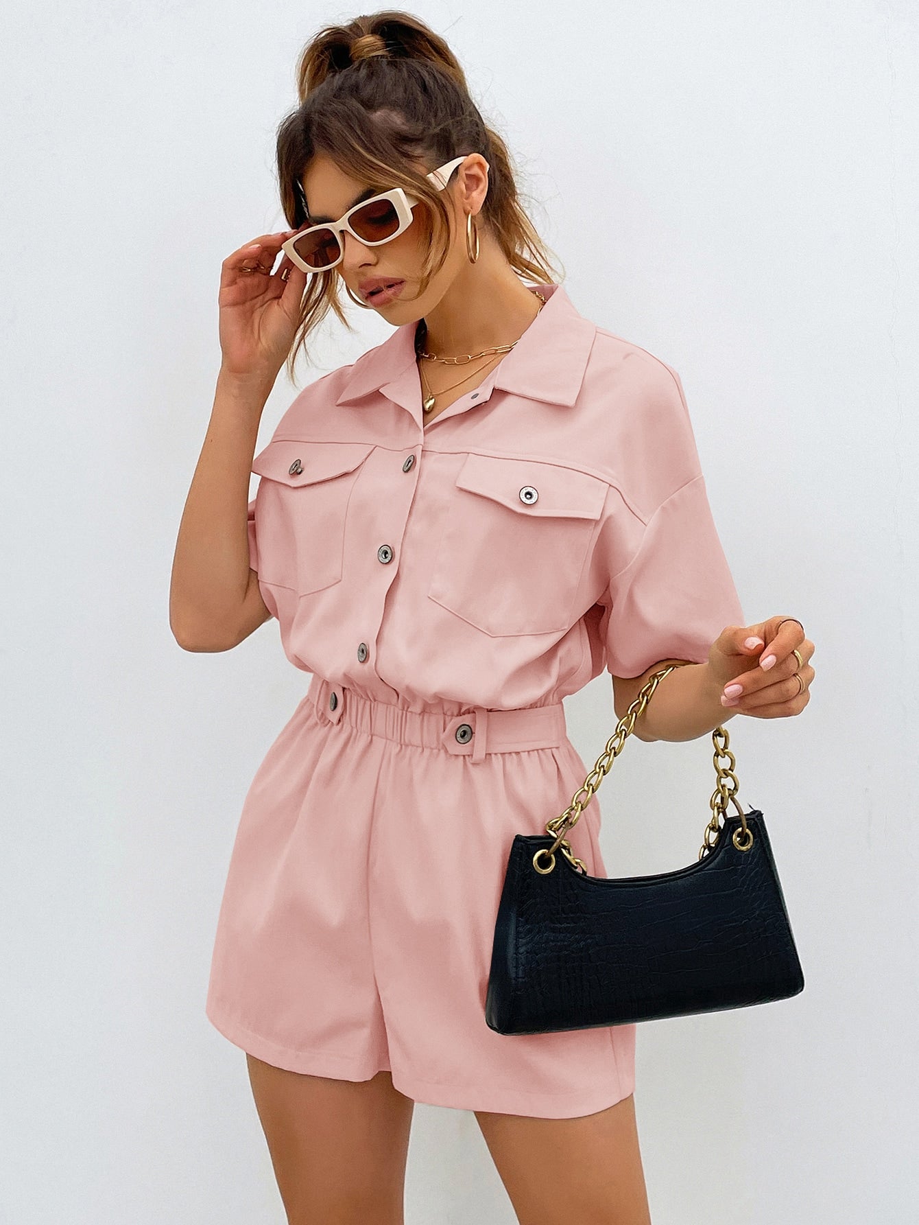 Shirt Romper mit Knopf vorne, Tasche Flicken