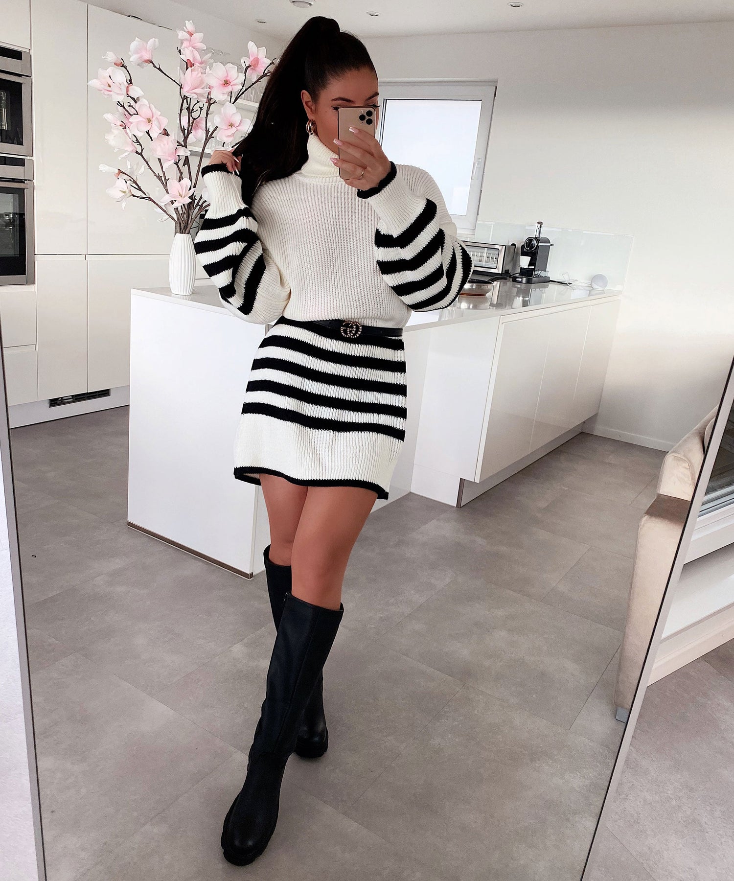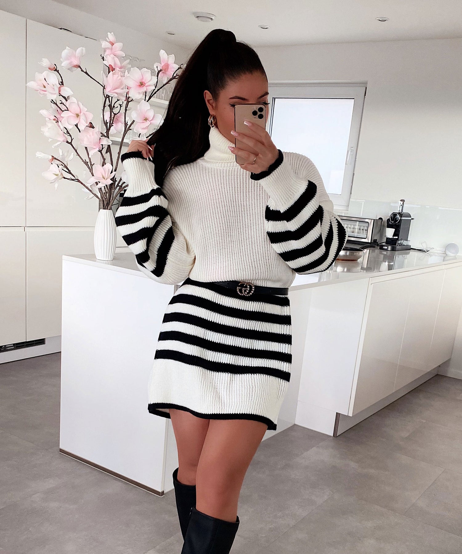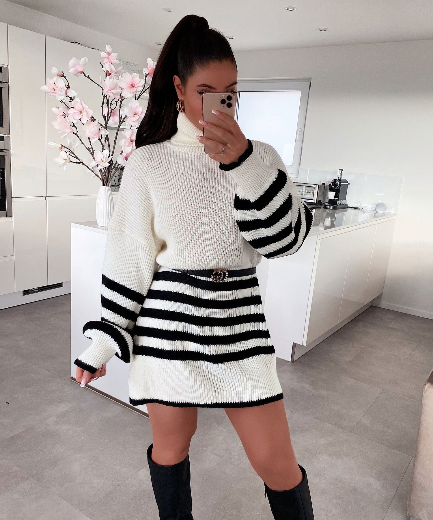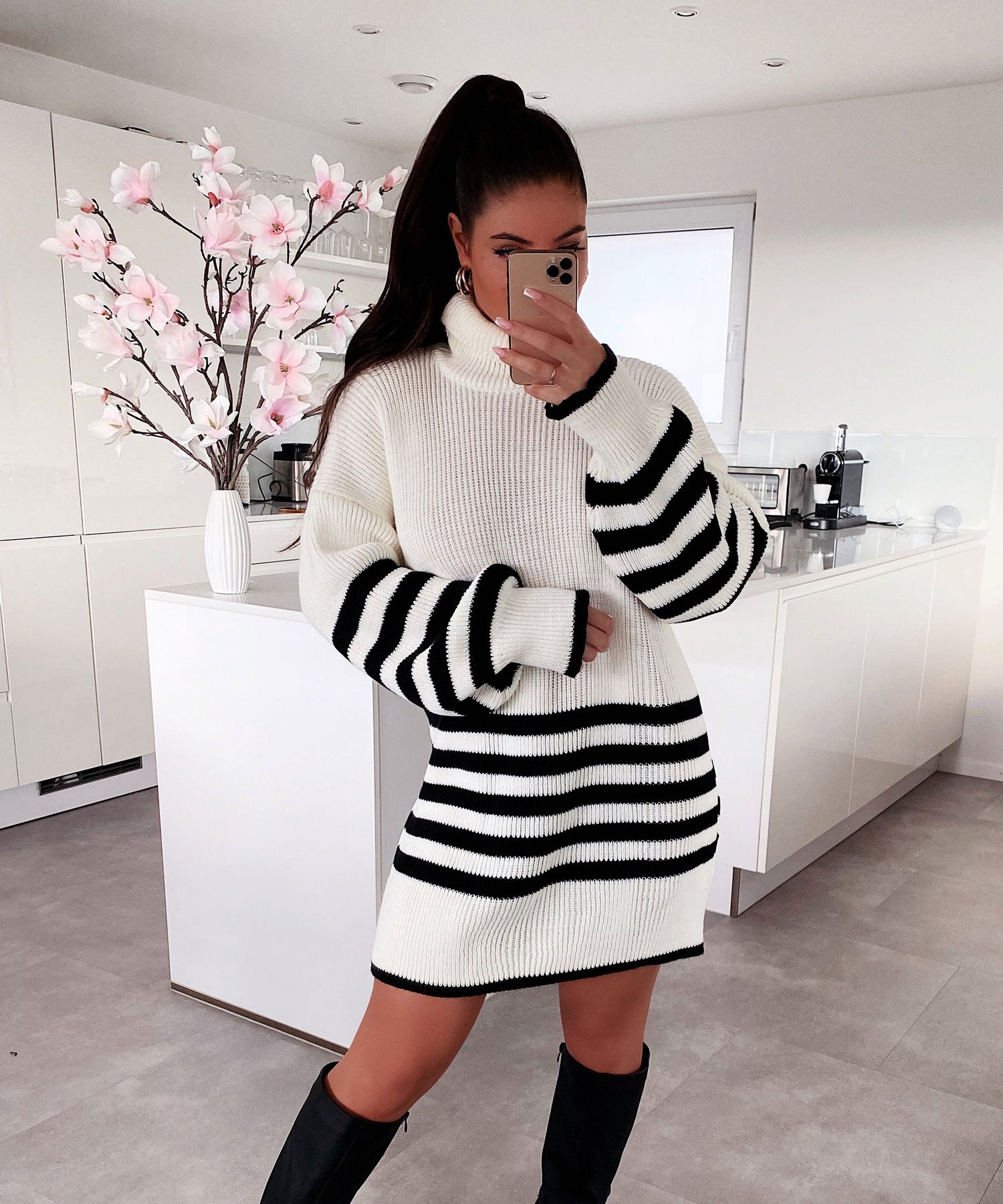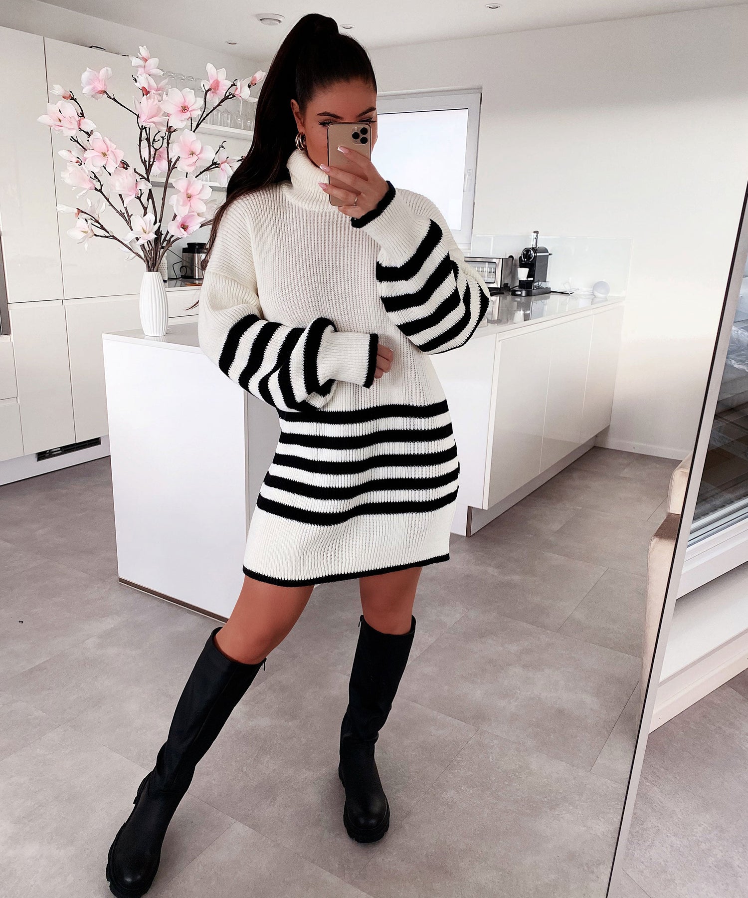 • Einheitsgröße passt XS-L. Model ist 1.65m groß. Weiches Strickkleid mit Rollkragen.