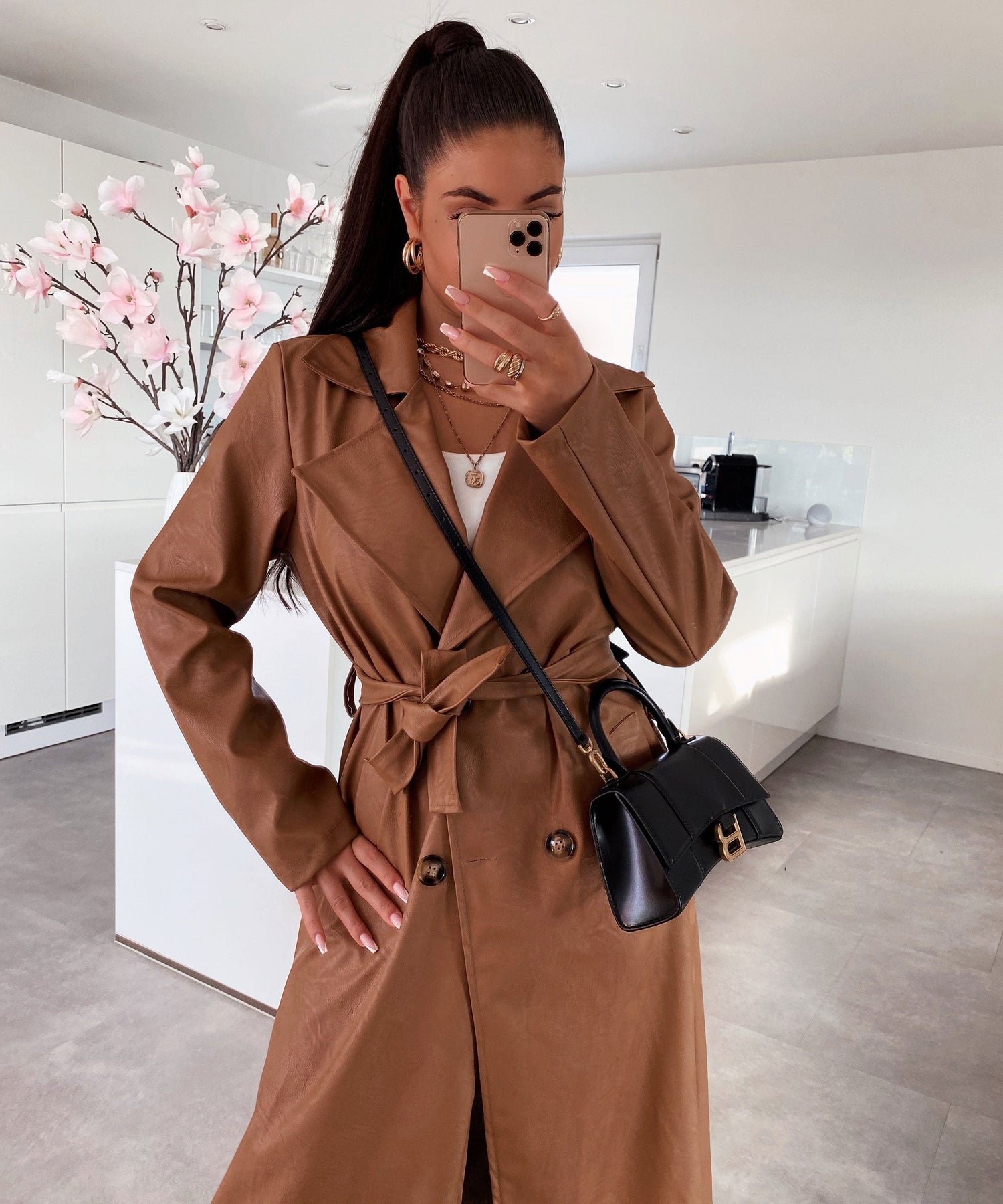 Ledermantel Harlow Braun