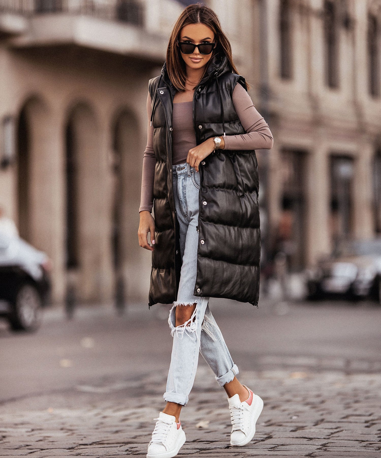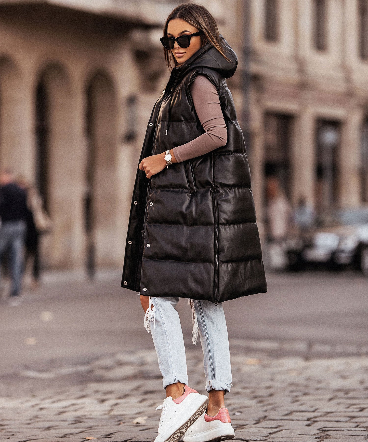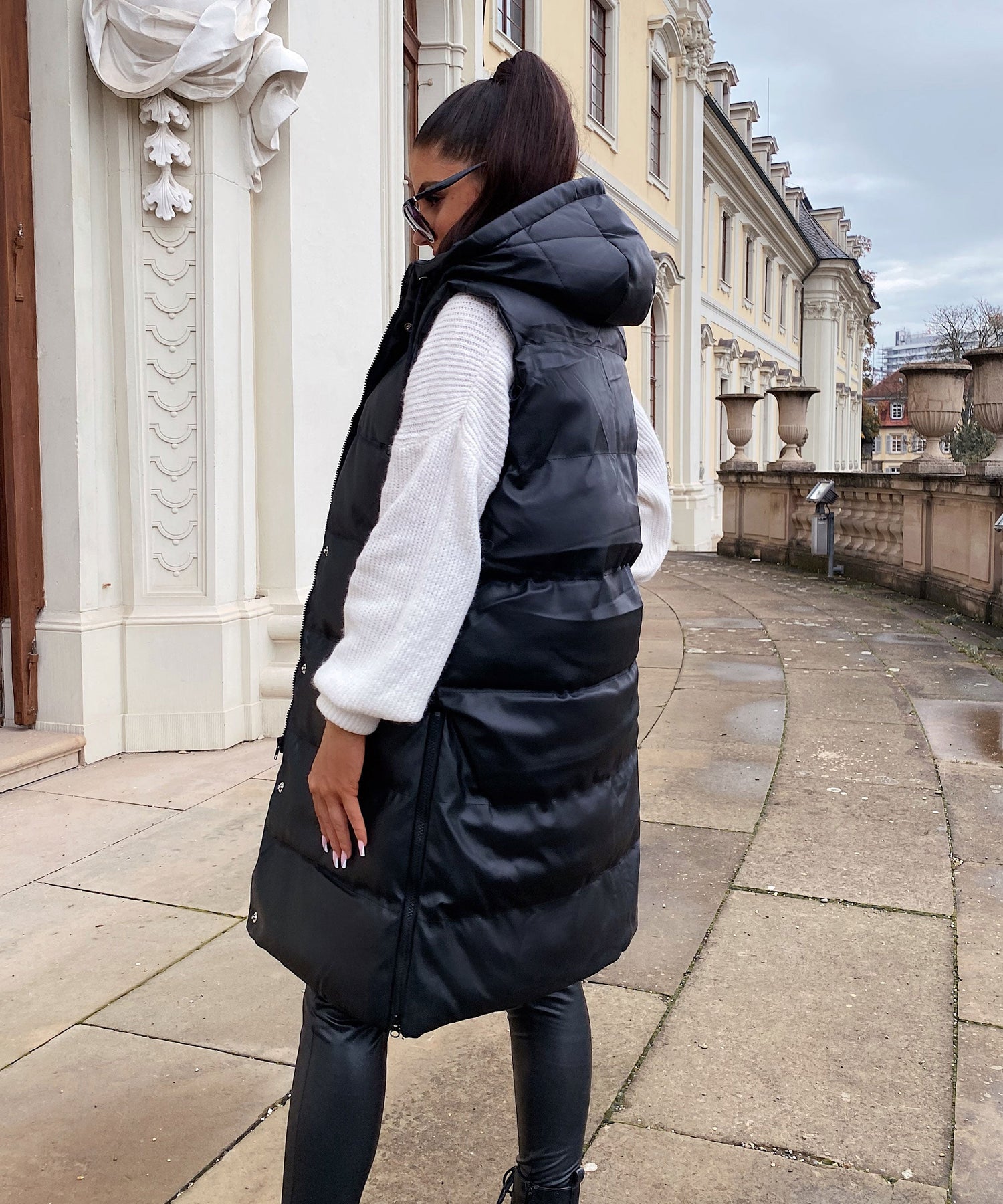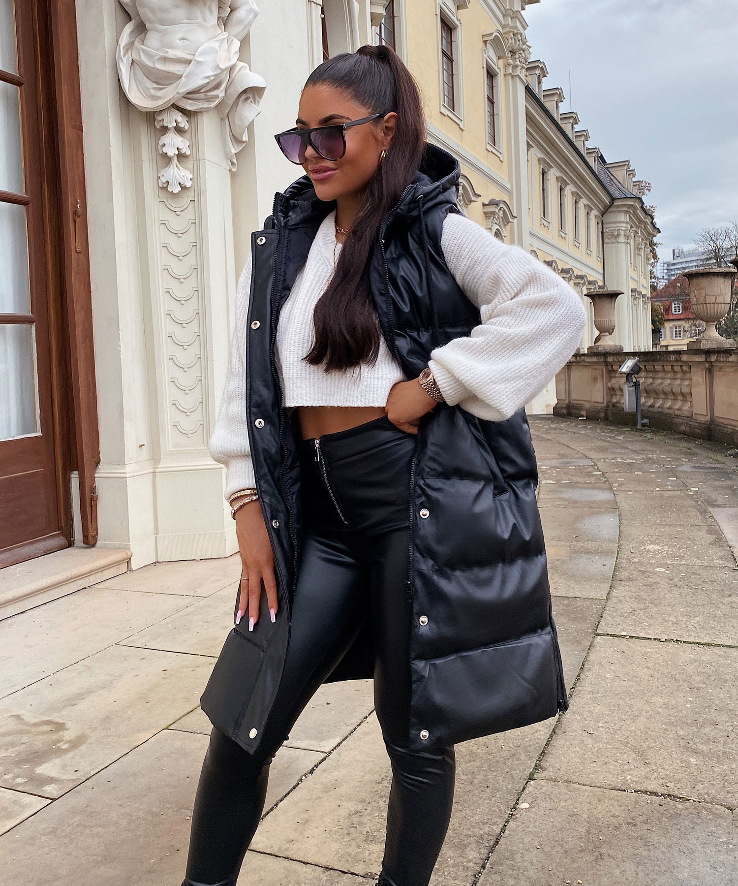 • Model ist 1.65m groß und trägt Größe S. Hält sehr warm. Kunstleder.