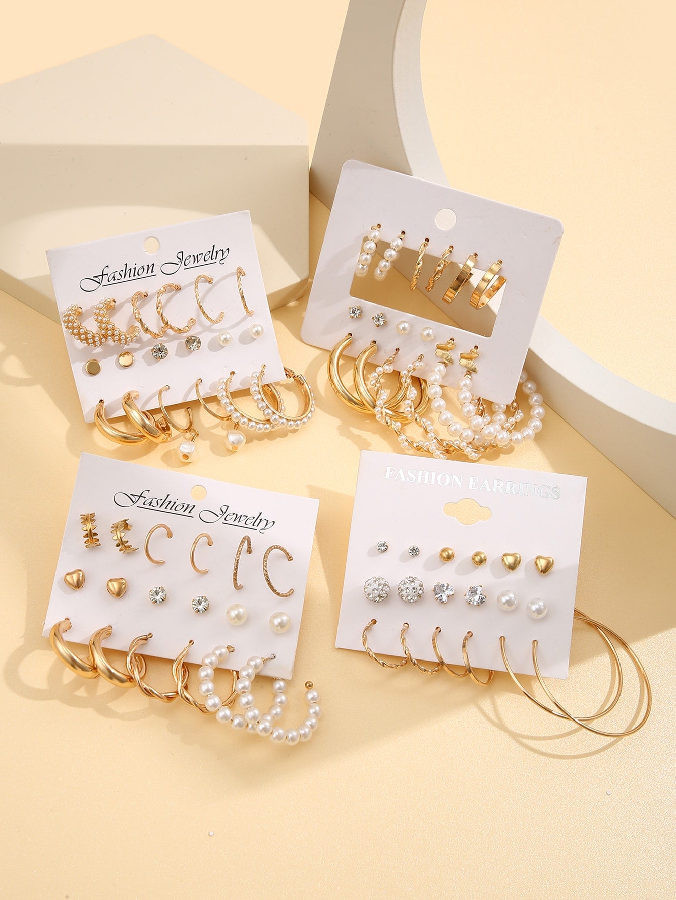 36 Paar Ohrringe mit zufällig Kunstperle & Strass Dekor