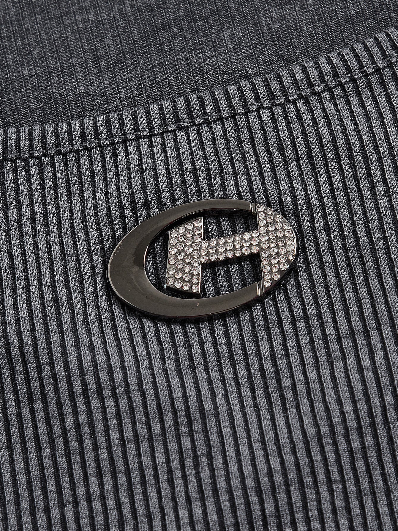 Crop T-Shirt mit Strass, Metall Dekor, U-Ausschnitt, asymmetrischem Saum