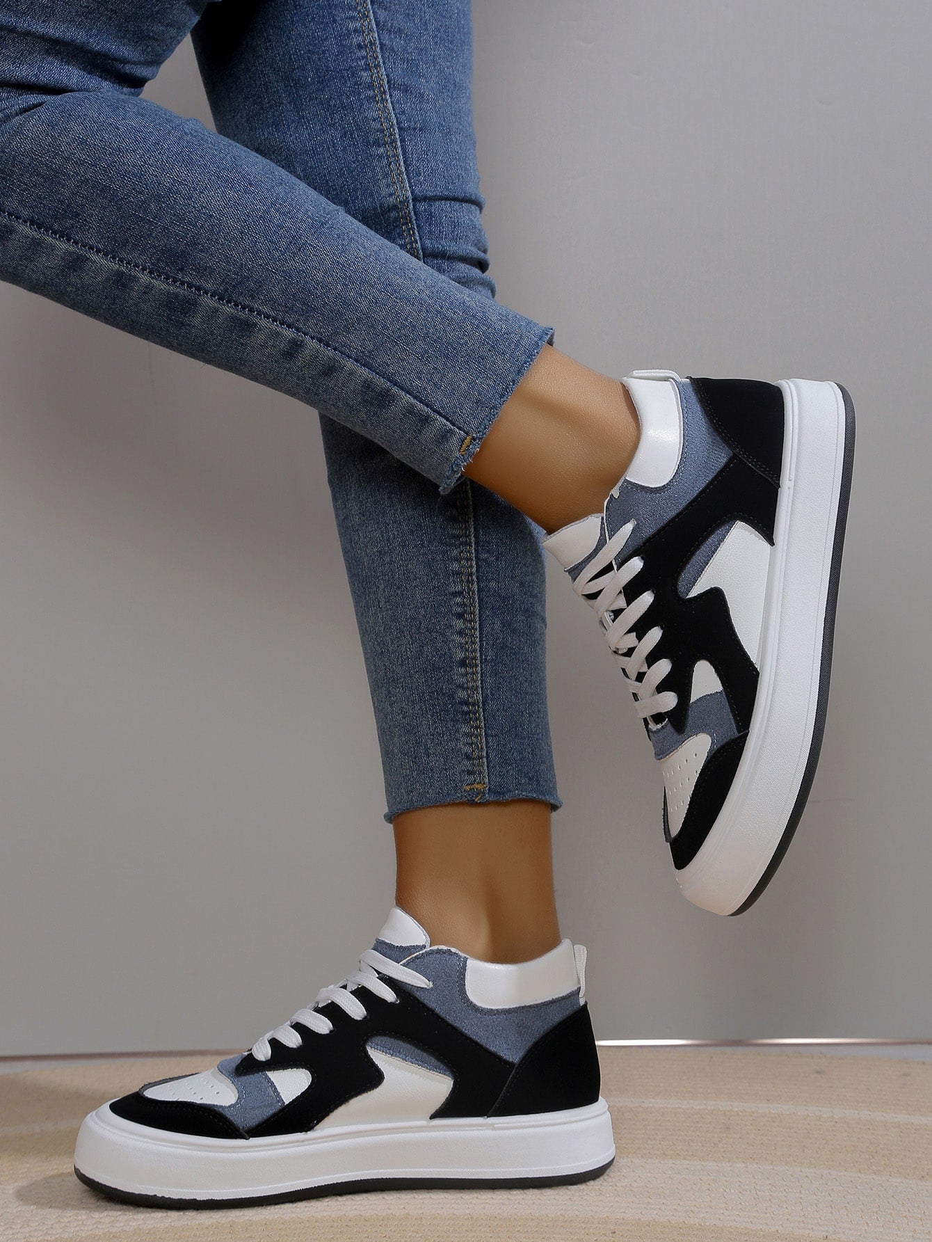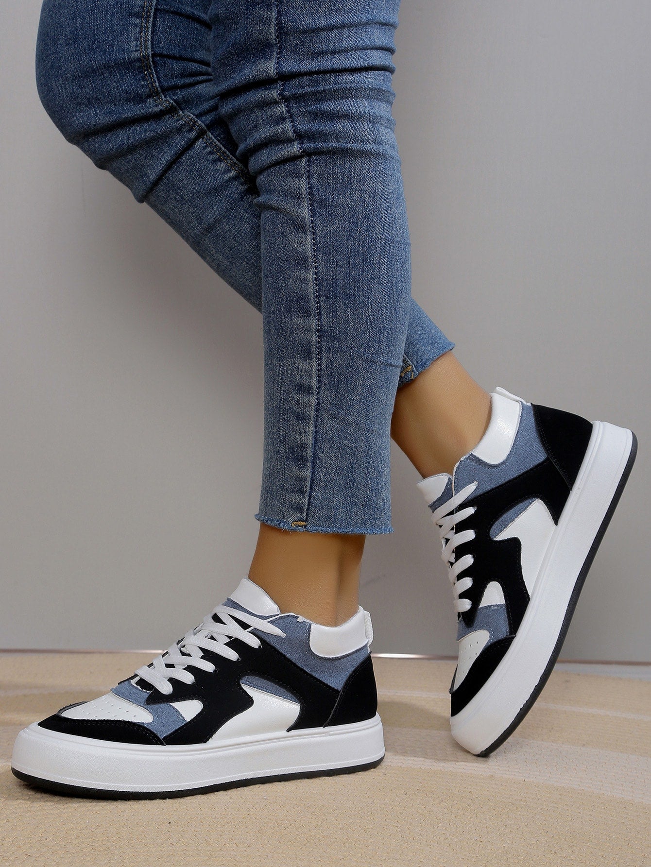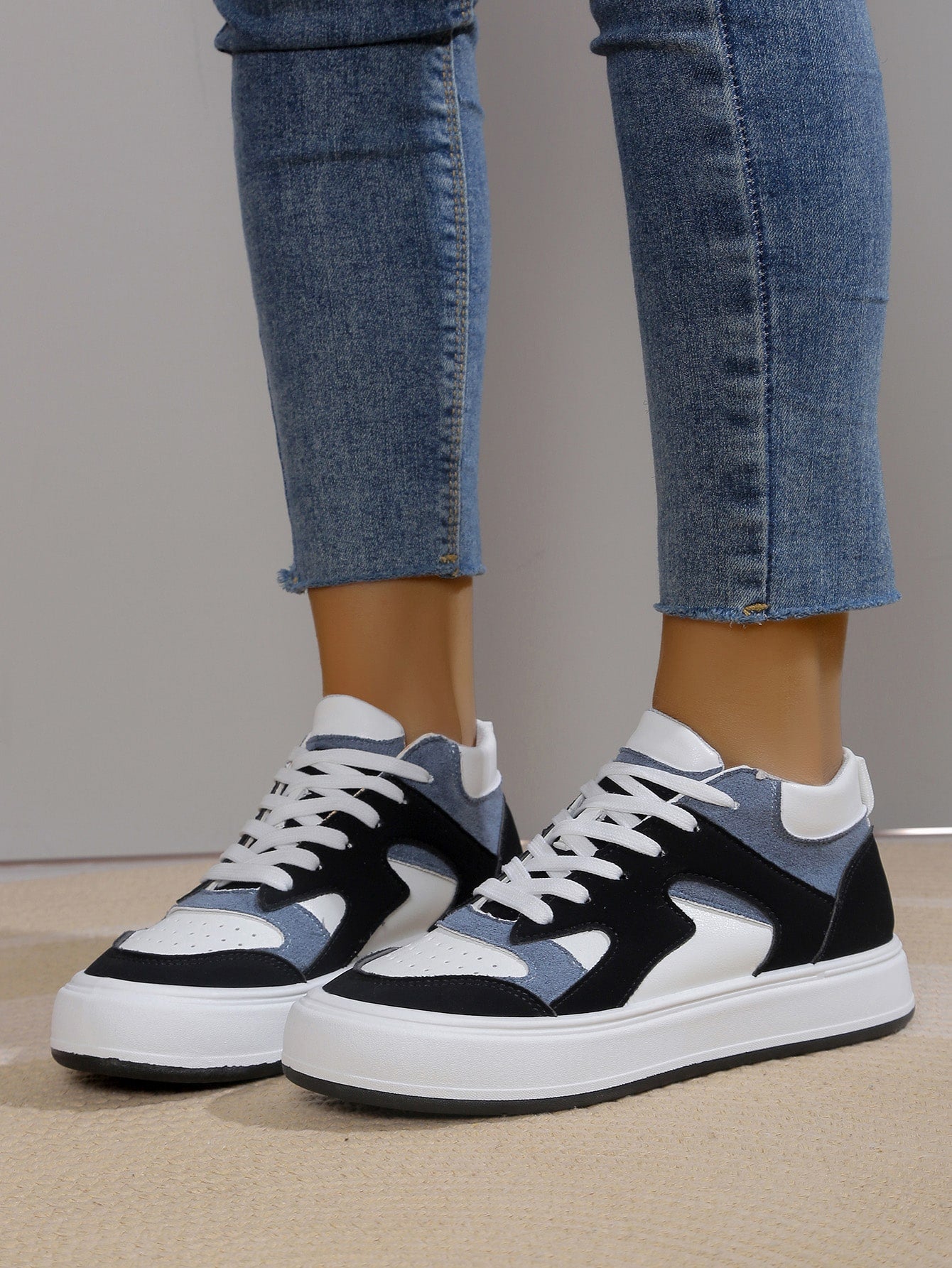 Damen Farbblock High Top Freizeitschuhe mit Schnürung vorne