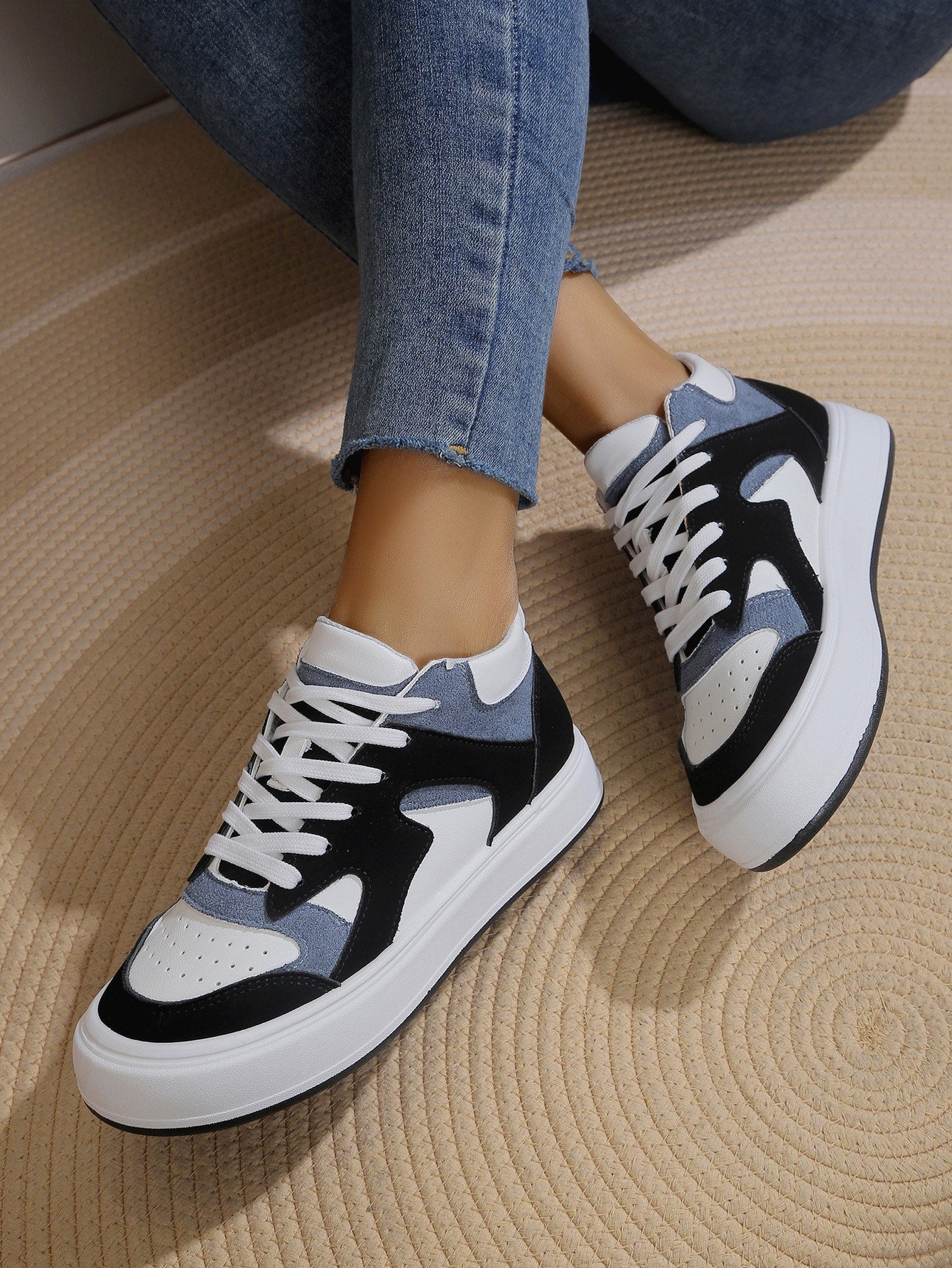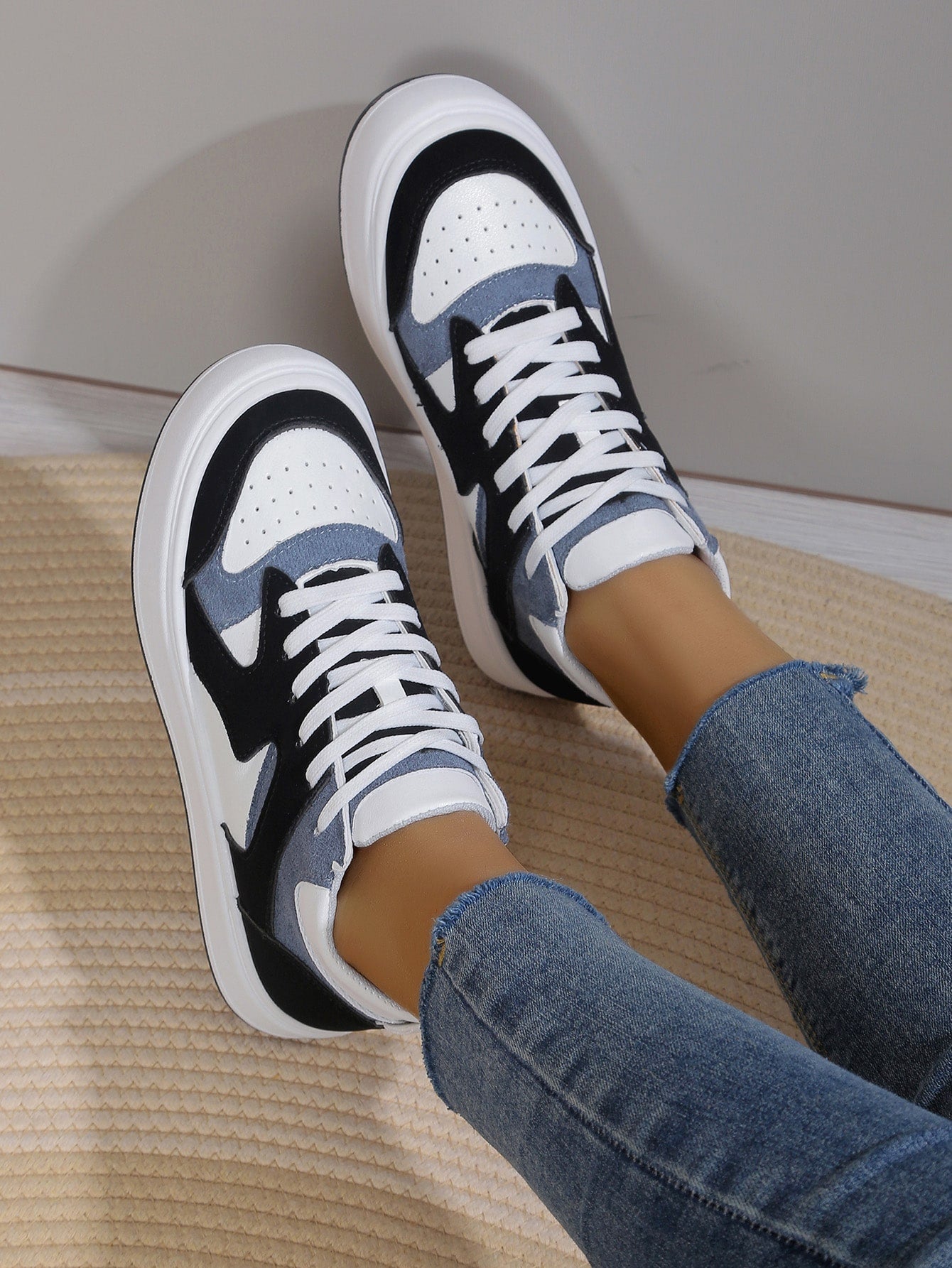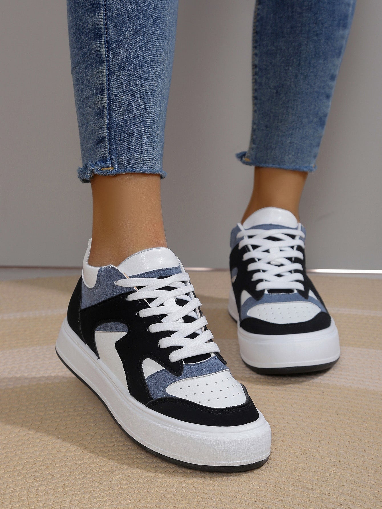 Damen Farbblock High Top Freizeitschuhe mit Schnürung vorne