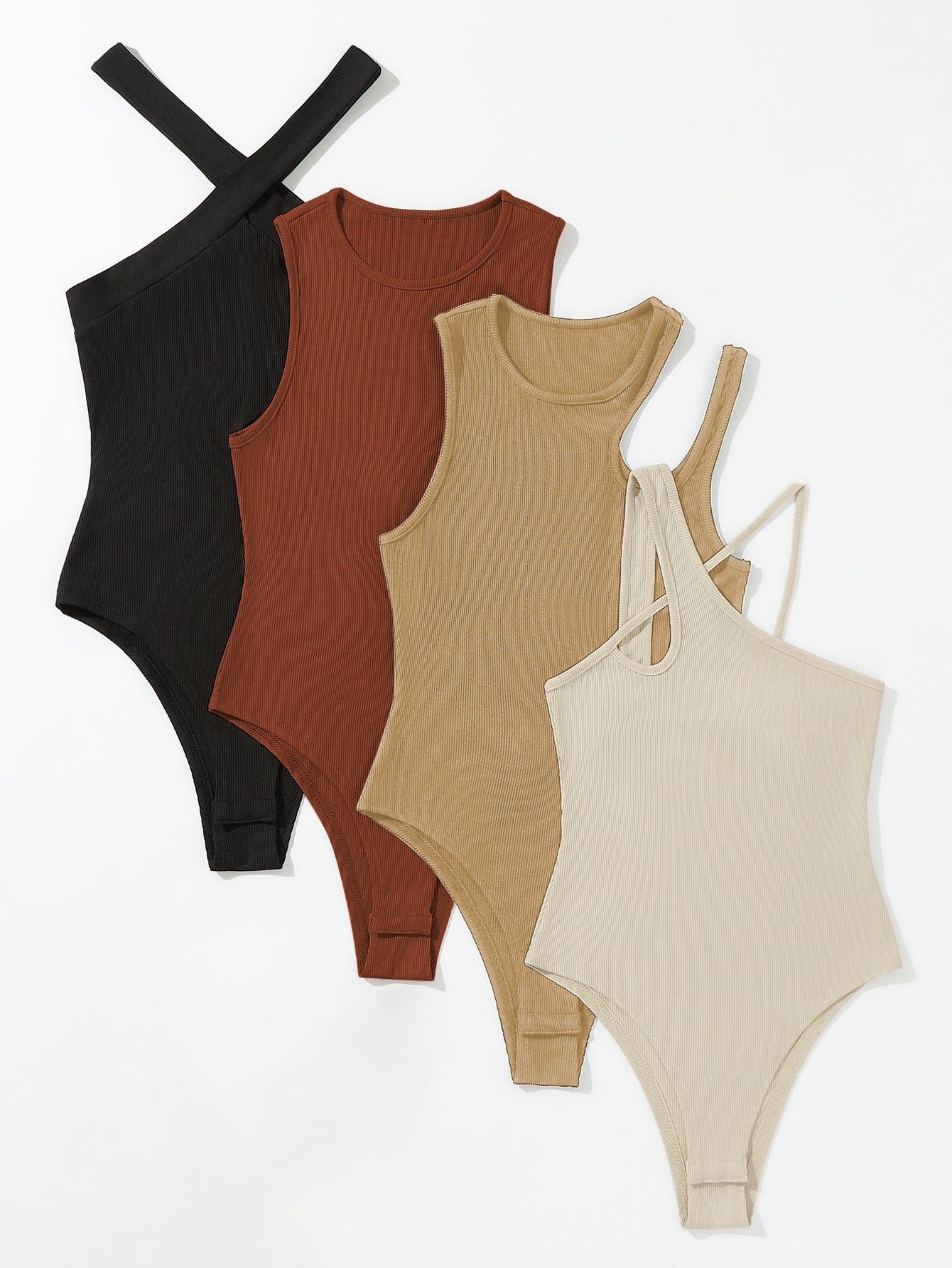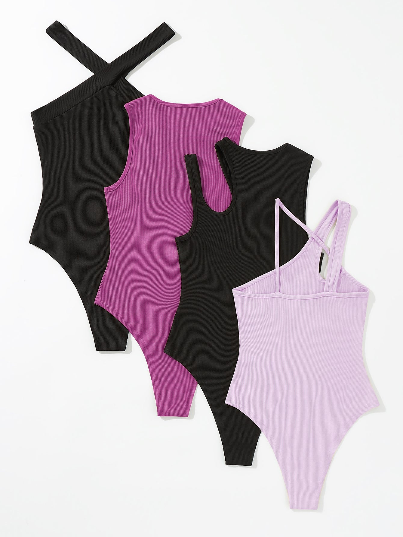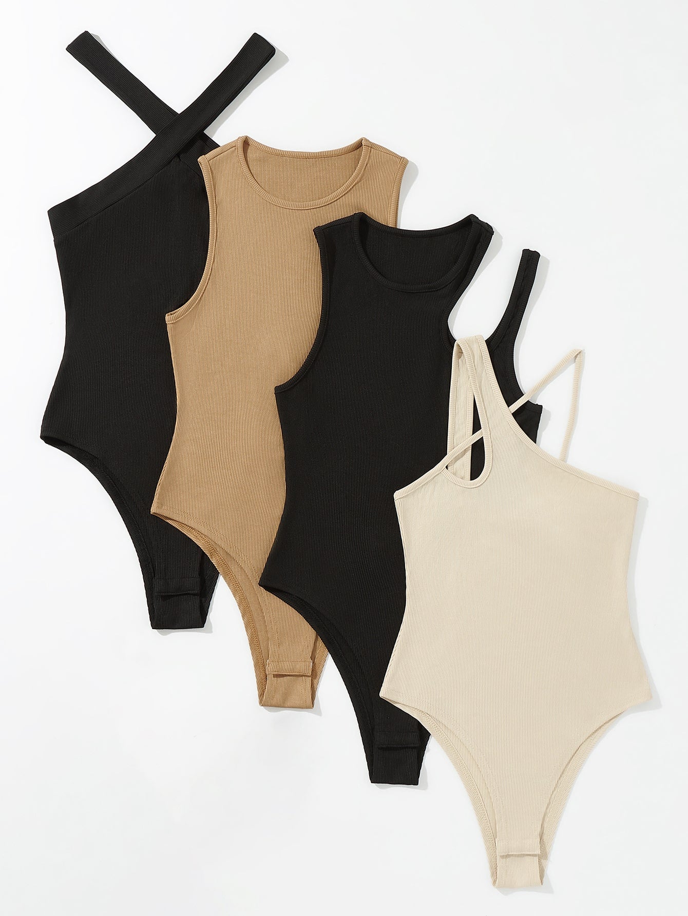 4 Stücke Body mit asymmetrischem Kragen, Ausschnitt
