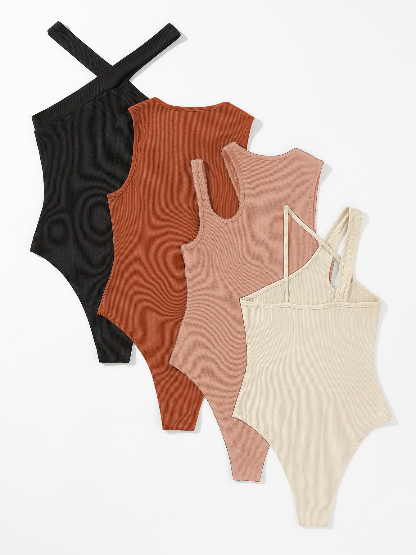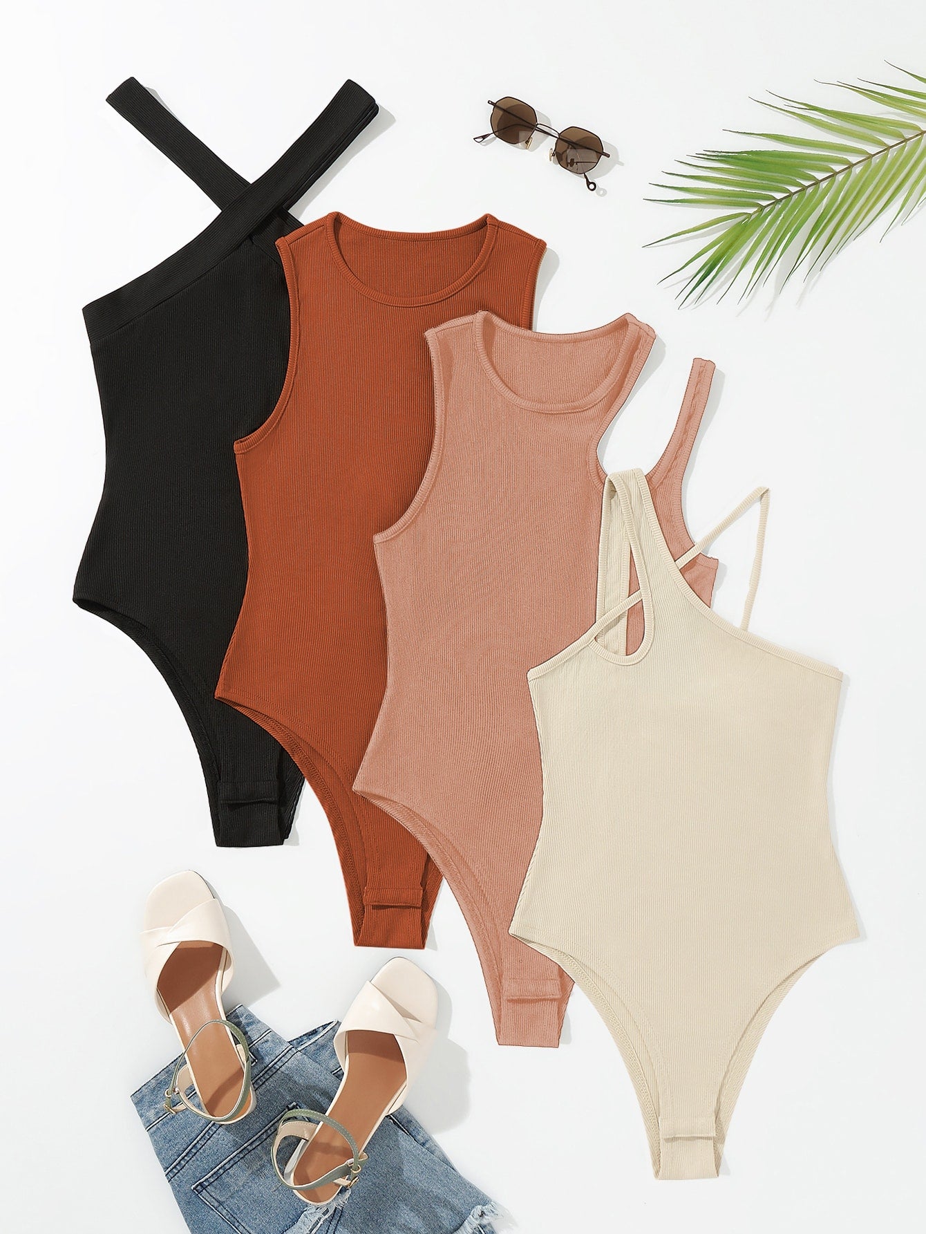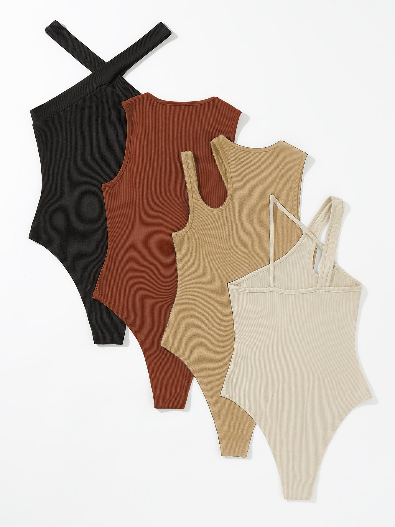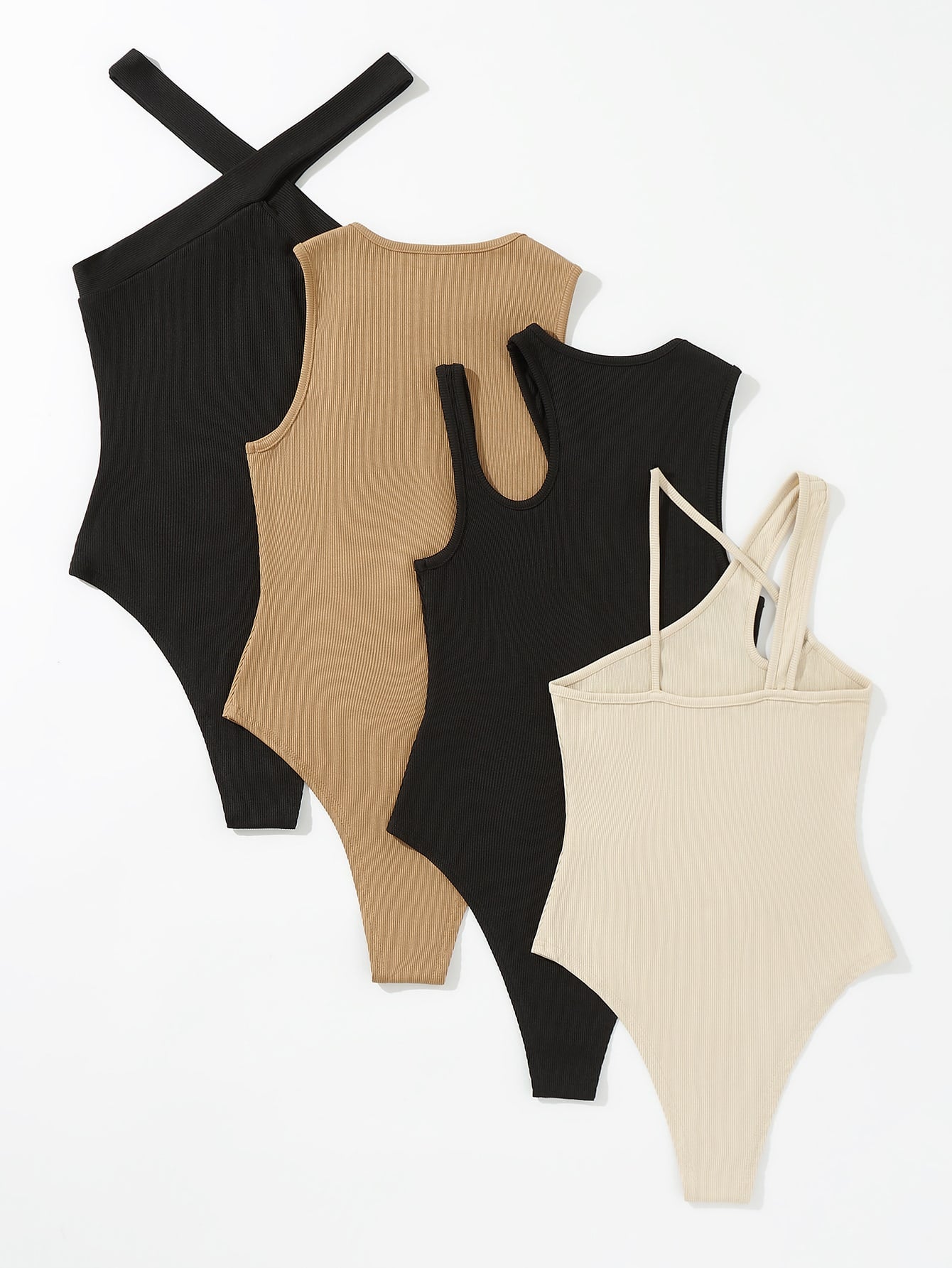 4 Stücke Body mit asymmetrischem Kragen, Ausschnitt