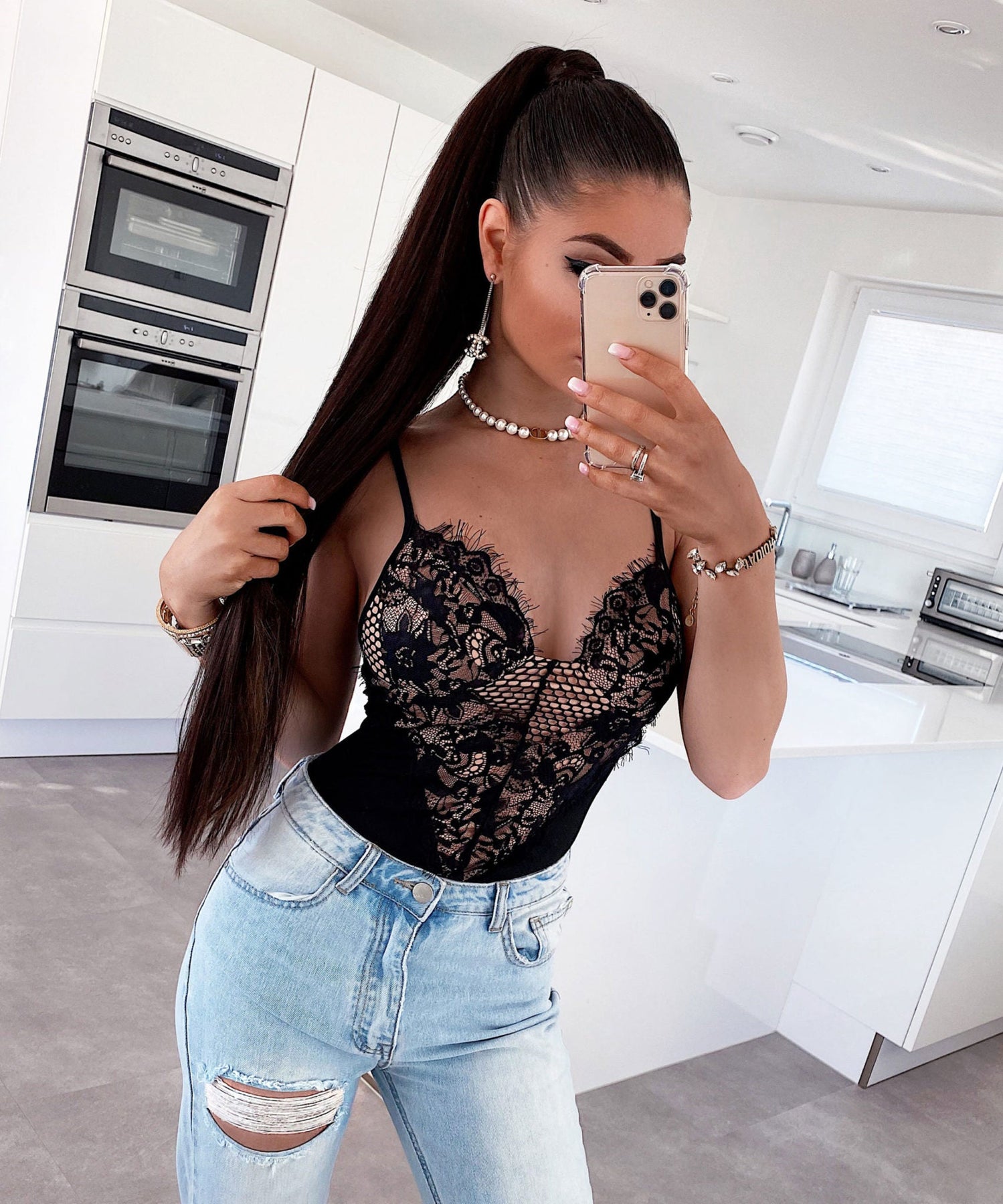 • Fällt normal aus Stoff ist sehr elastisch. Model zwei ist 1.65m groß und trägt Größe S (36).