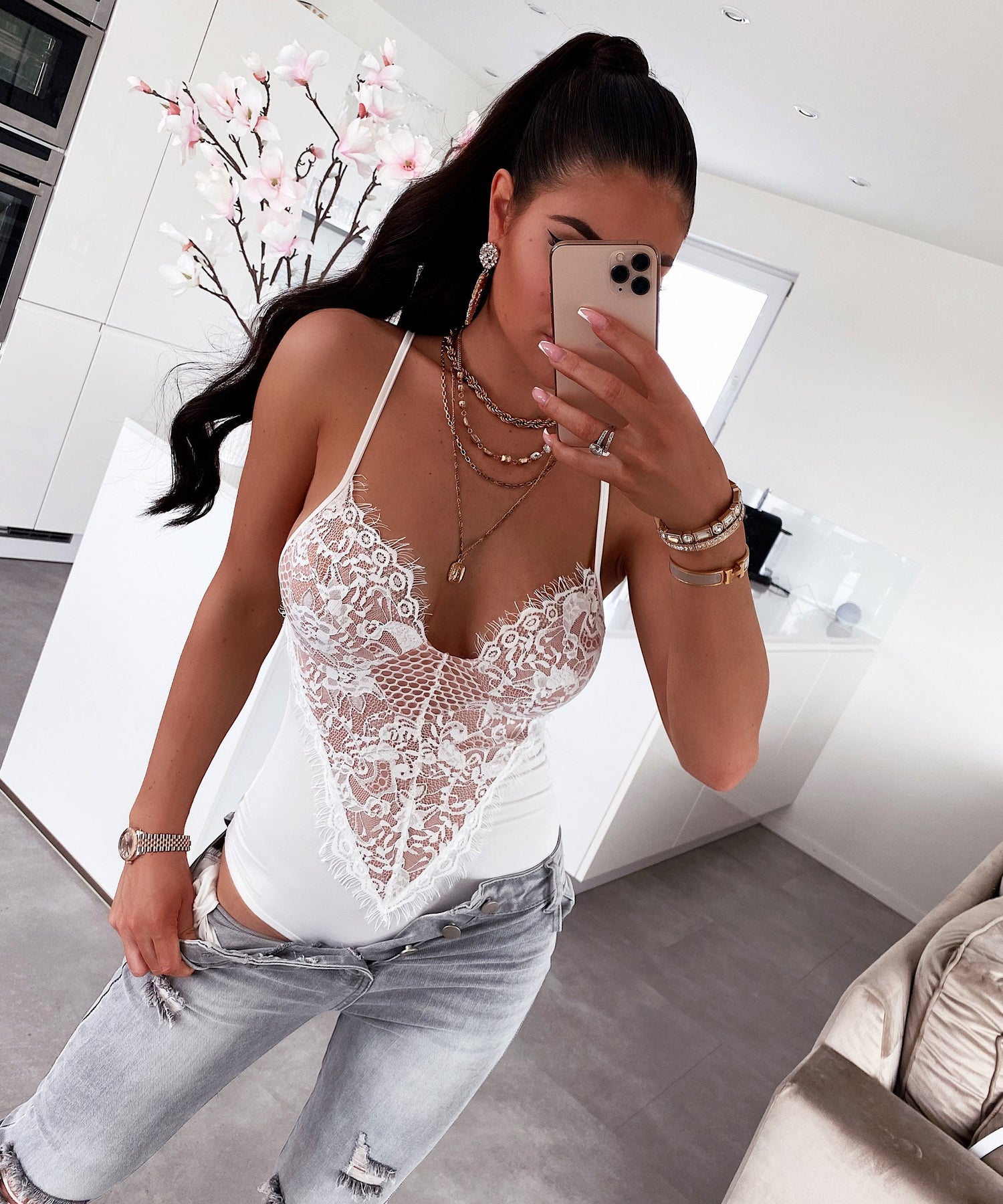 • Fällt normal aus Stoff ist sehr elastisch.Model ist 1.65m groß und trägt Größe S (36).
