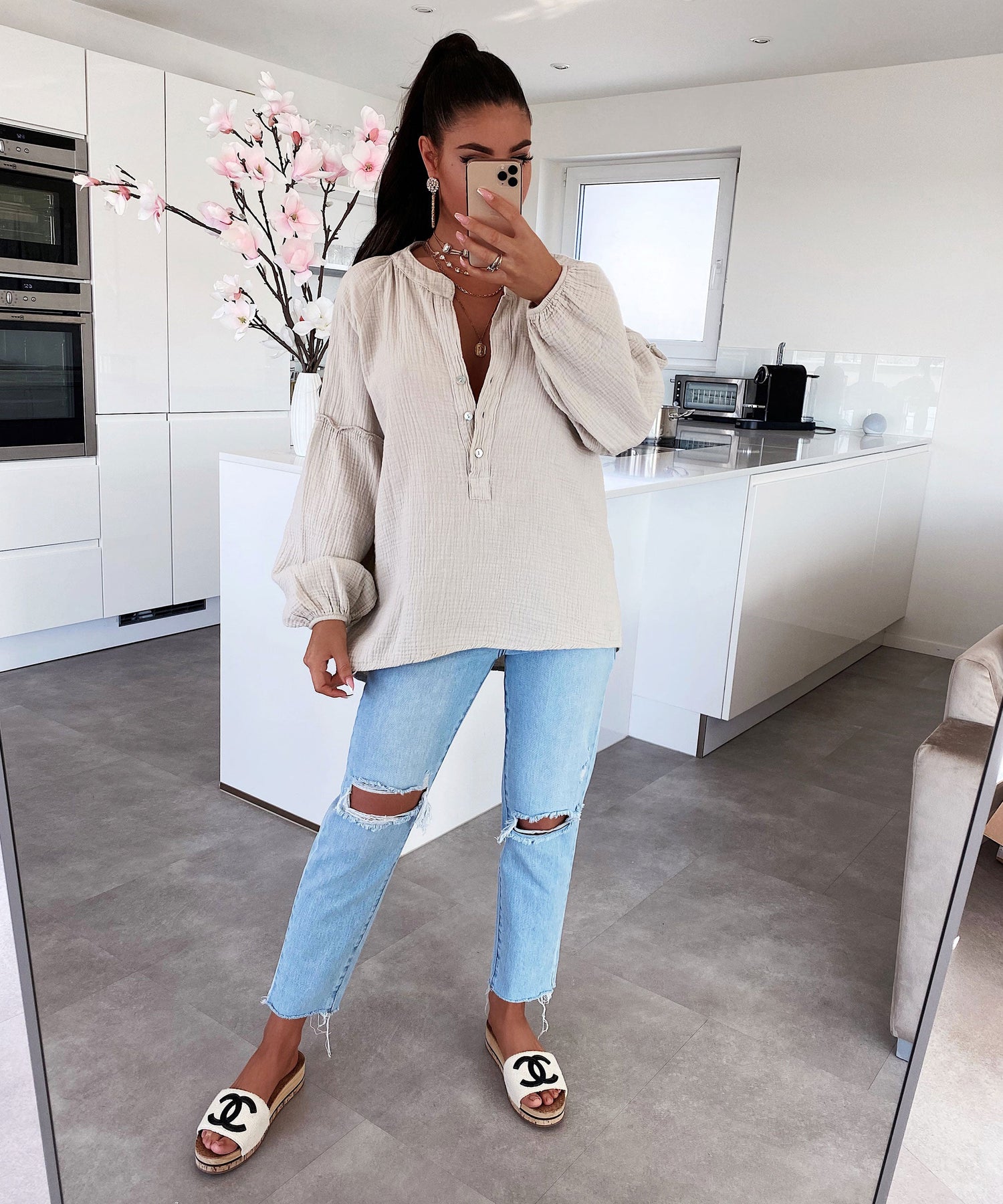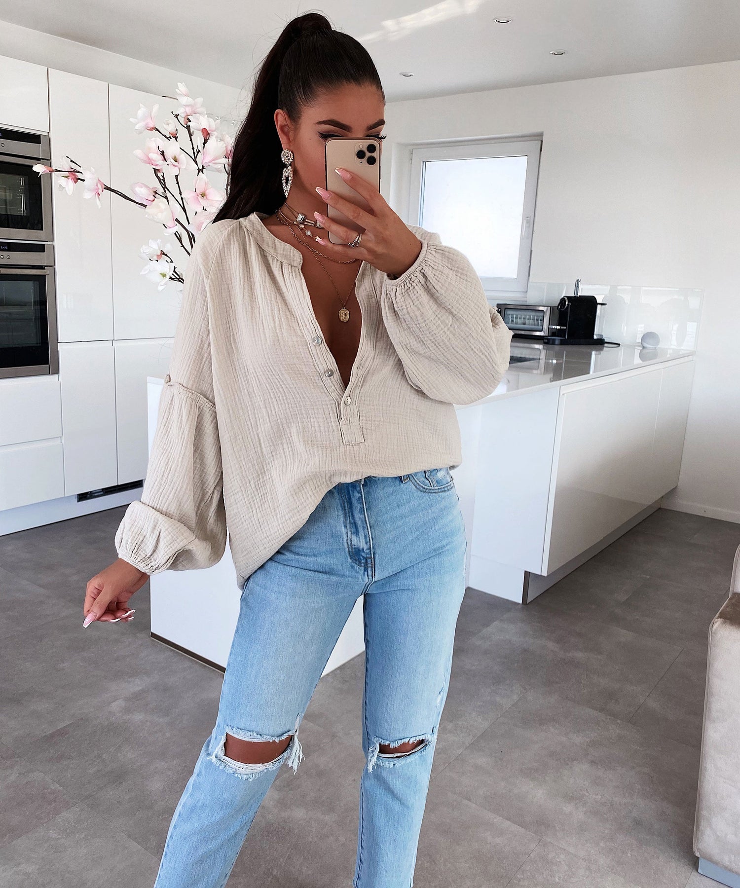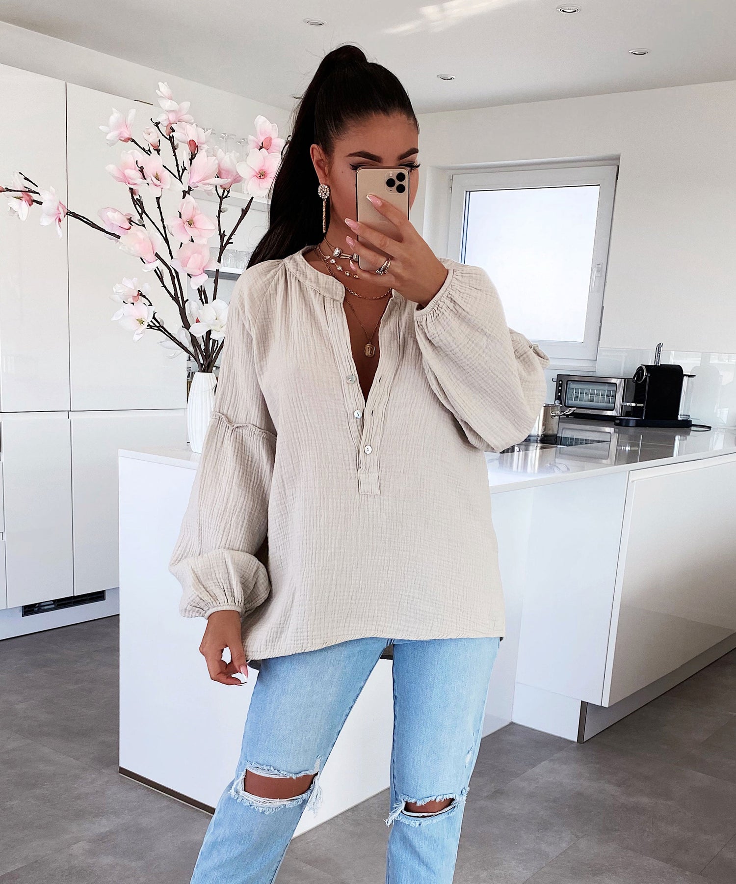 Musselin Bluse Maria Beige