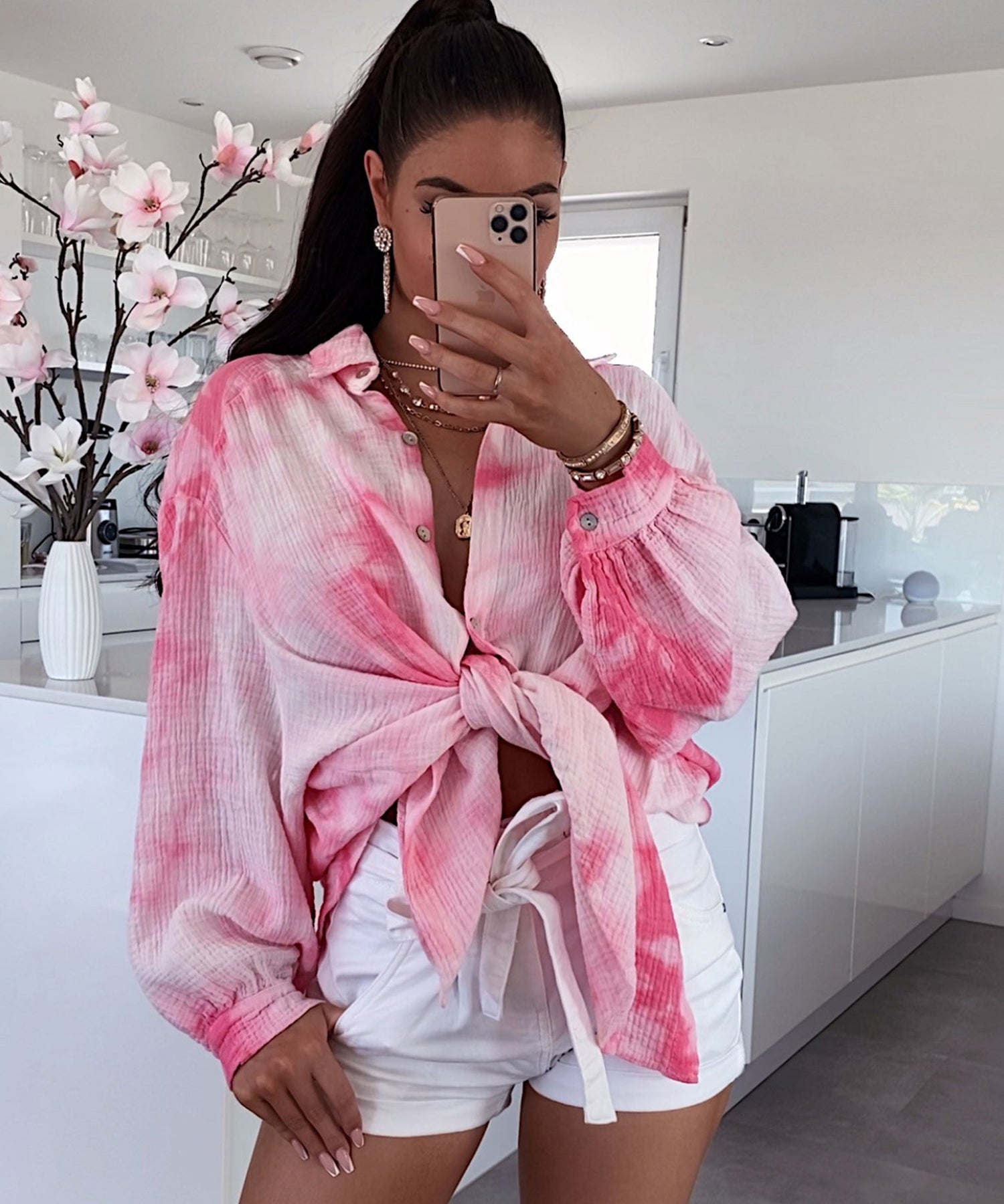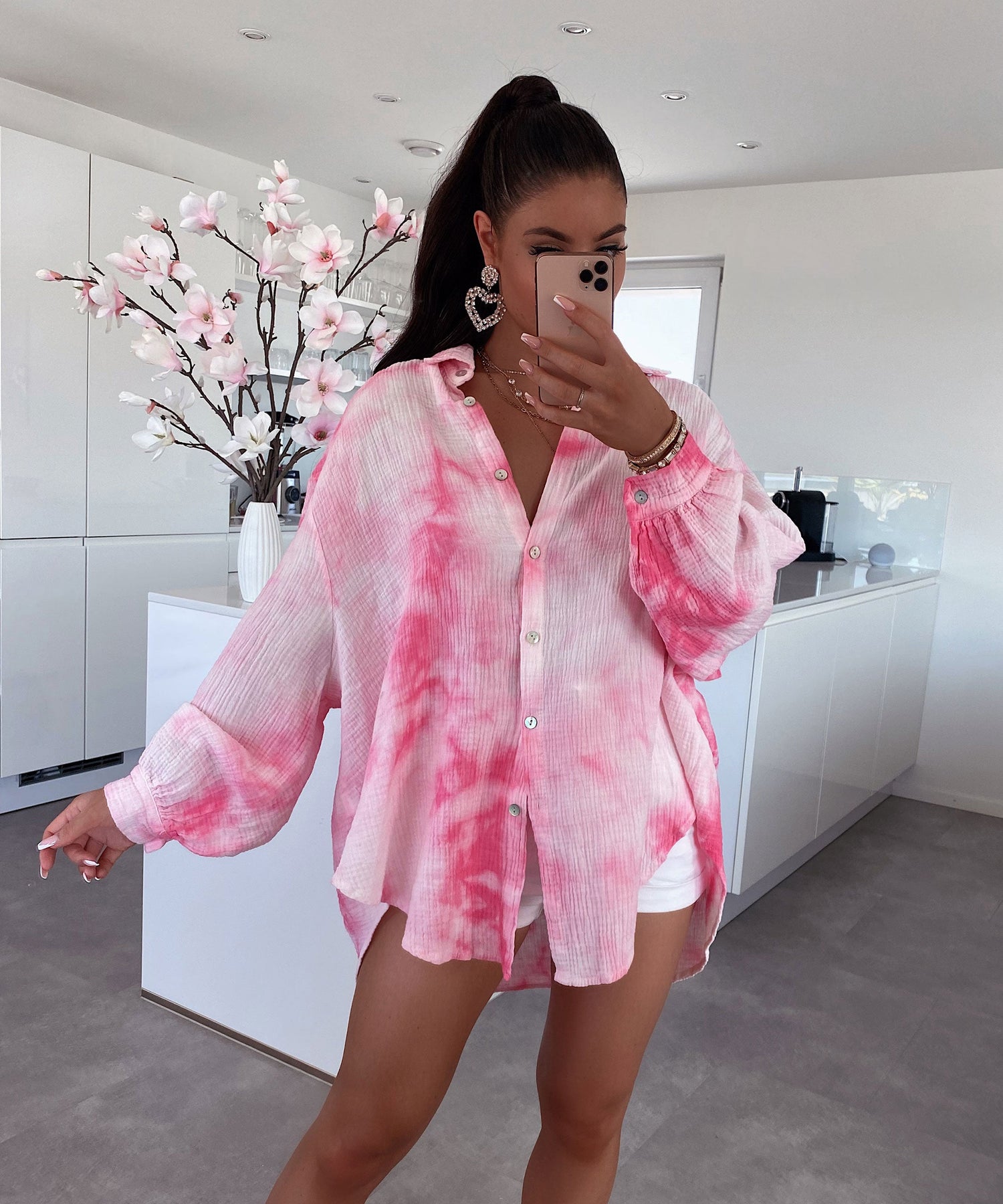 • Schöne oversize Musselin Bluse aus 100% Baumwolle. Einheitsgröße passt XS-XL. Model ist 1.65m groß.