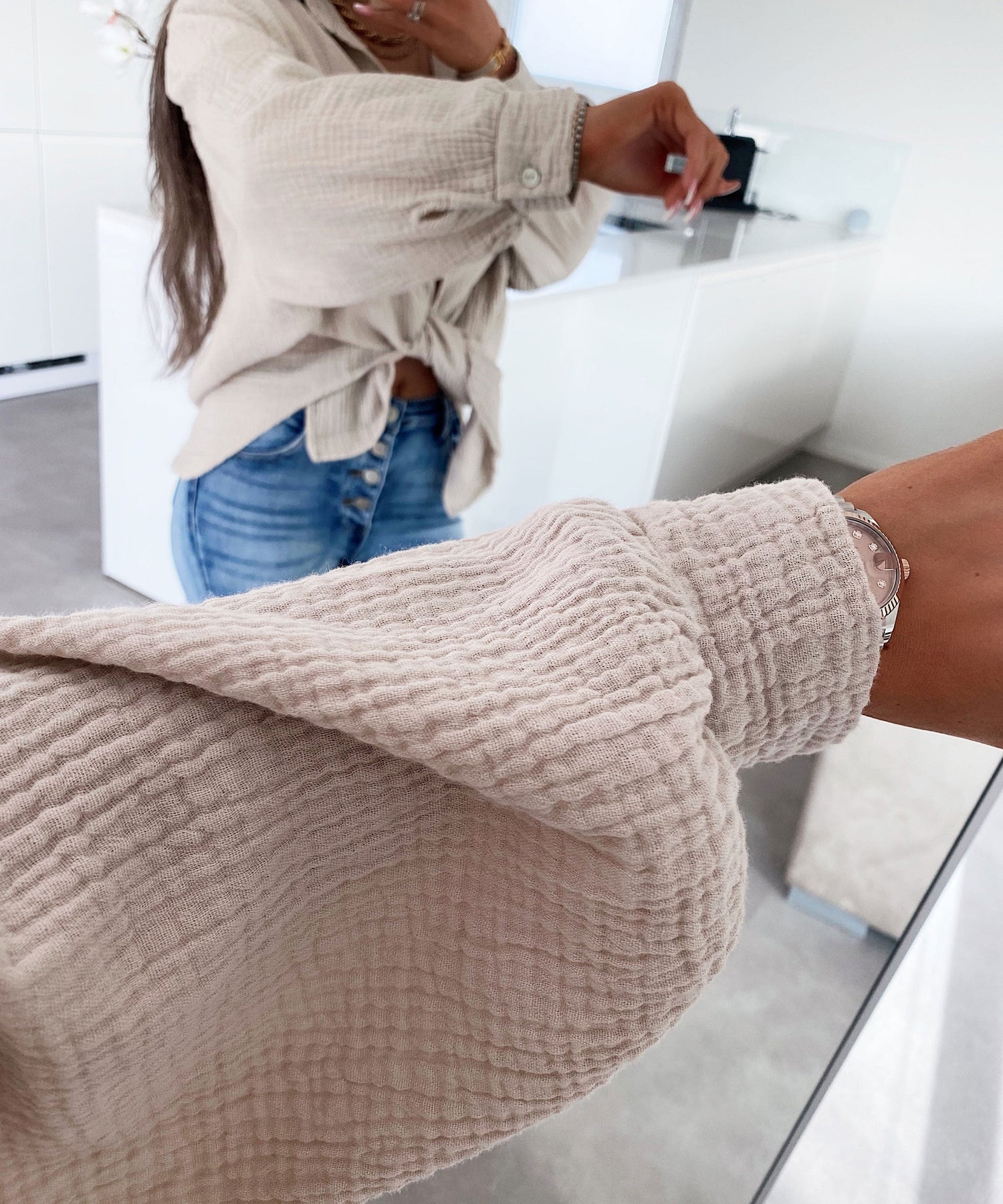 • Schöne oversize Musselin Bluse aus 100% Baumwolle. Einheitsgröße passt XS-XL. Model eins ist 1.65m groß. Model zwei ist 1.69m.