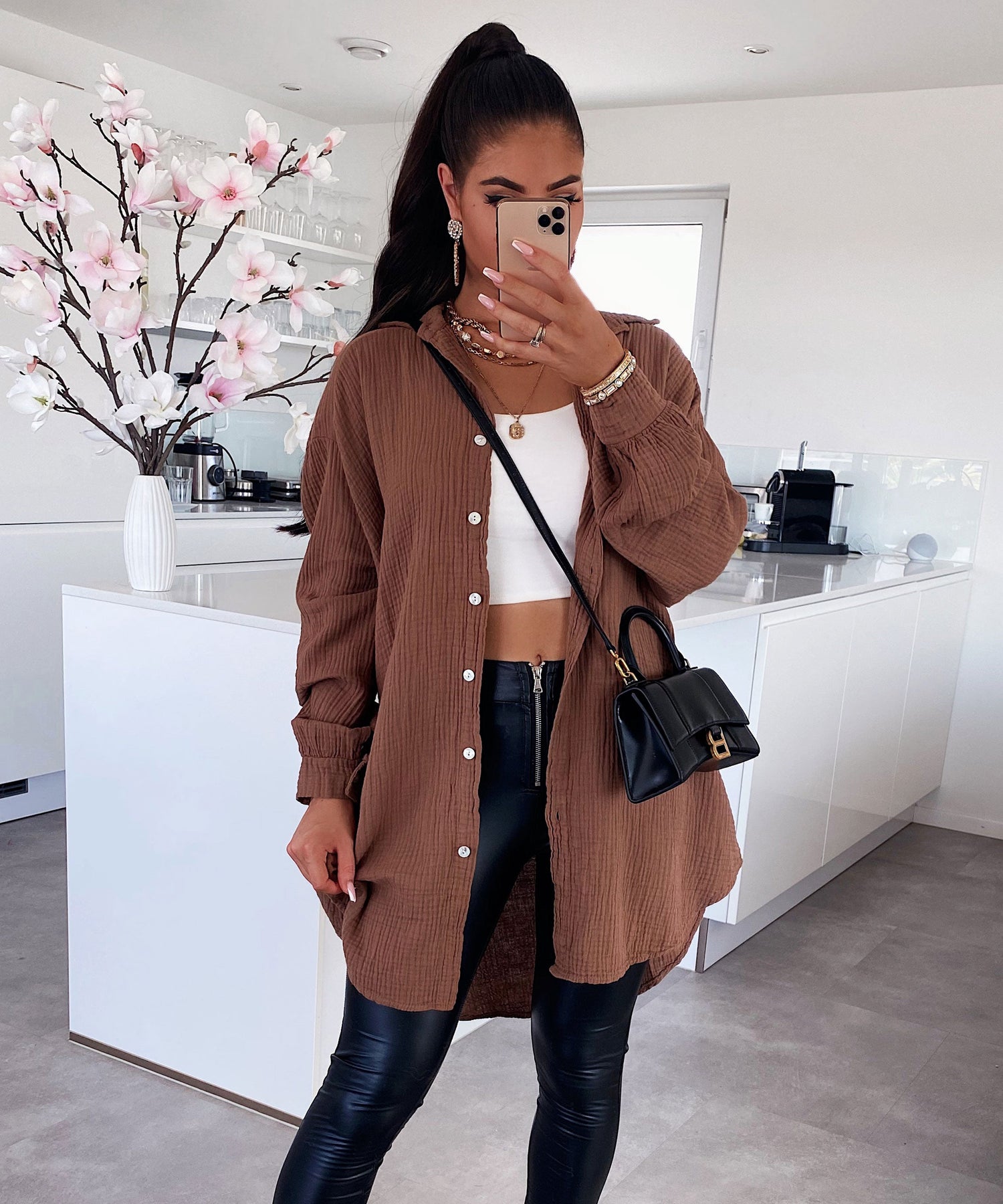 • Schöne oversize Musselin Bluse aus 100% Baumwolle. Einheitsgröße passt XS-XL. Model ist 1.65m groß.