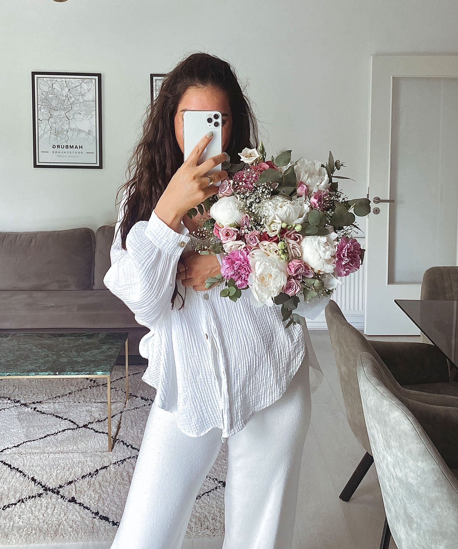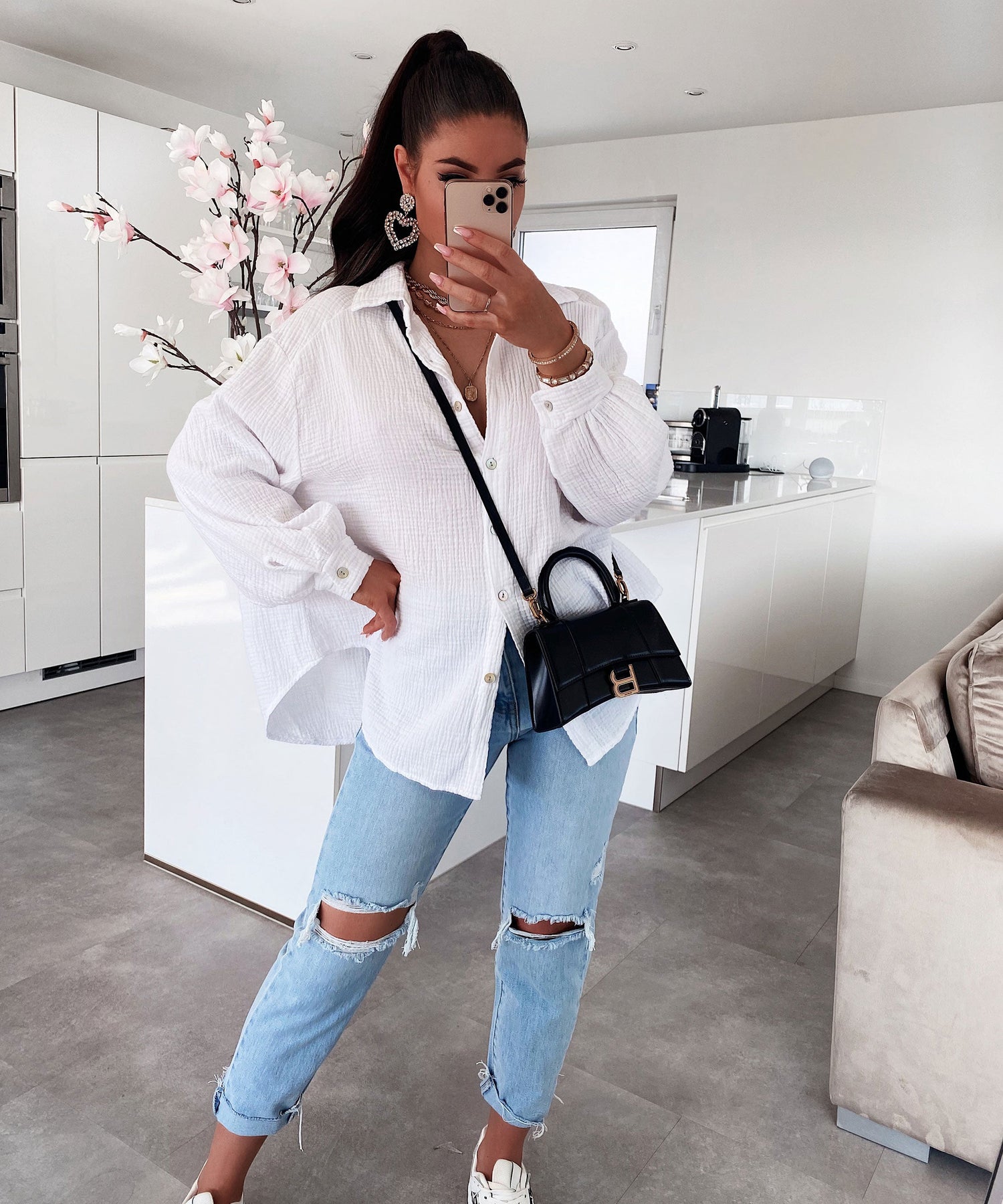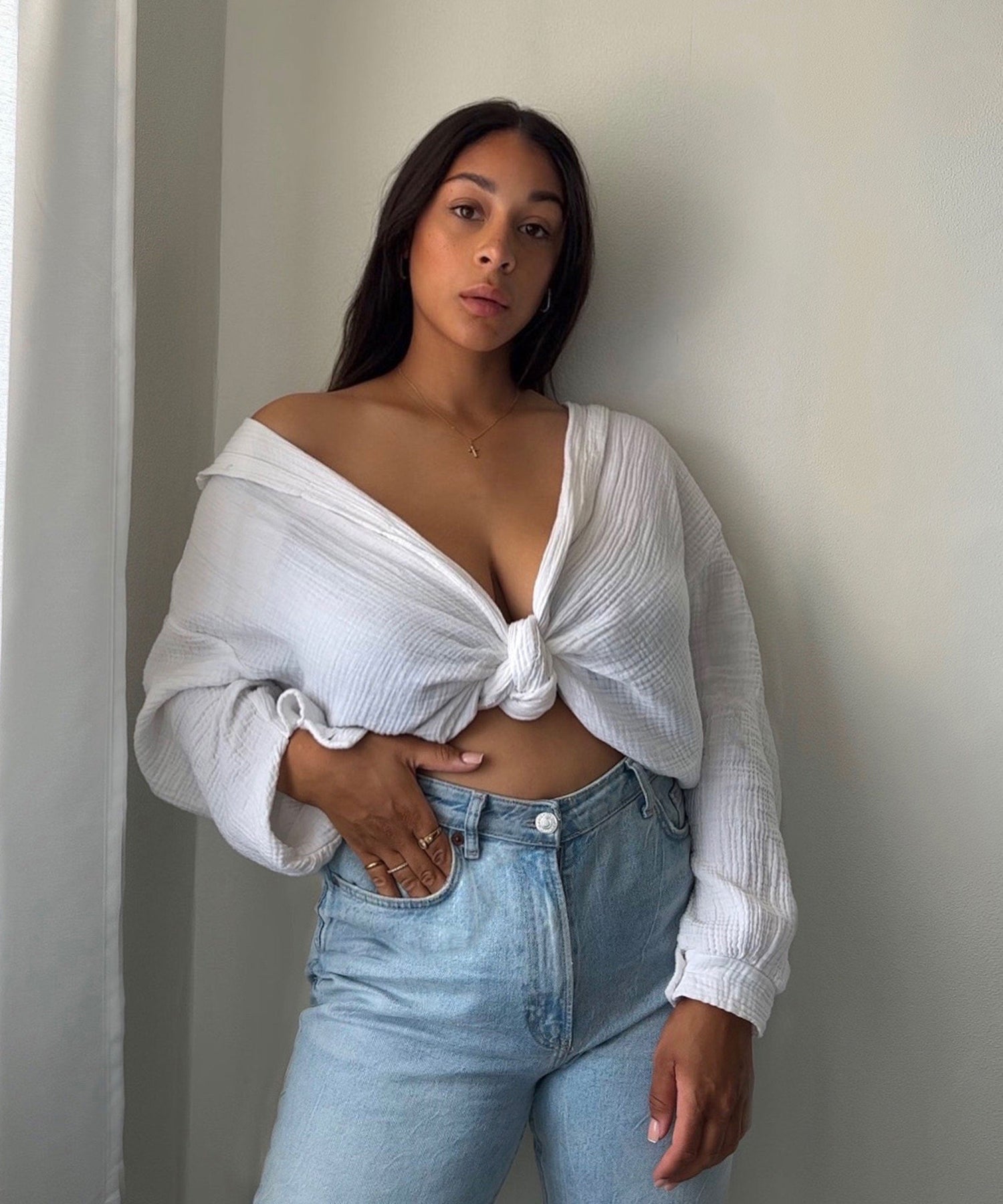 • Schöne oversize Musselin Bluse aus 100% Baumwolle. Einheitsgröße passt XS-XL. Model eins ist 1.65m. Model zwei ist 1.69m.