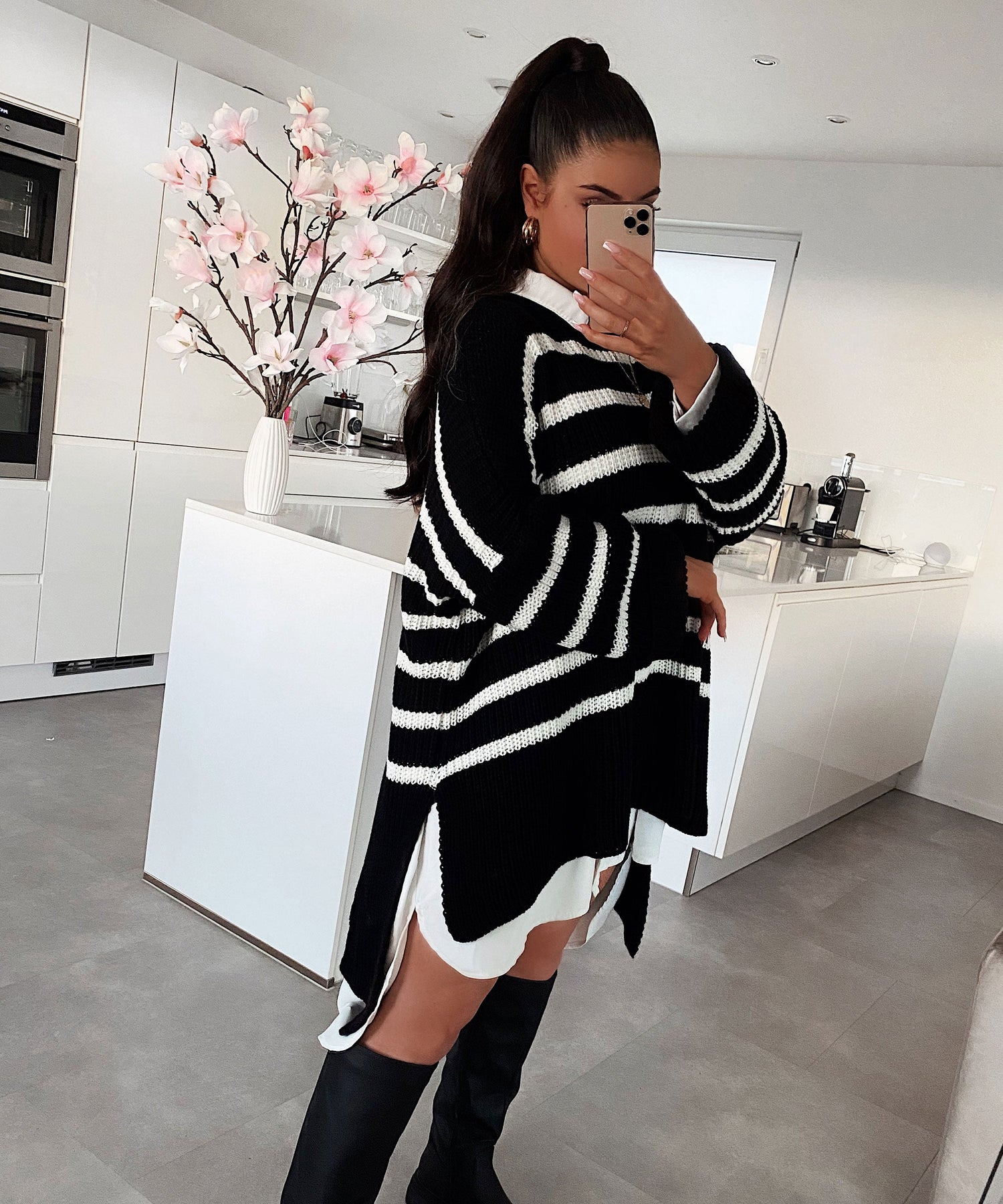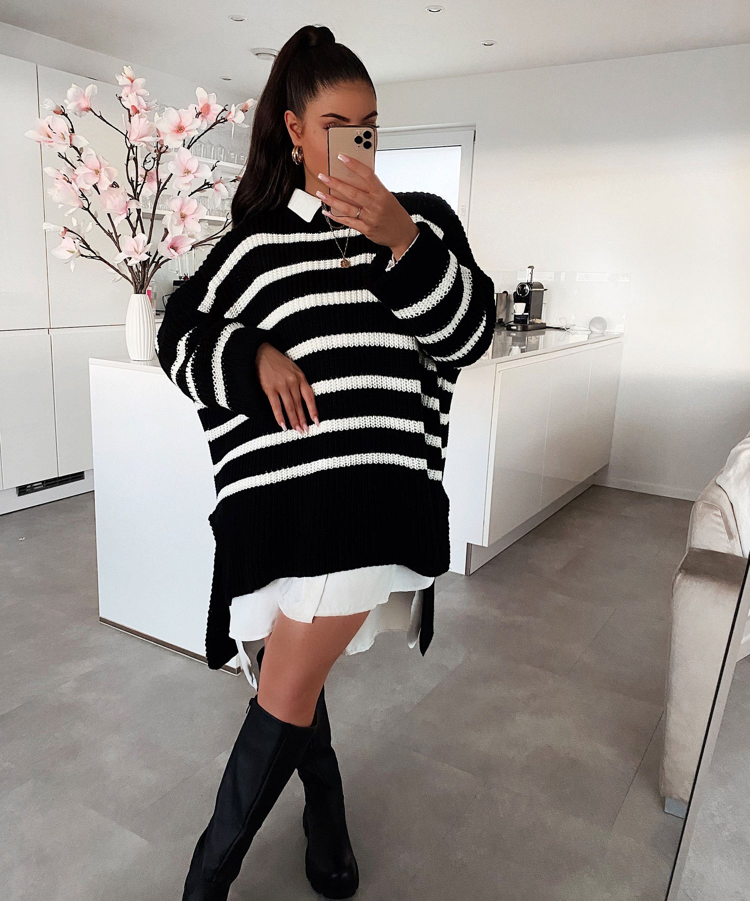 Oversize Pullover Elsa Streifen Schwarz