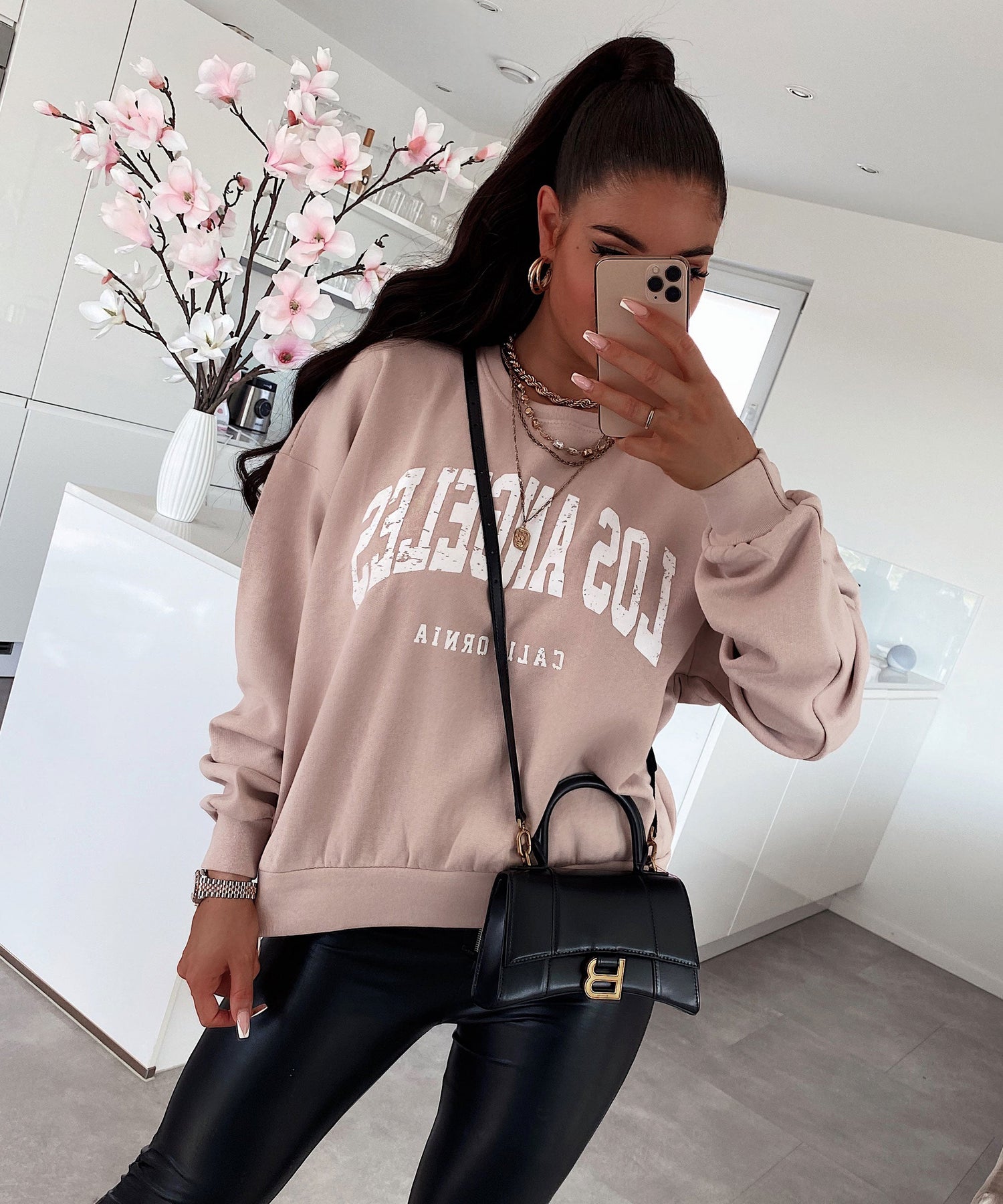 • Weicher, gefütterter oversize Pullover. Einheitsgröße passt XS-XL. Model eins ist 1.65m. Model zwei ist 1.69m. Farbe wie auf Bild eins.