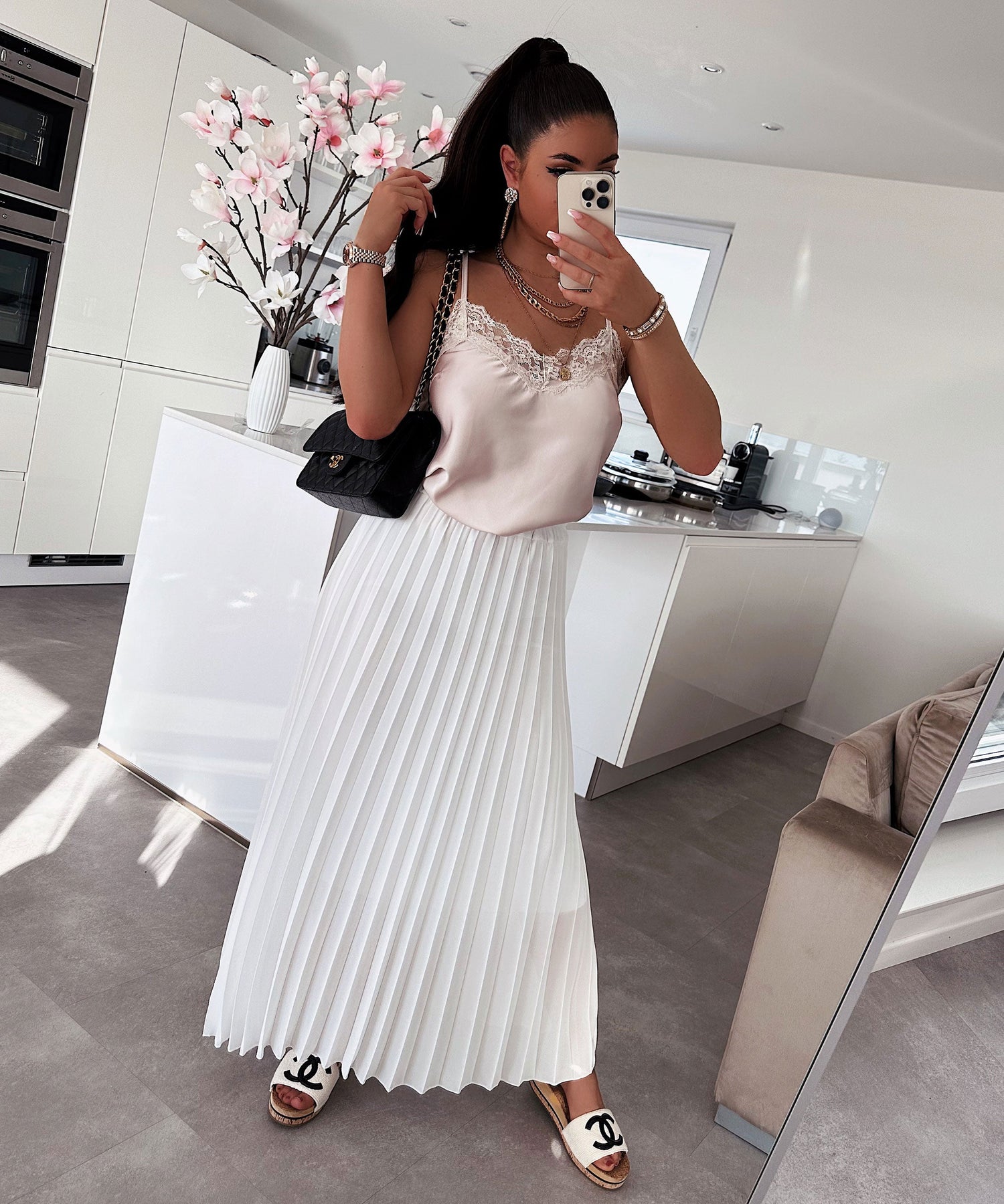 Spitzen Satin Top Cecilia Beige