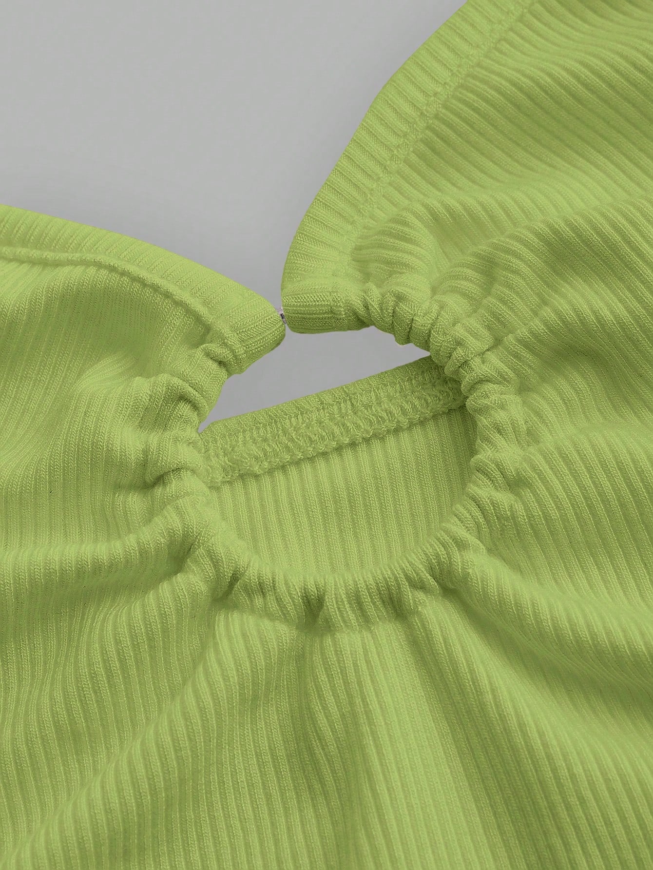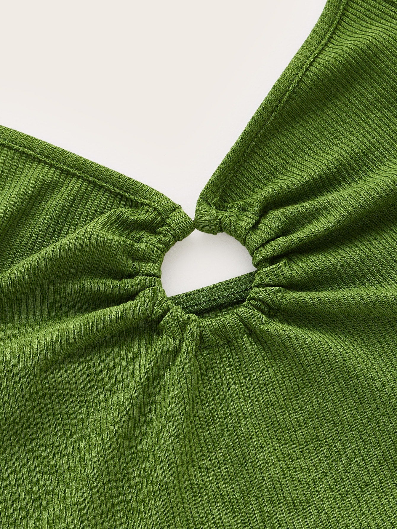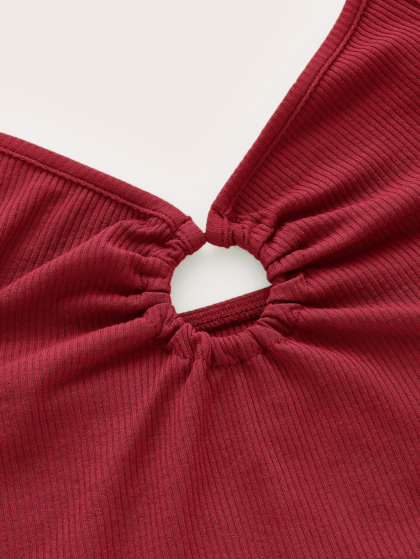 • Details: Rückenfrei, Ring, Schnürung am Rücken, Rippenstrick