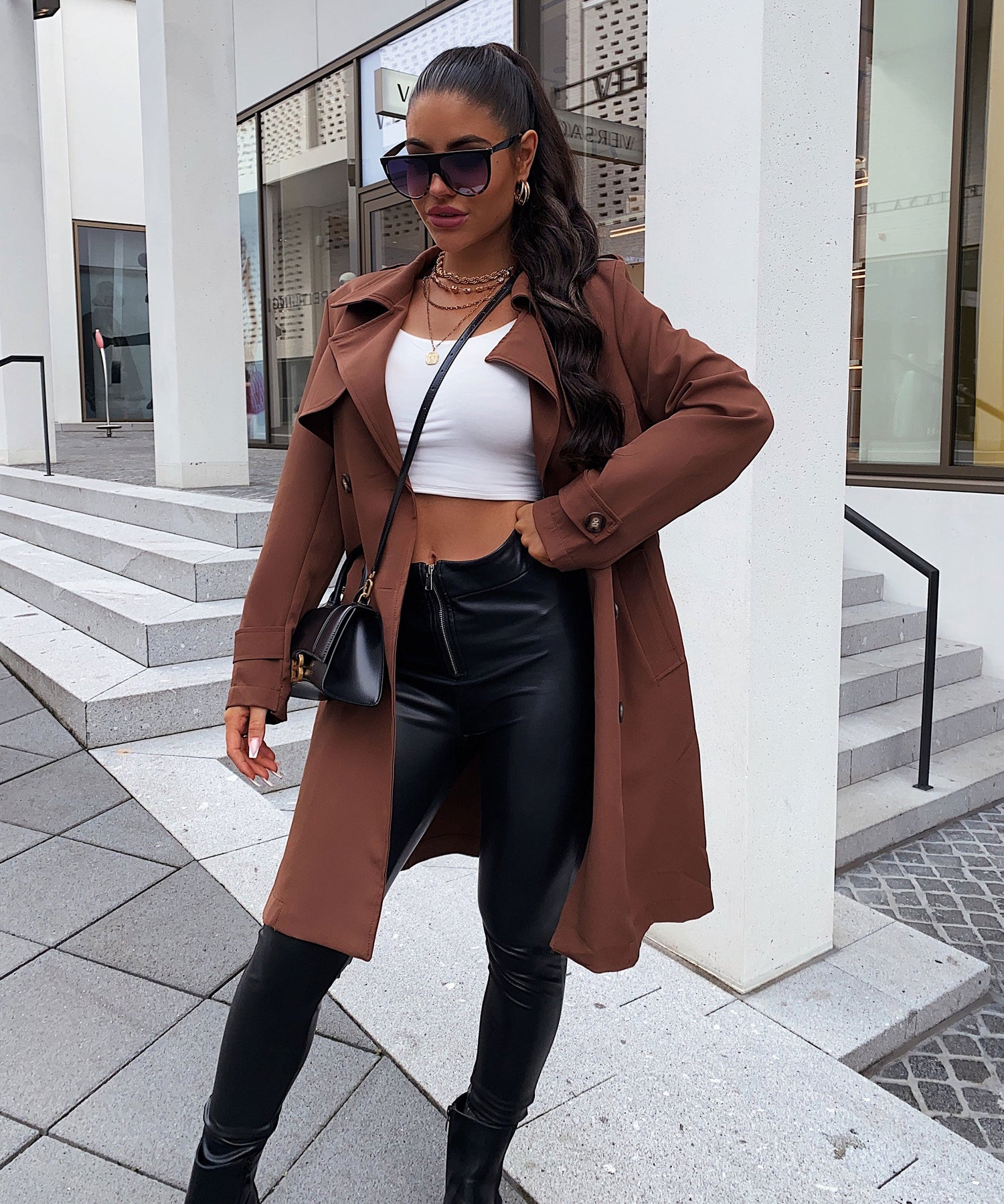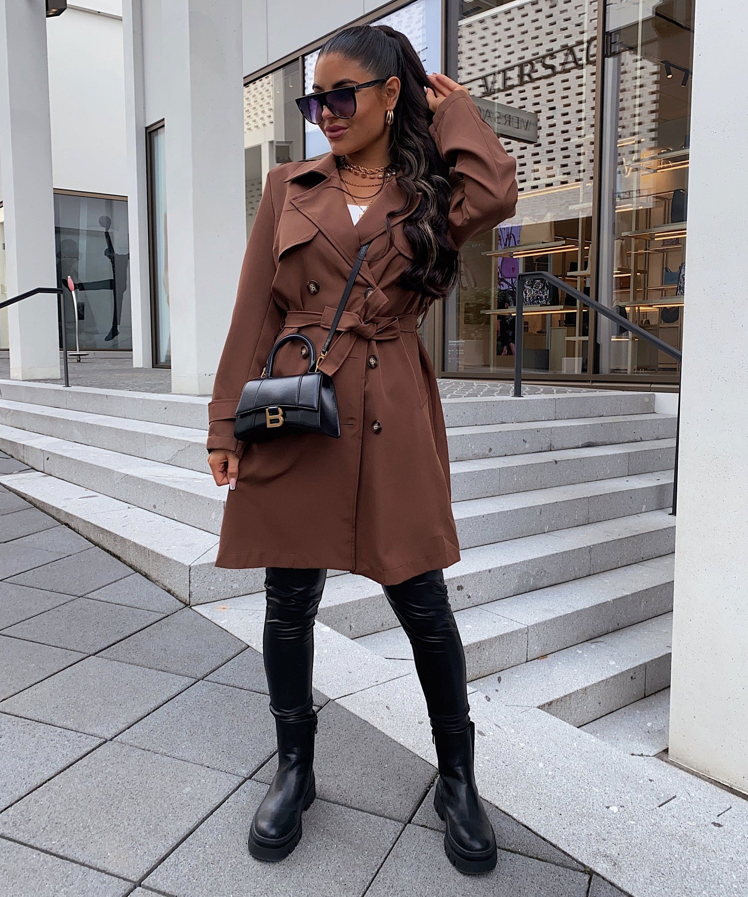 • Dünner Stofftrenchcoat. Einheitsgröße passt XS-XL. Model ist 1.65m.