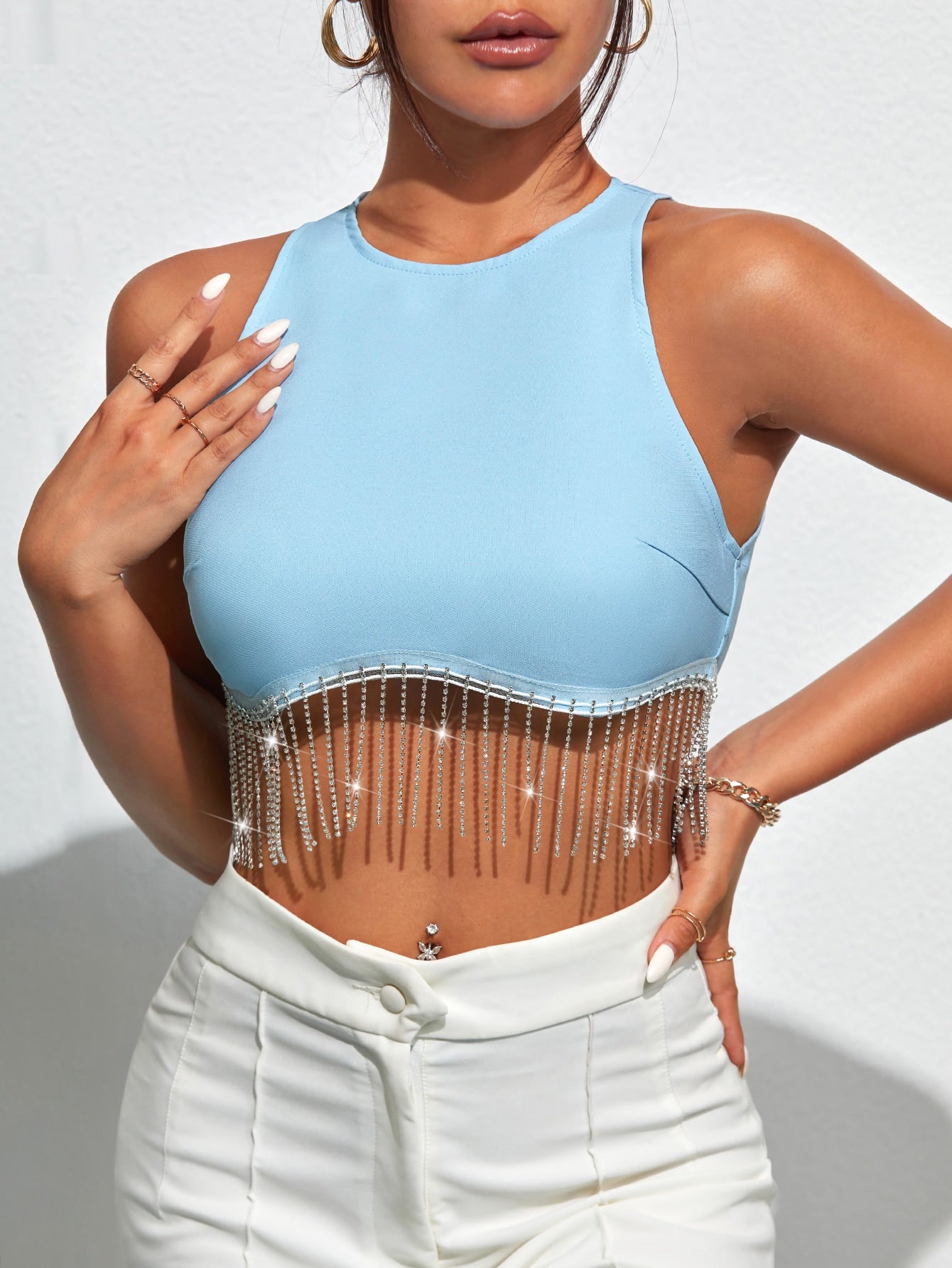 TRENDING Tank Top mit Strass, Fransen, Reißverschluss hinten