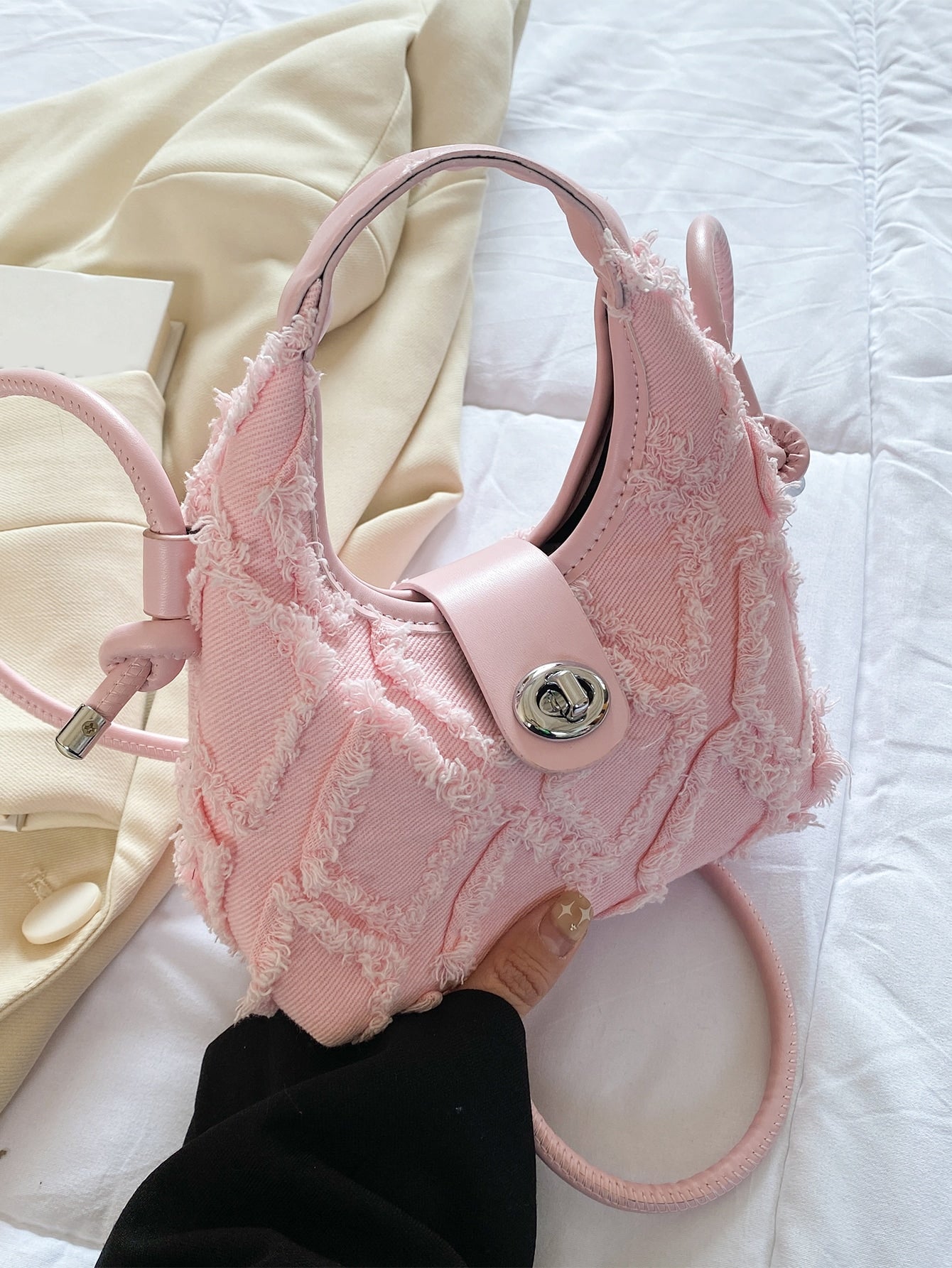 Hobo Tasche mit Mini unbearbeitetem Saum, Drehverschluss