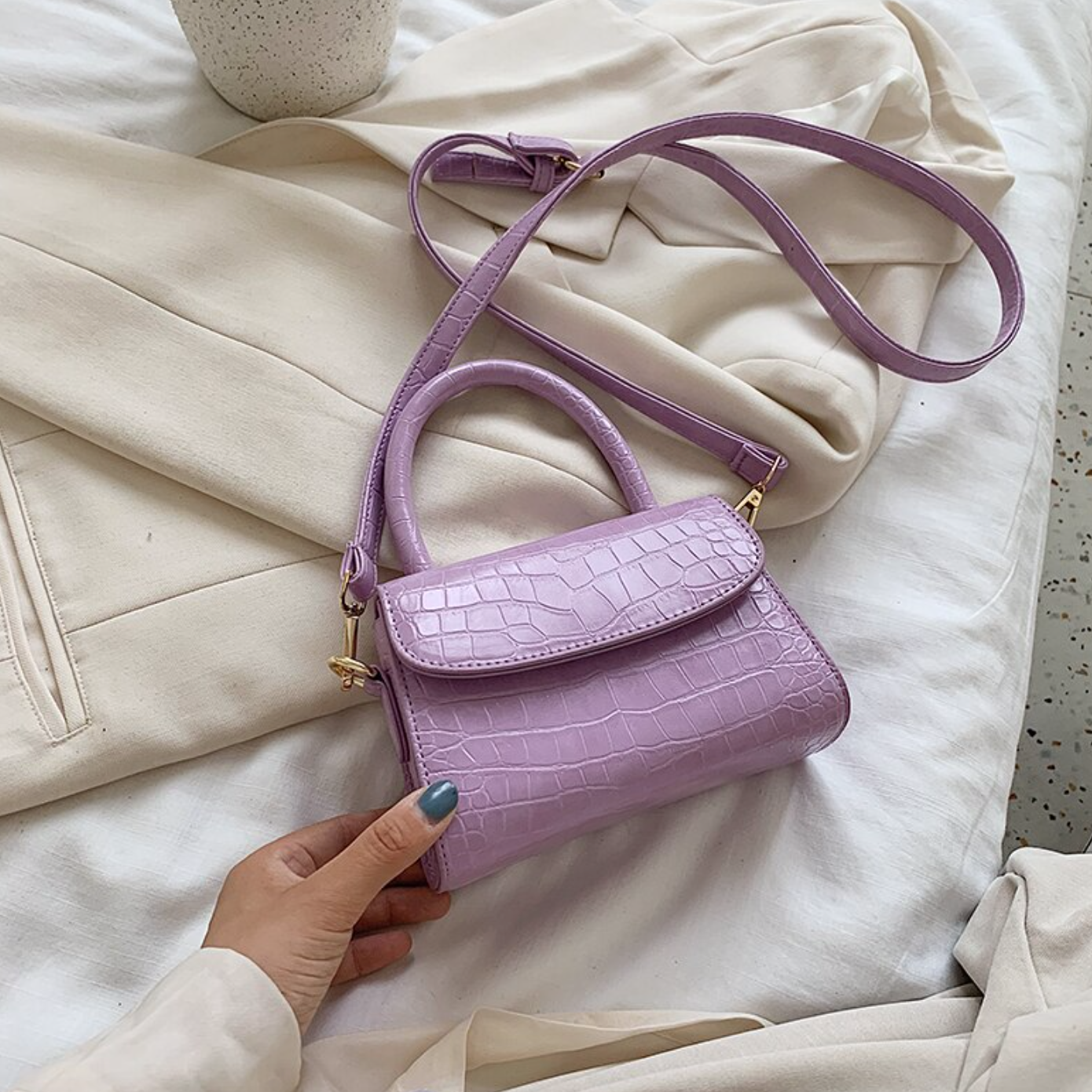 Maak je outfit compleet met deze gave bag in trendy krokodillen-print! De Lilac Love is een opvallende, trendy crossbodybag. De tas sluit door middel van een magneetsluiting aan de onderzijde van de flap.