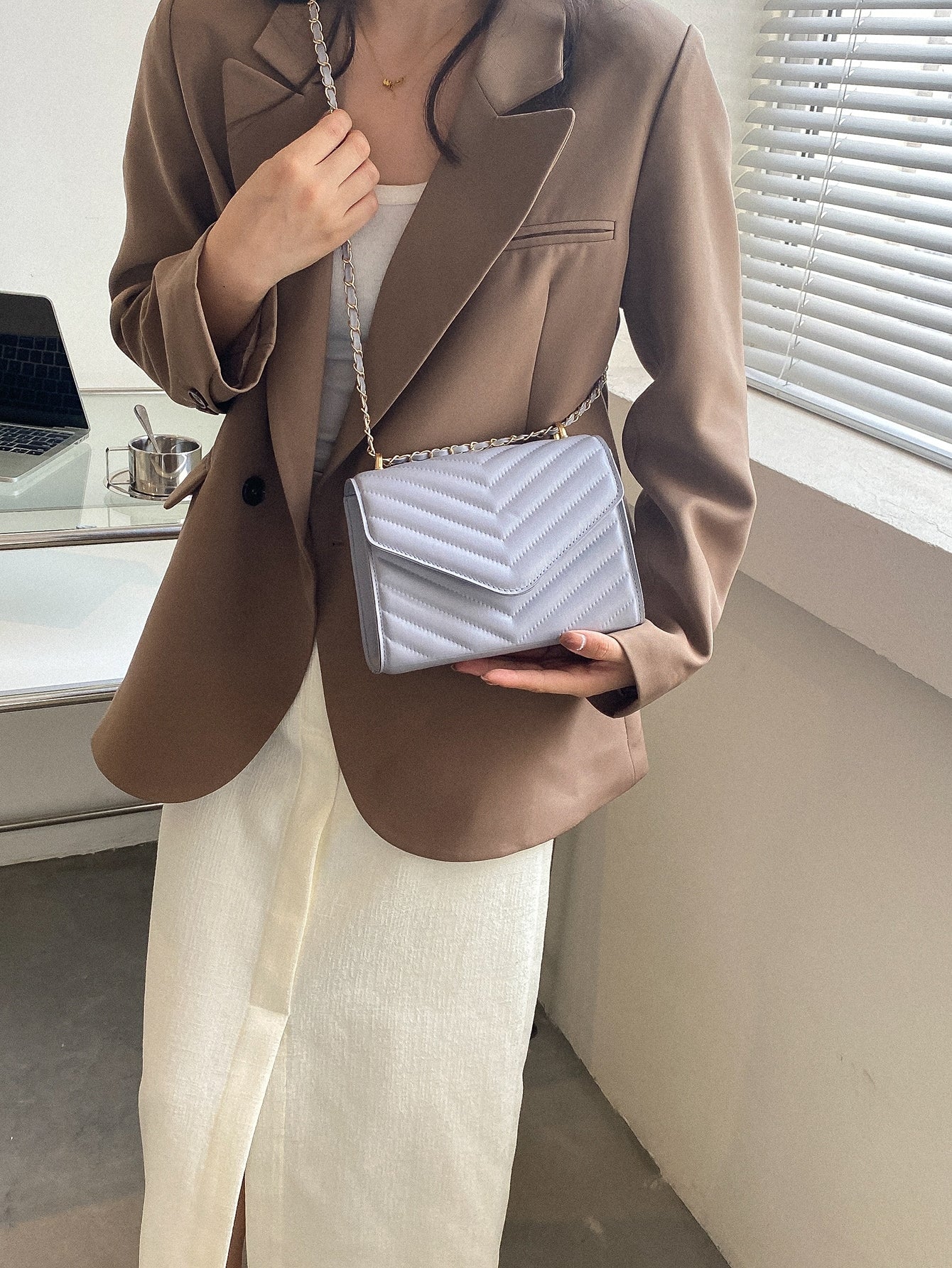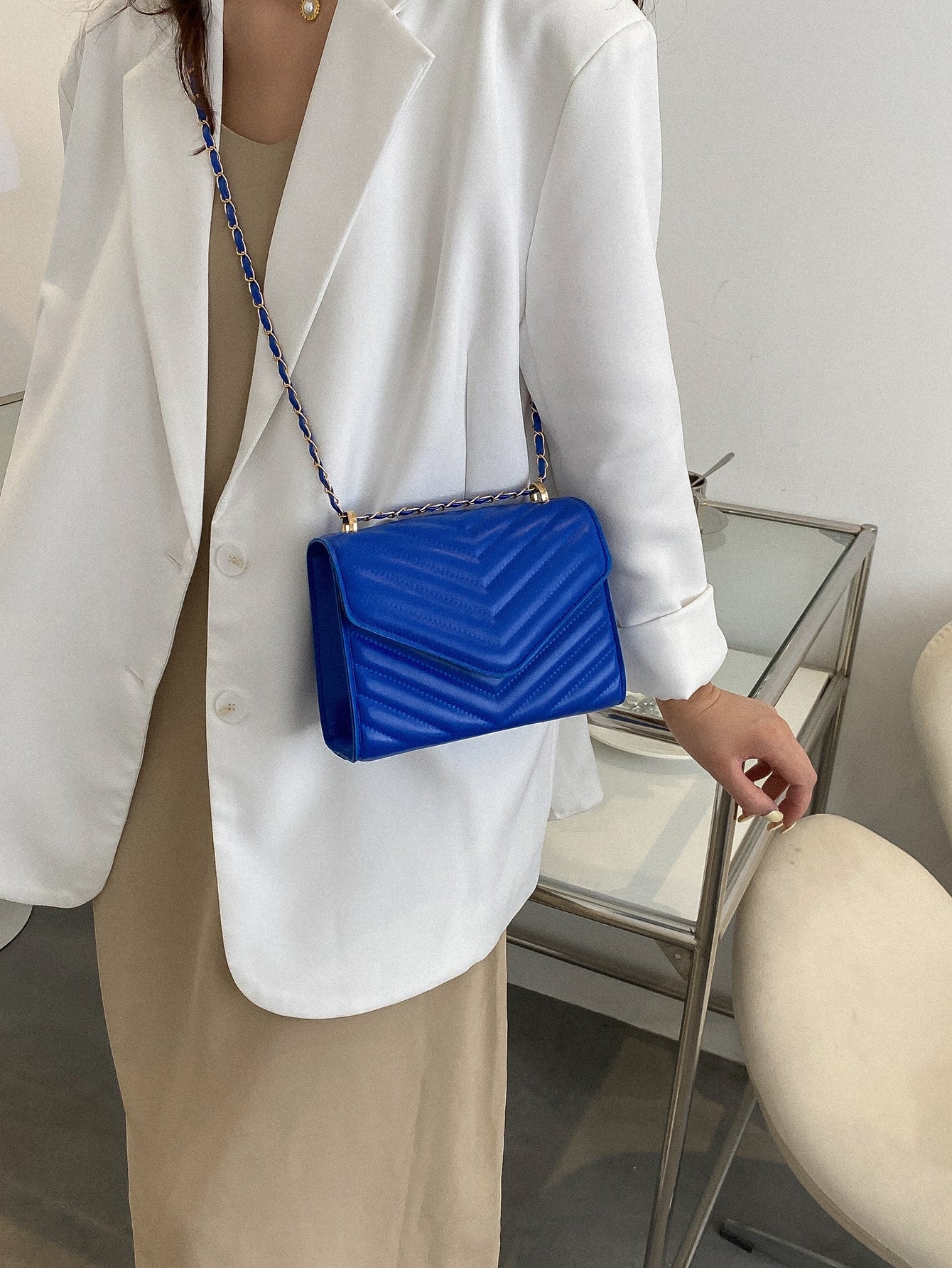 Quadratische Tasche mit Chevron Druckknopf