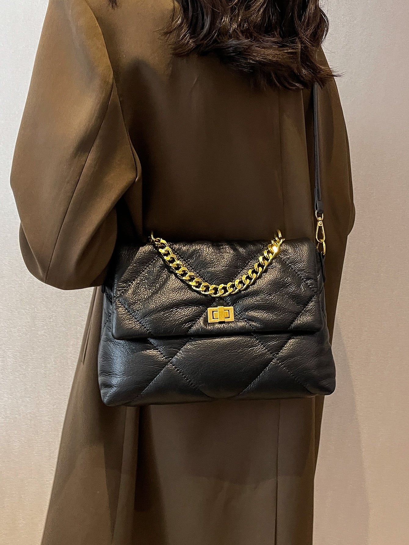 Quadratische Tasche mit Gesteppt Kette Dekor, Klappe