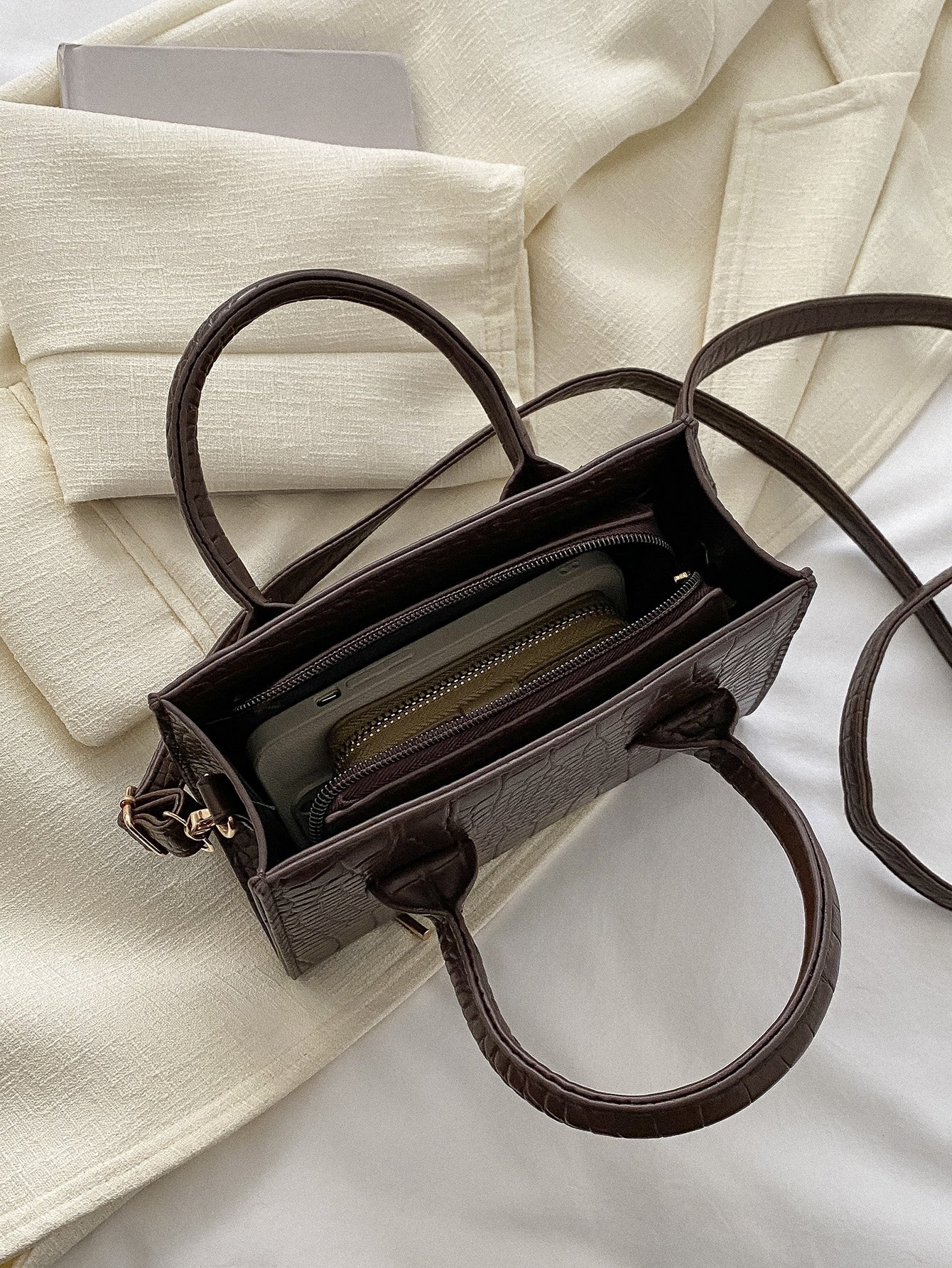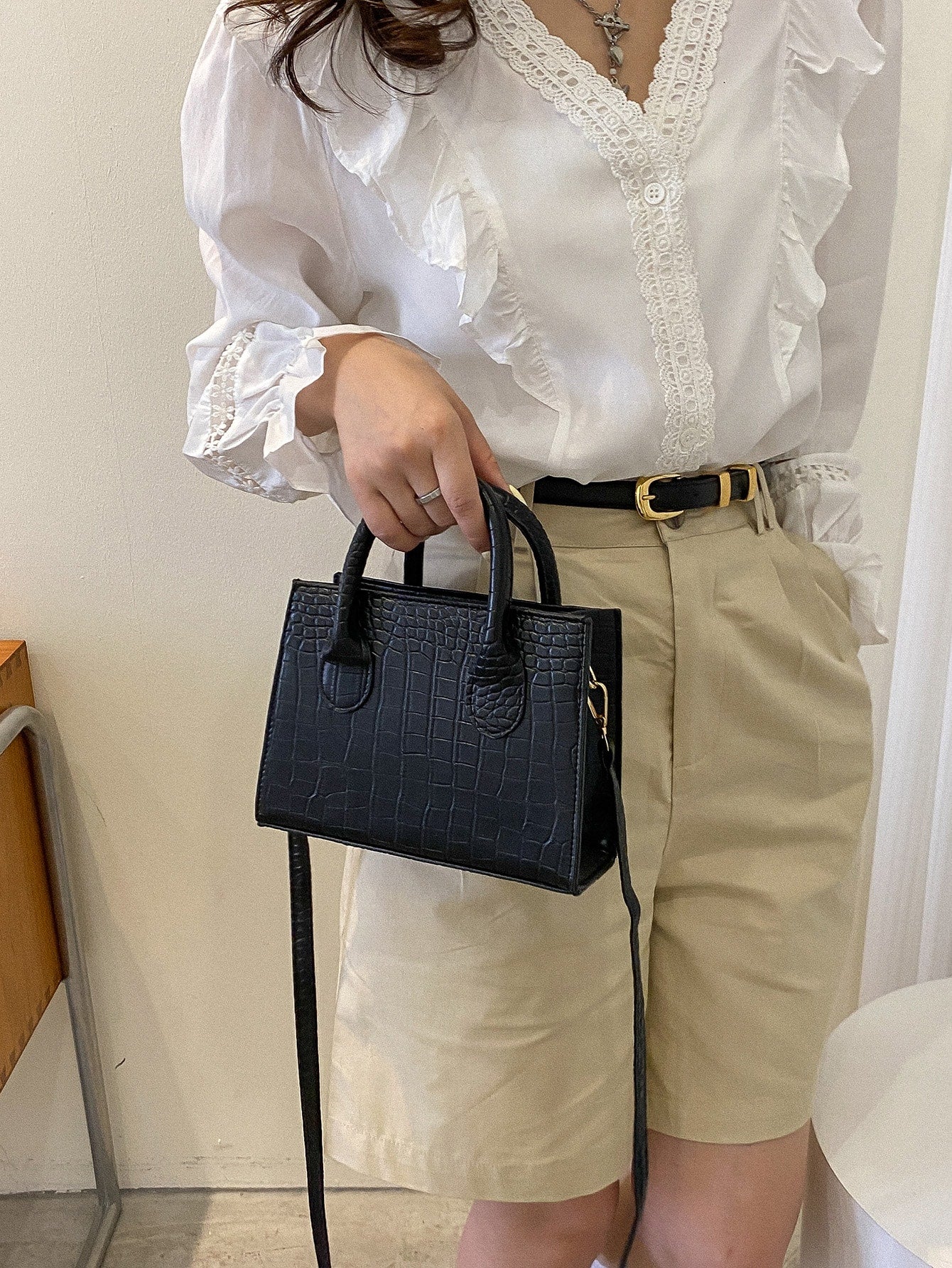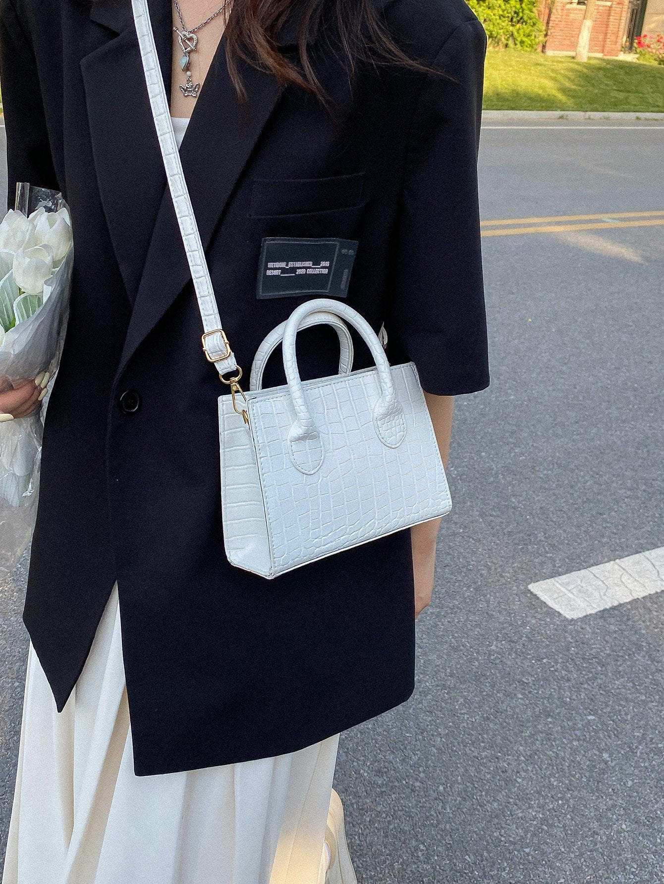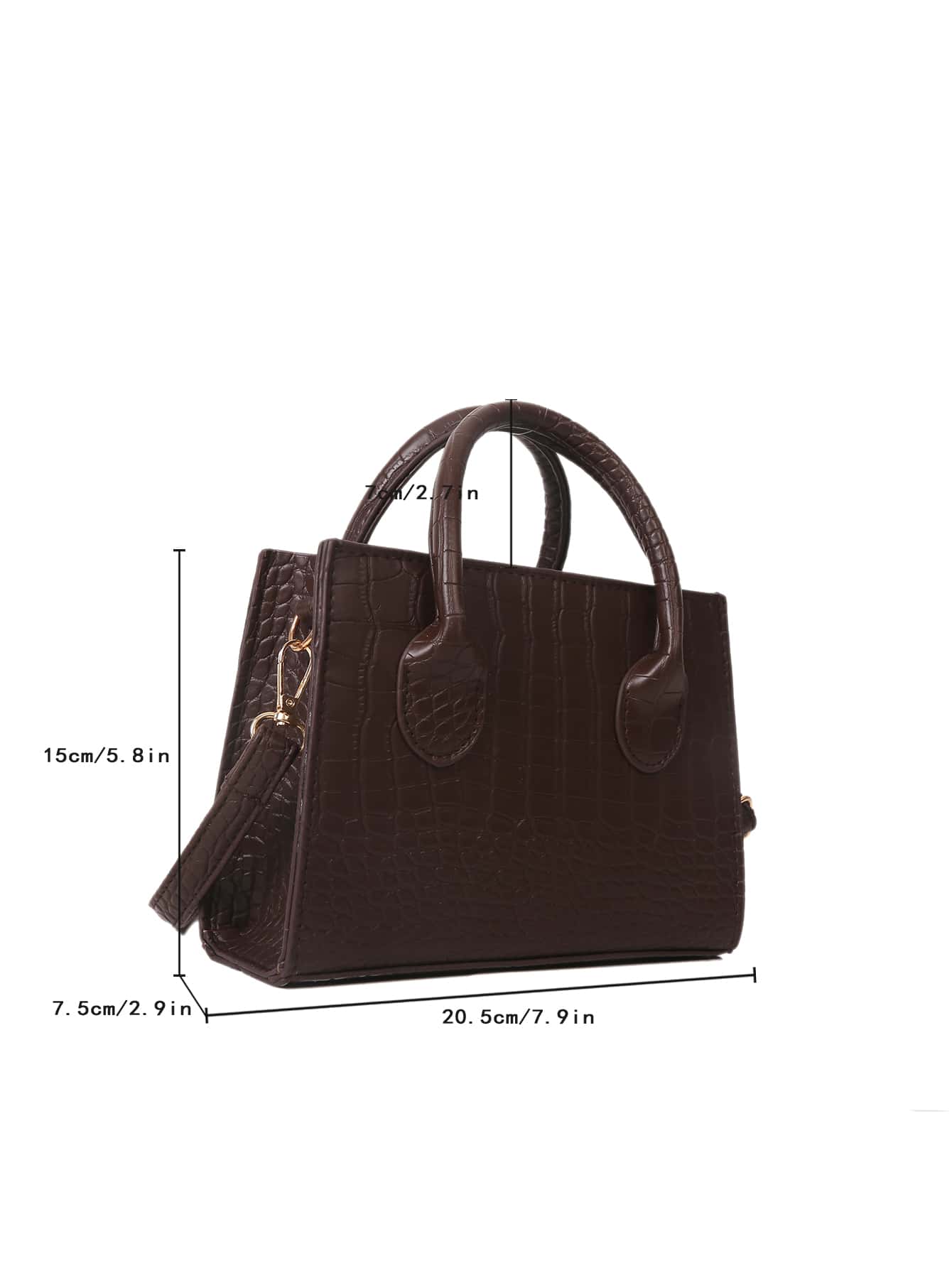 Quadratische Tasche mit Krokodil Prägung, Doppelgriff