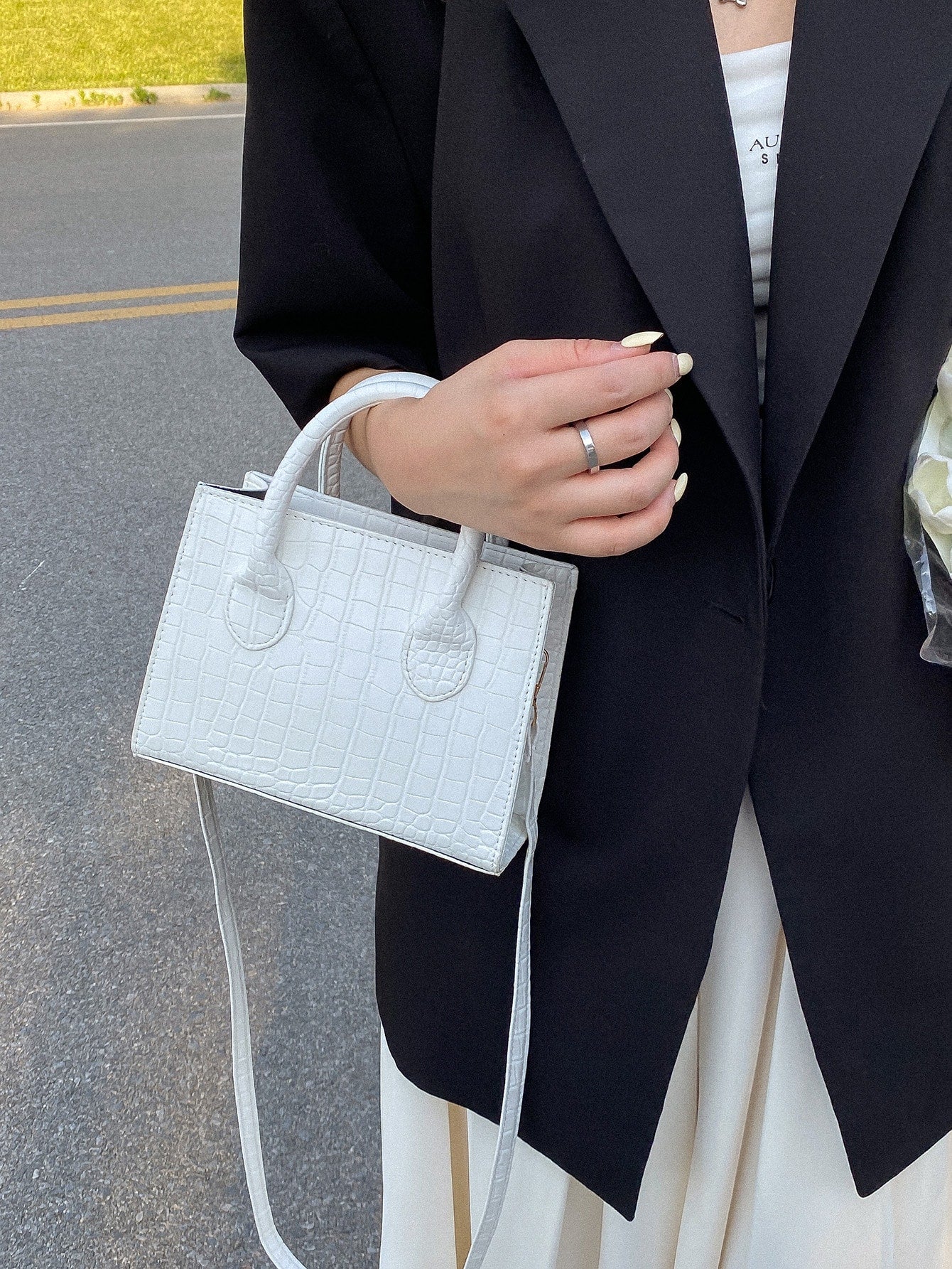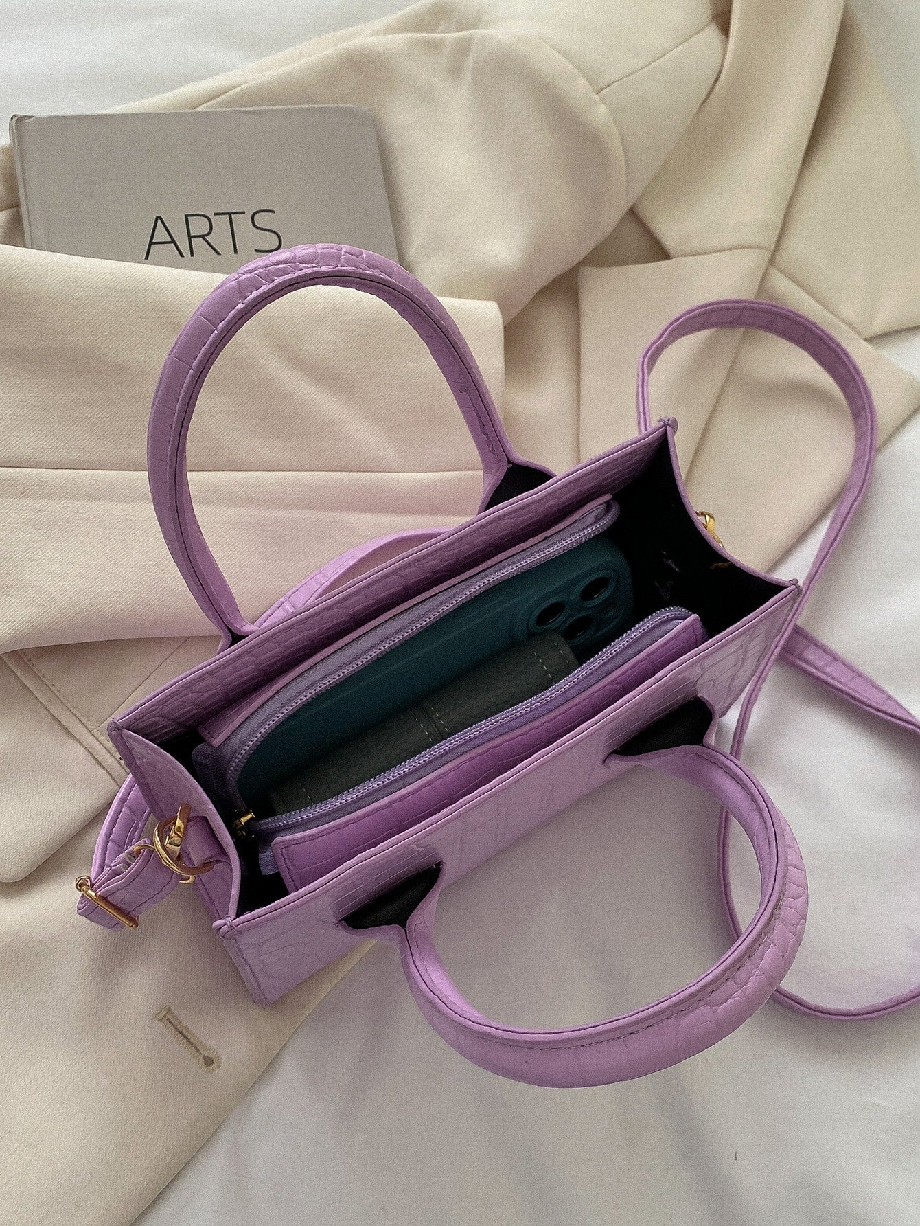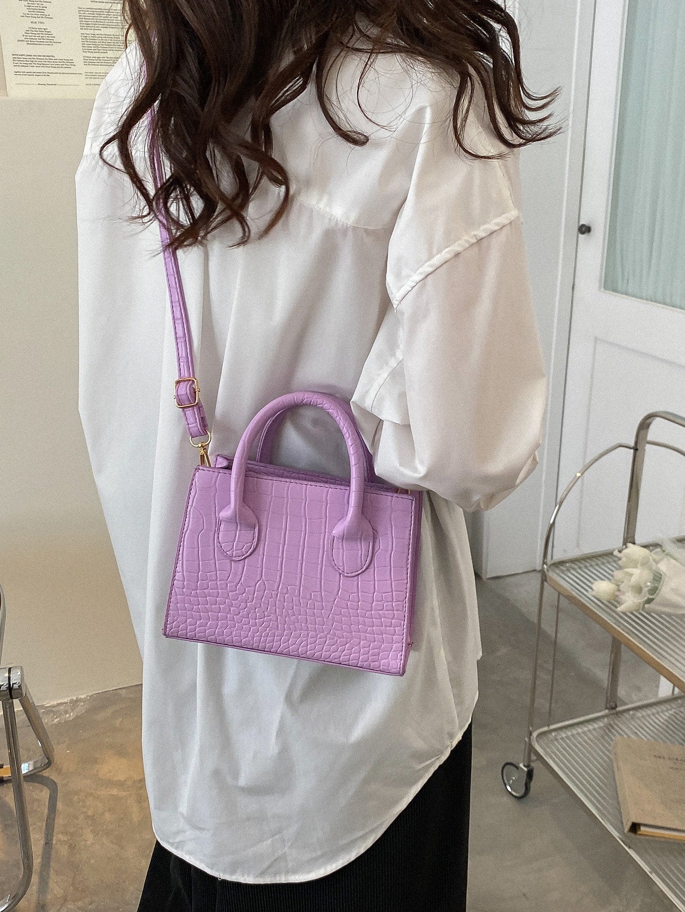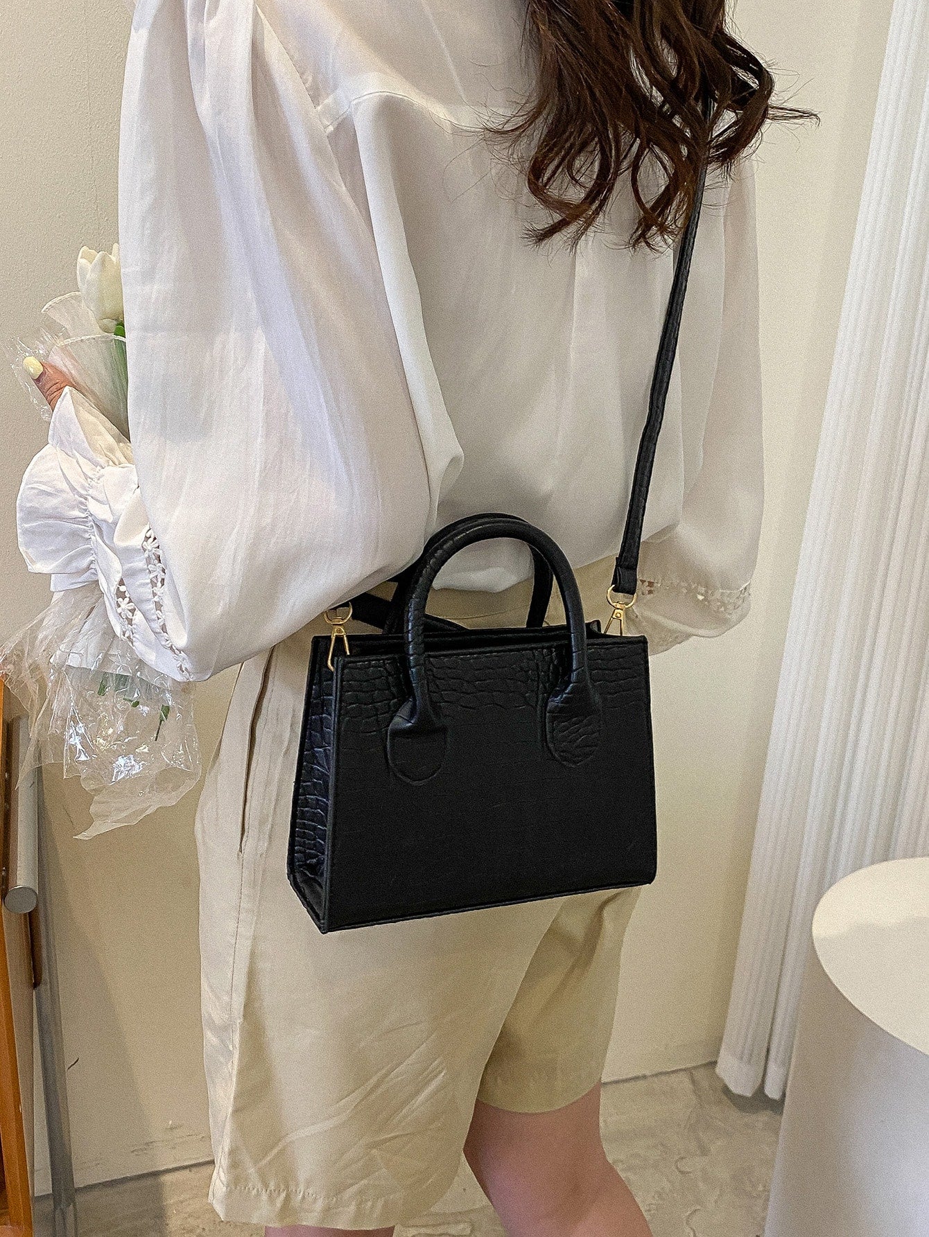 Quadratische Tasche mit Krokodil Prägung, Doppelgriff