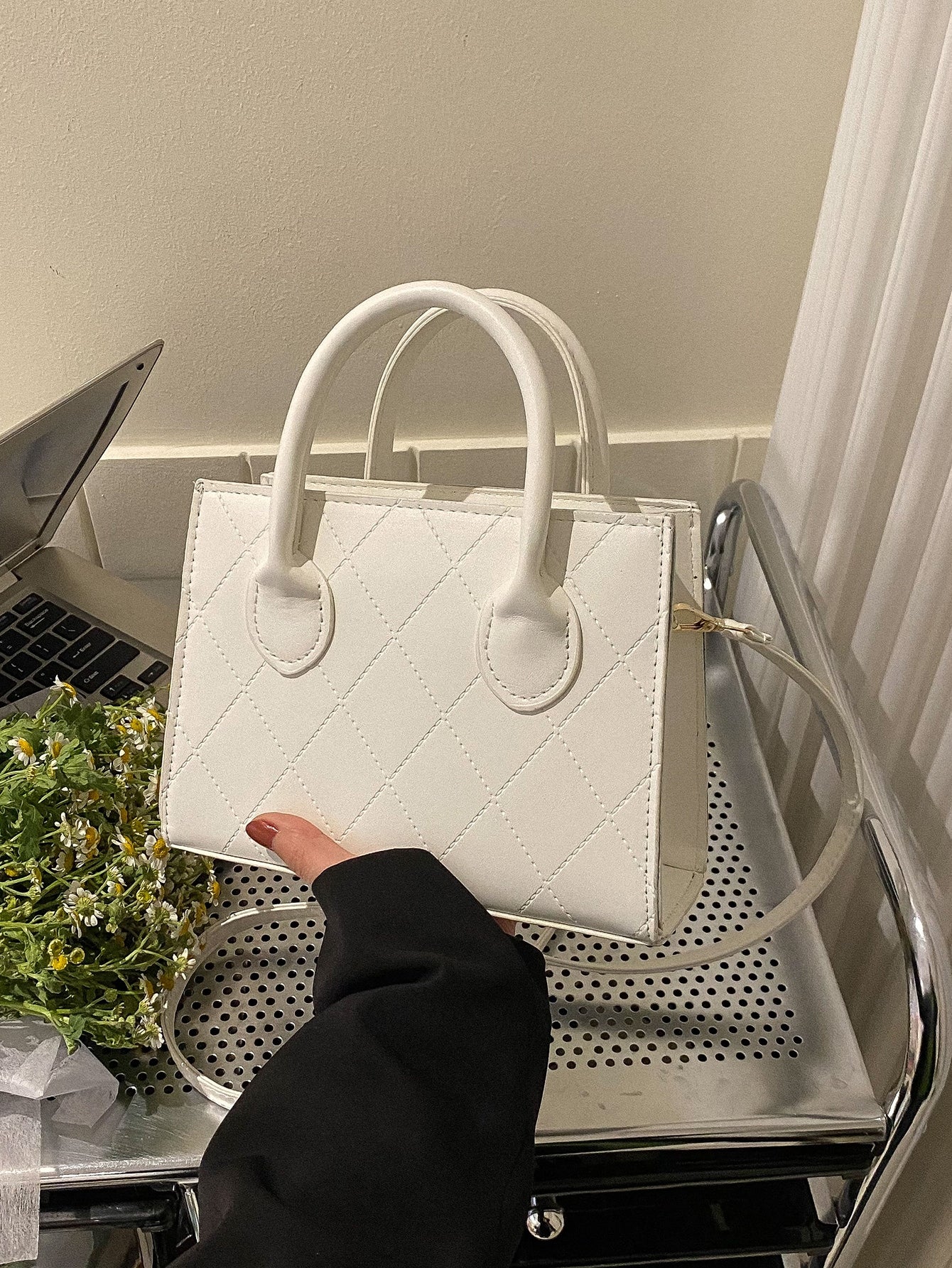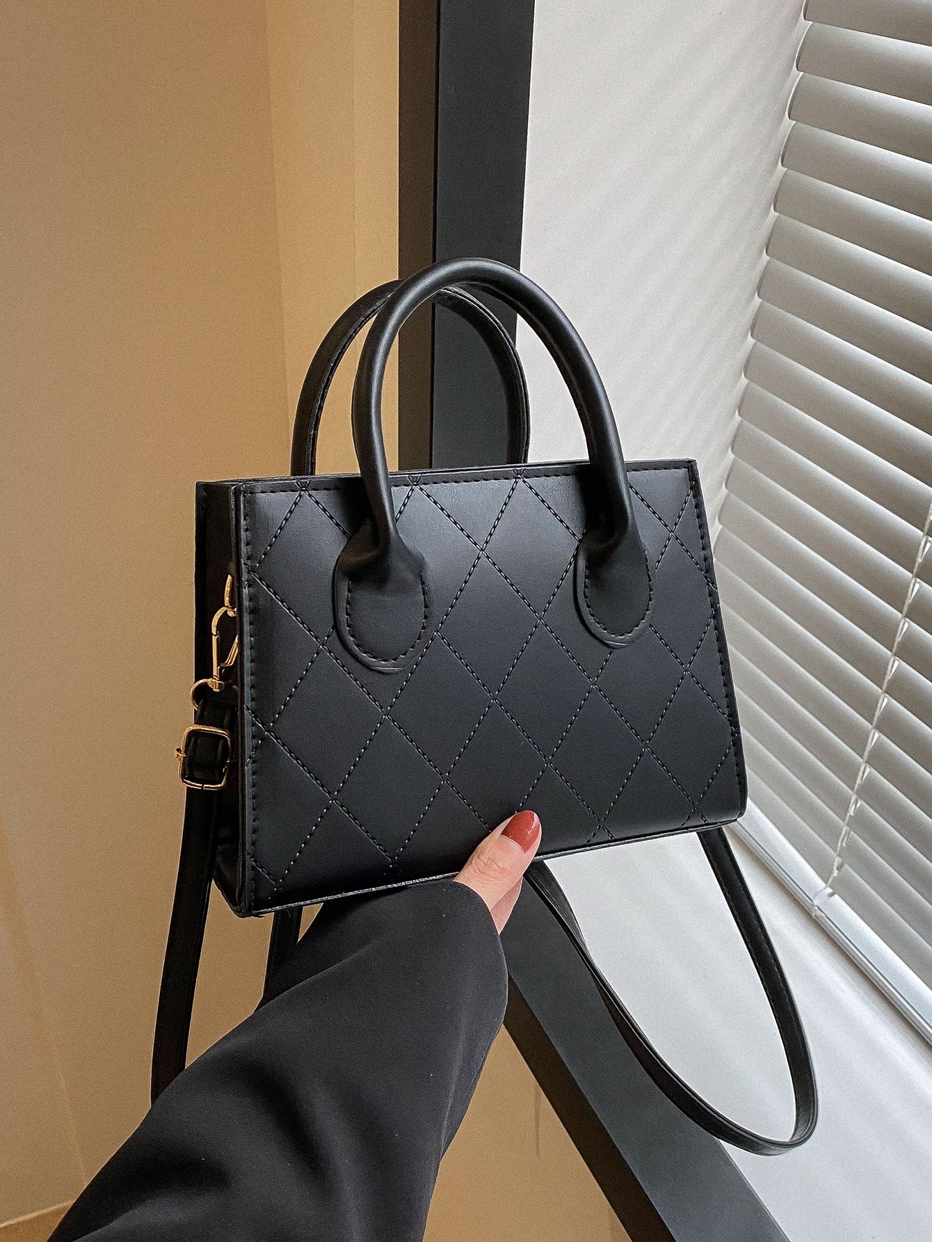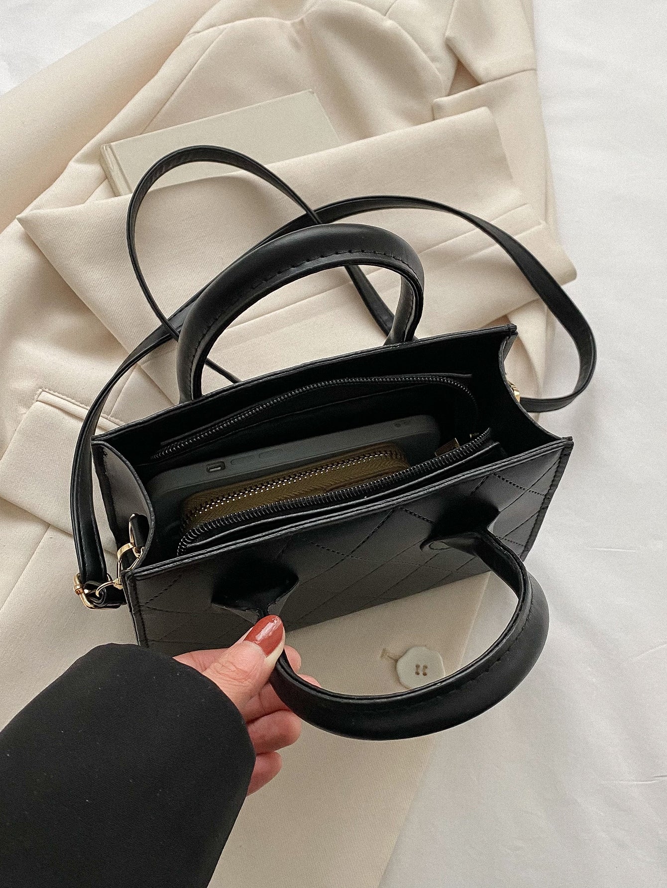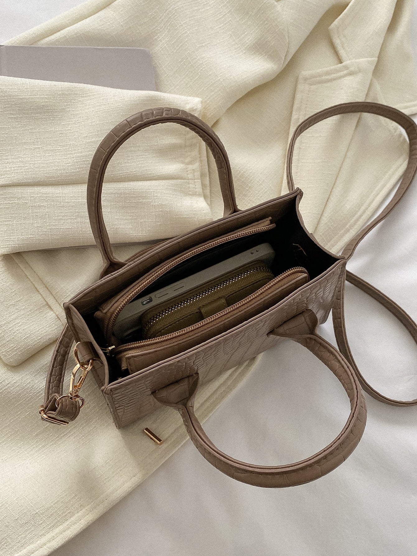 Quadratische Tasche mit Krokodil Prägung, Doppelgriff