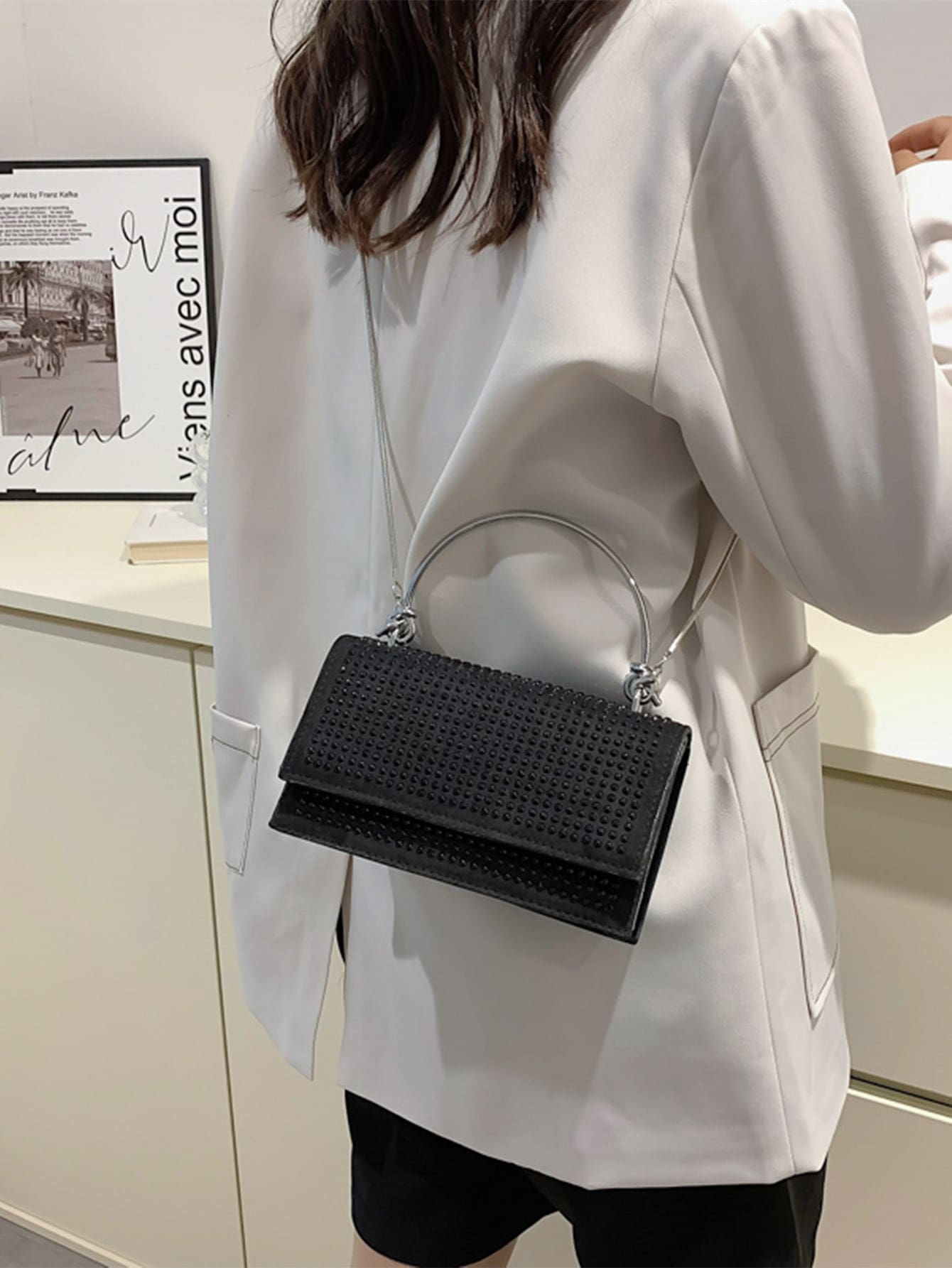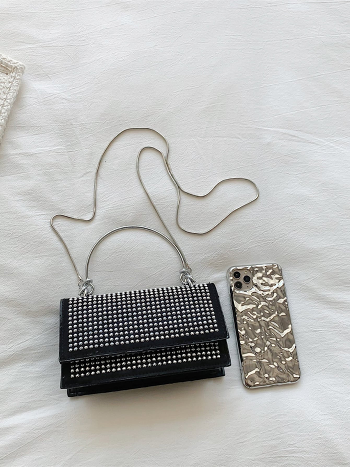 Quadratische Tasche mit Mini Nieten Dekor, Kette, Klappe
